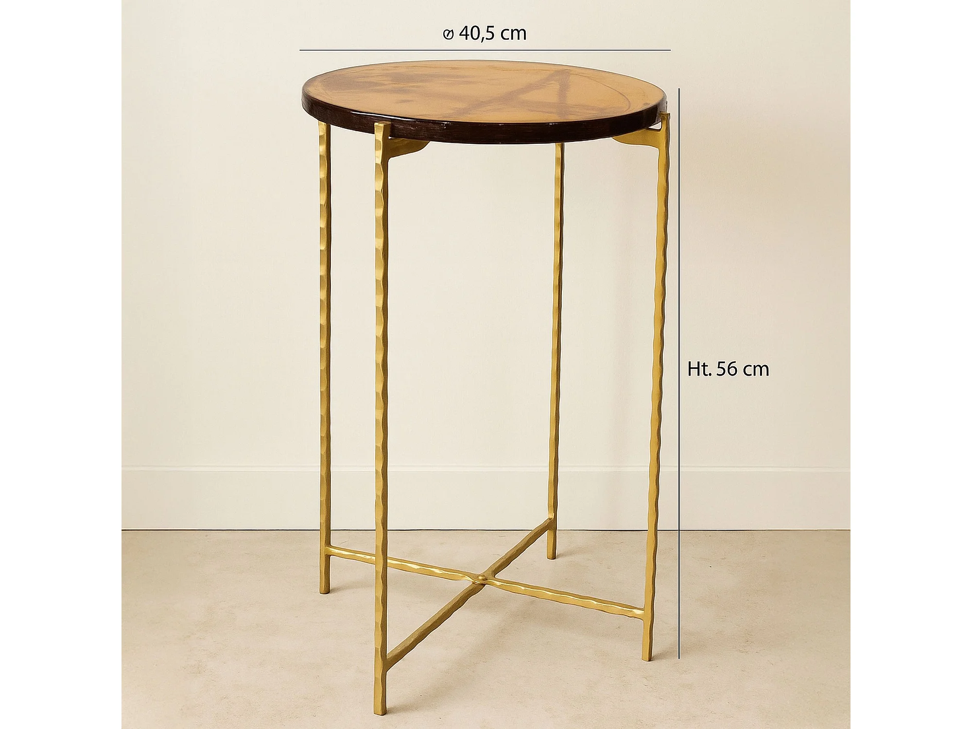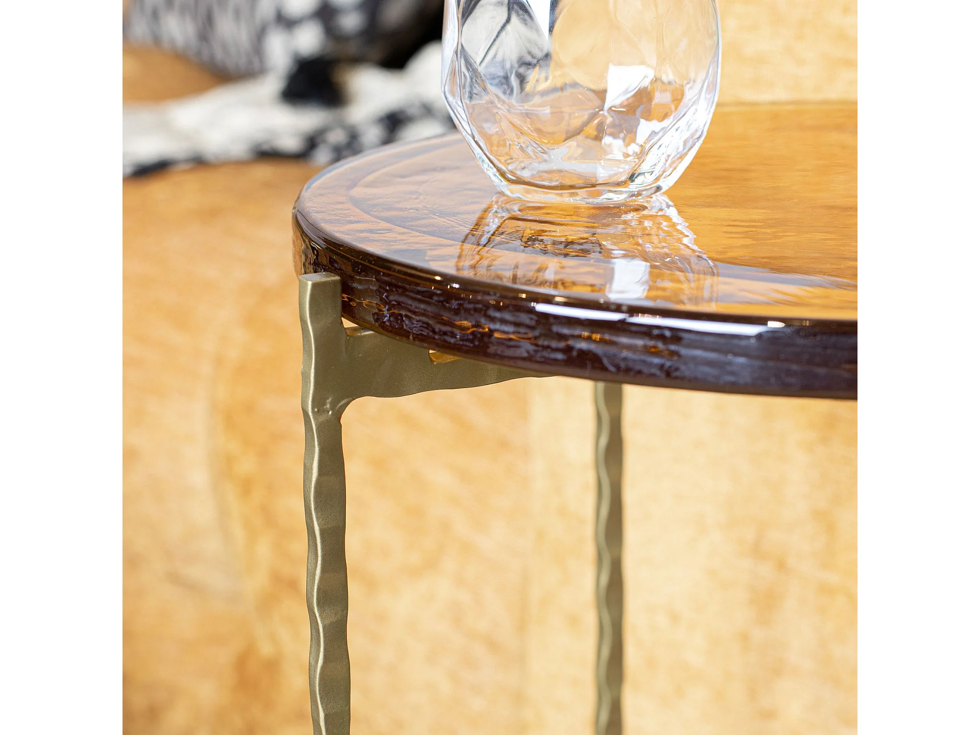 Now's Home - Meuble Appoint En Métal Doré Plateau En Verre Ambre Belli