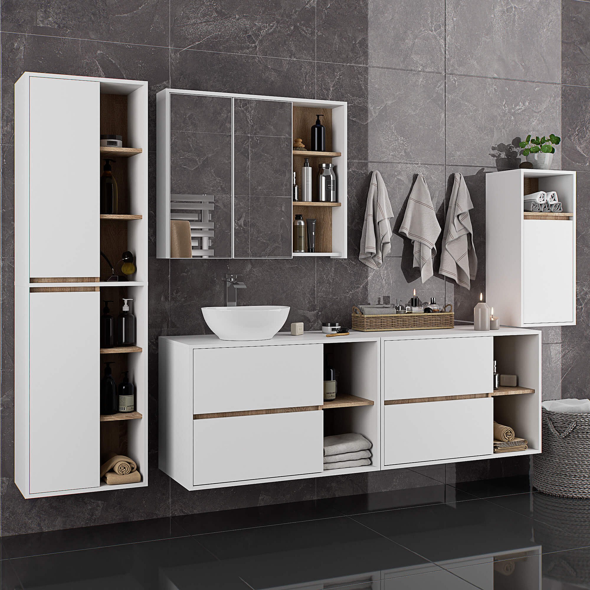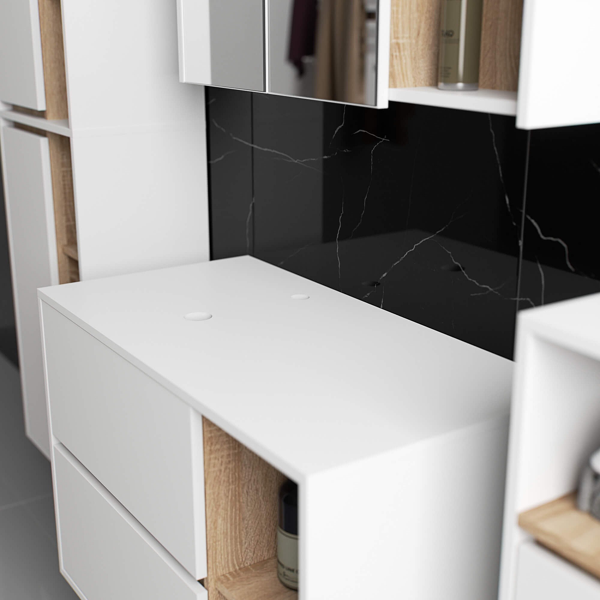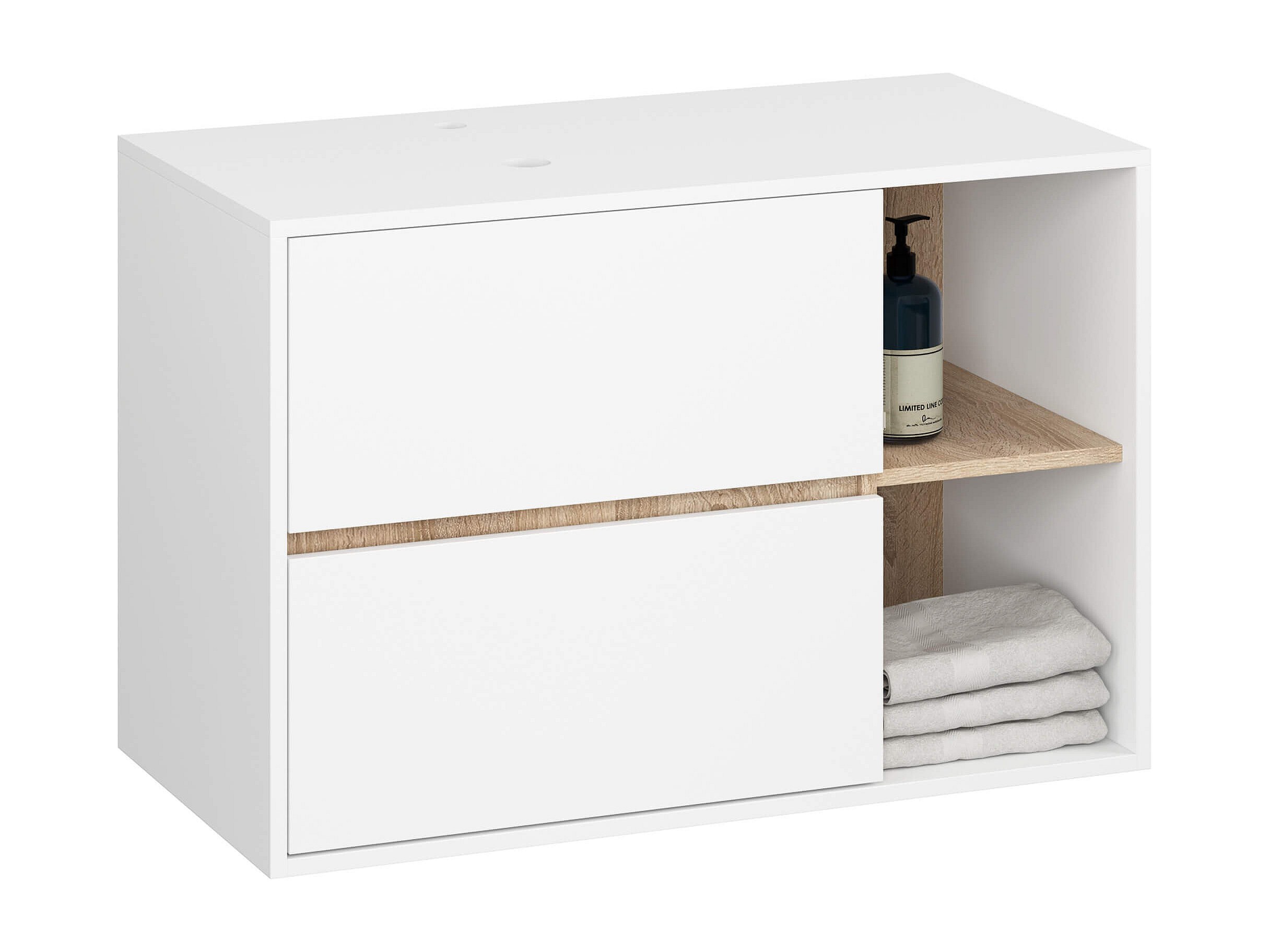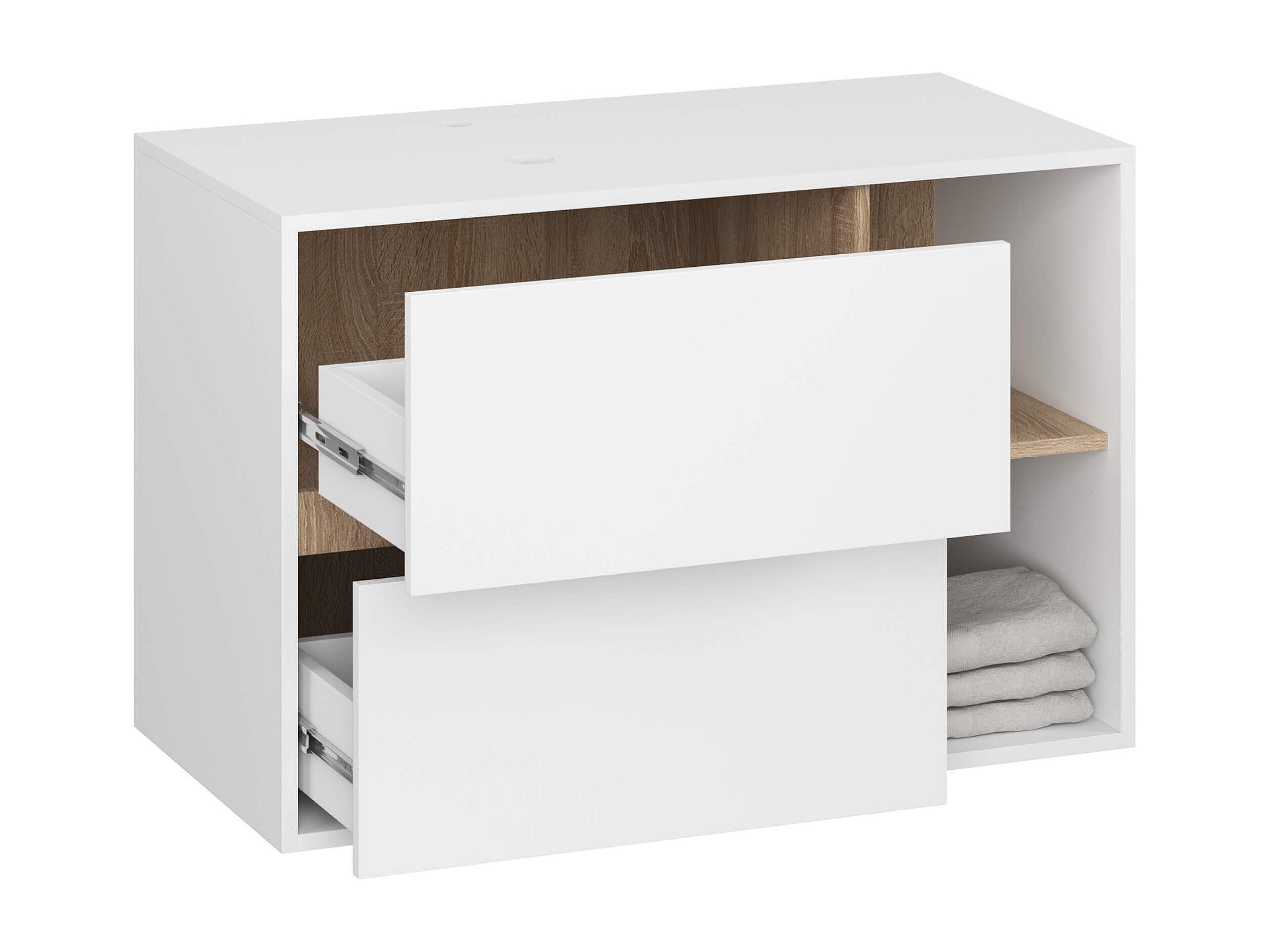 Meuble avec vasque à poser VAMI suspendu Blanche 90 cm 2 tiroirs intérieur Chêne Sonoma 2 étagères 90x45,5x60 cm