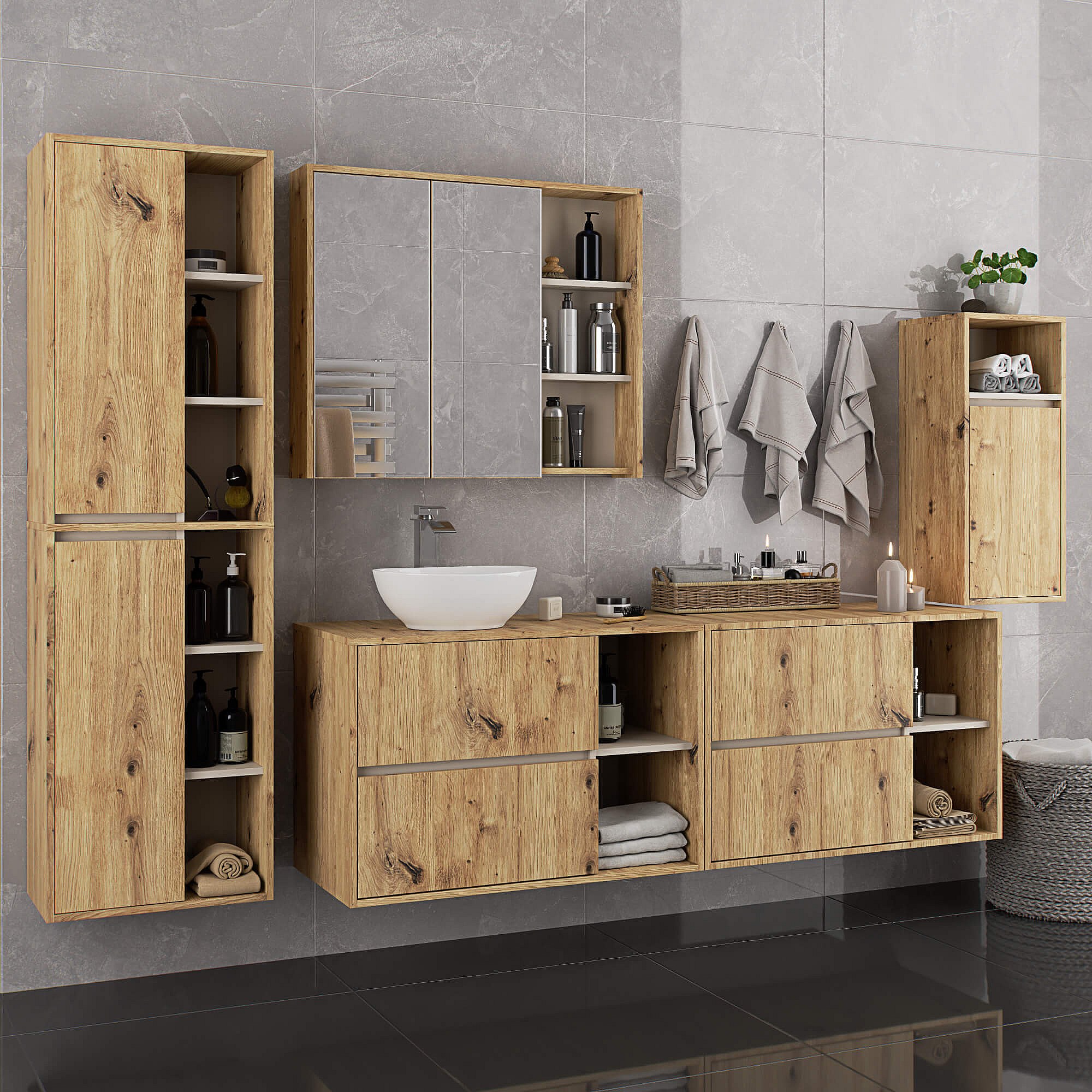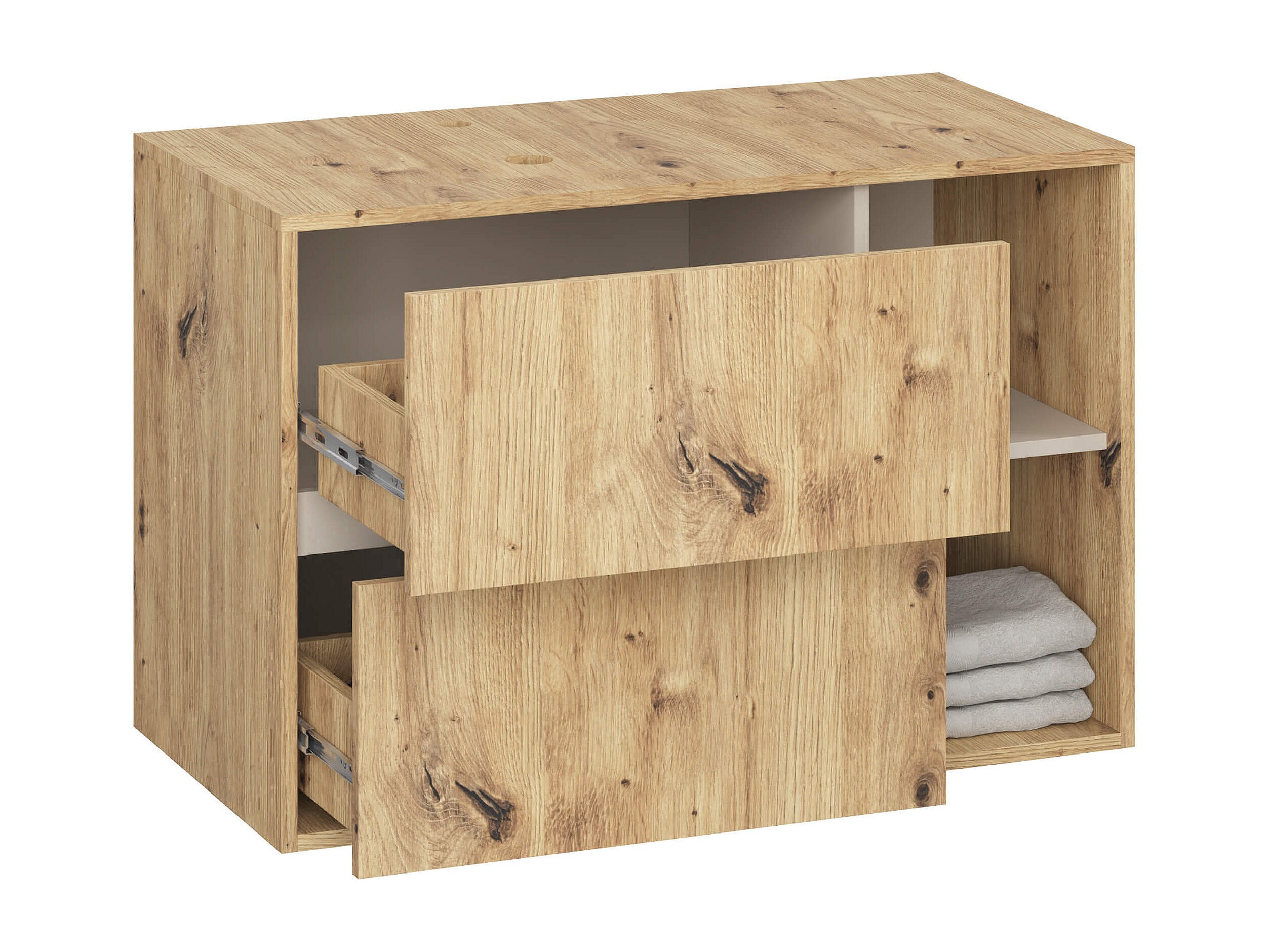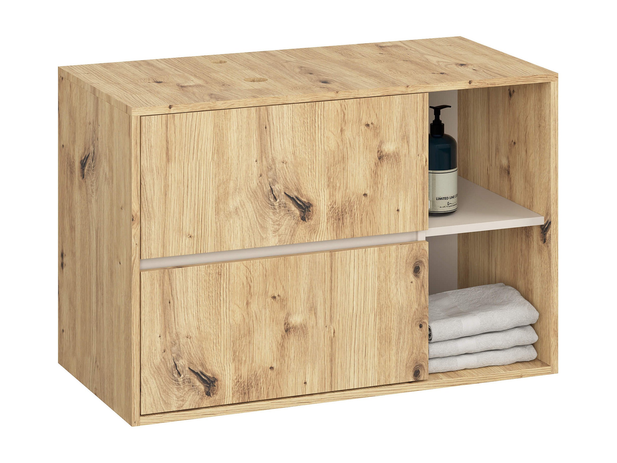 Meuble avec vasque à poser VAMI suspendu Chêne Artisan 90 cm 2 tiroirs intérieur Cachmire 2 étagères 90x45,5x60 cm