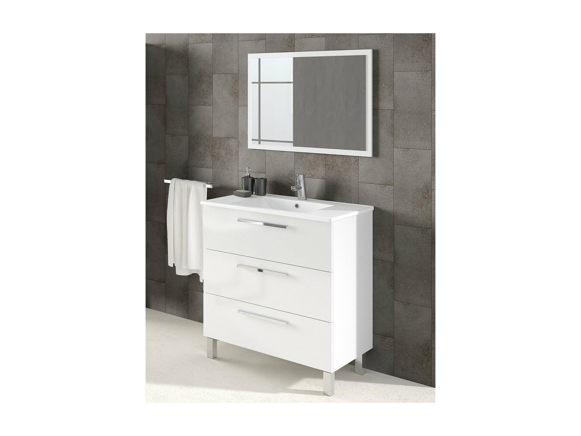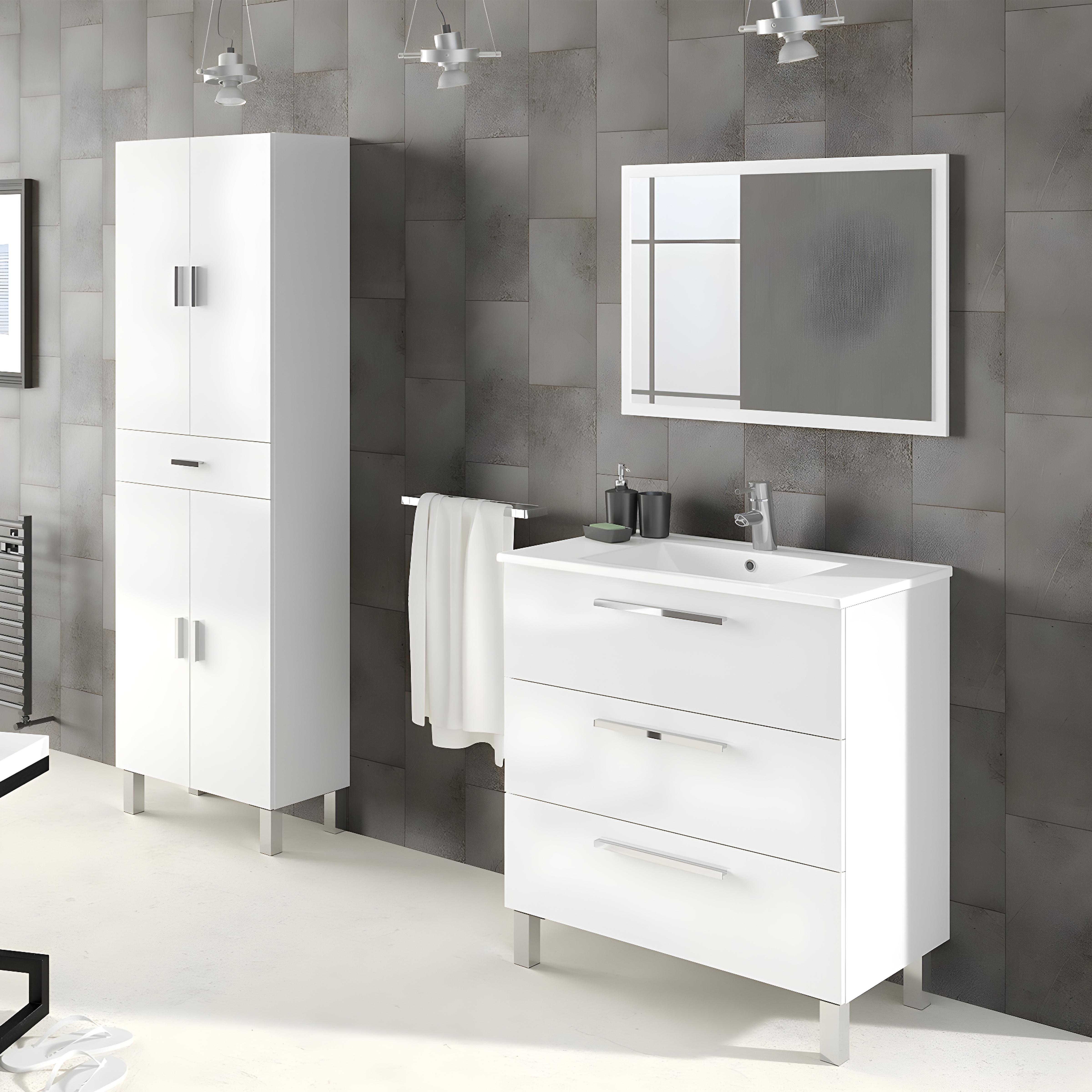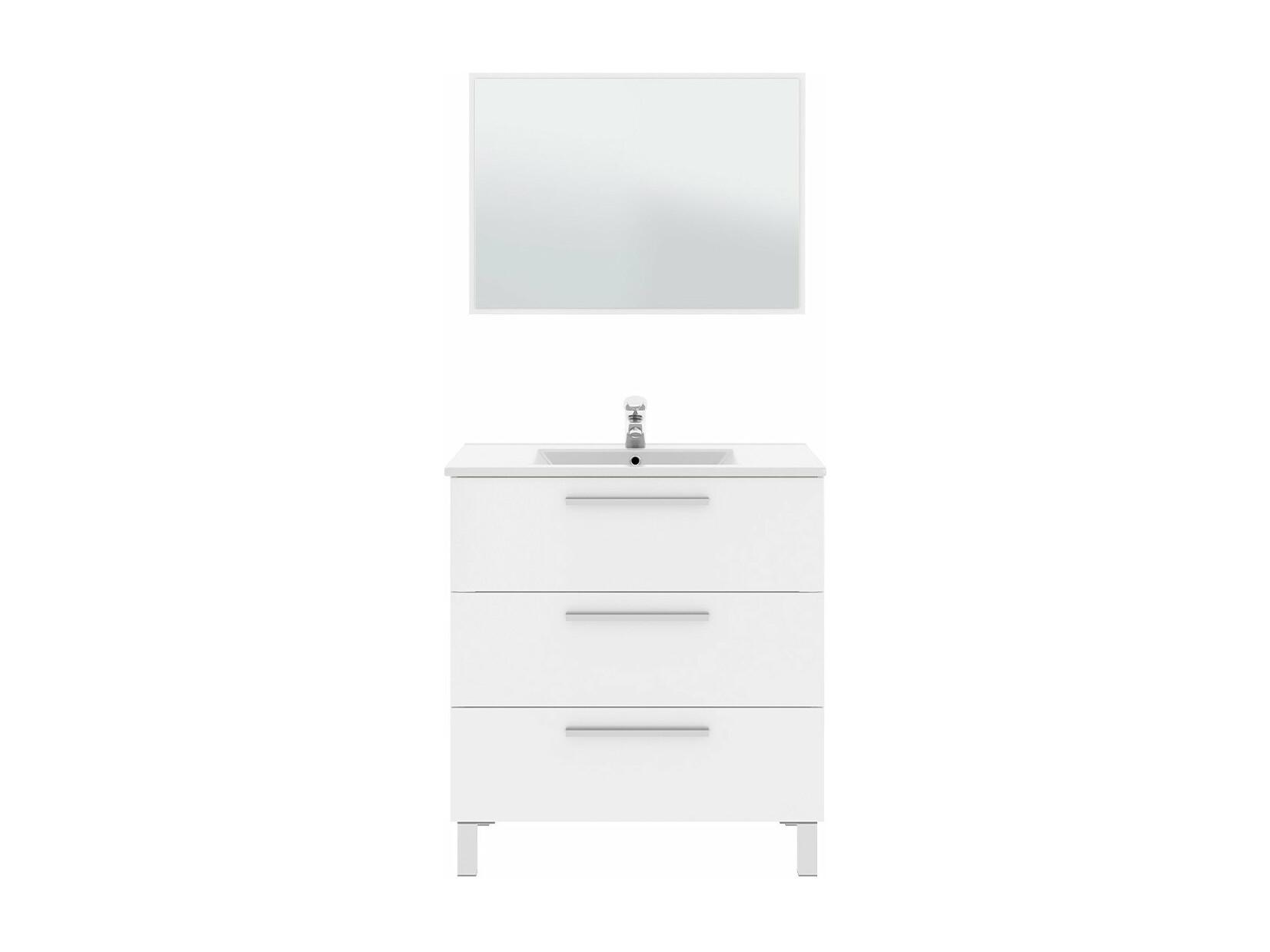 Meuble avec vasque céramique 80 cm 3 tiroirs et miroir - Athena