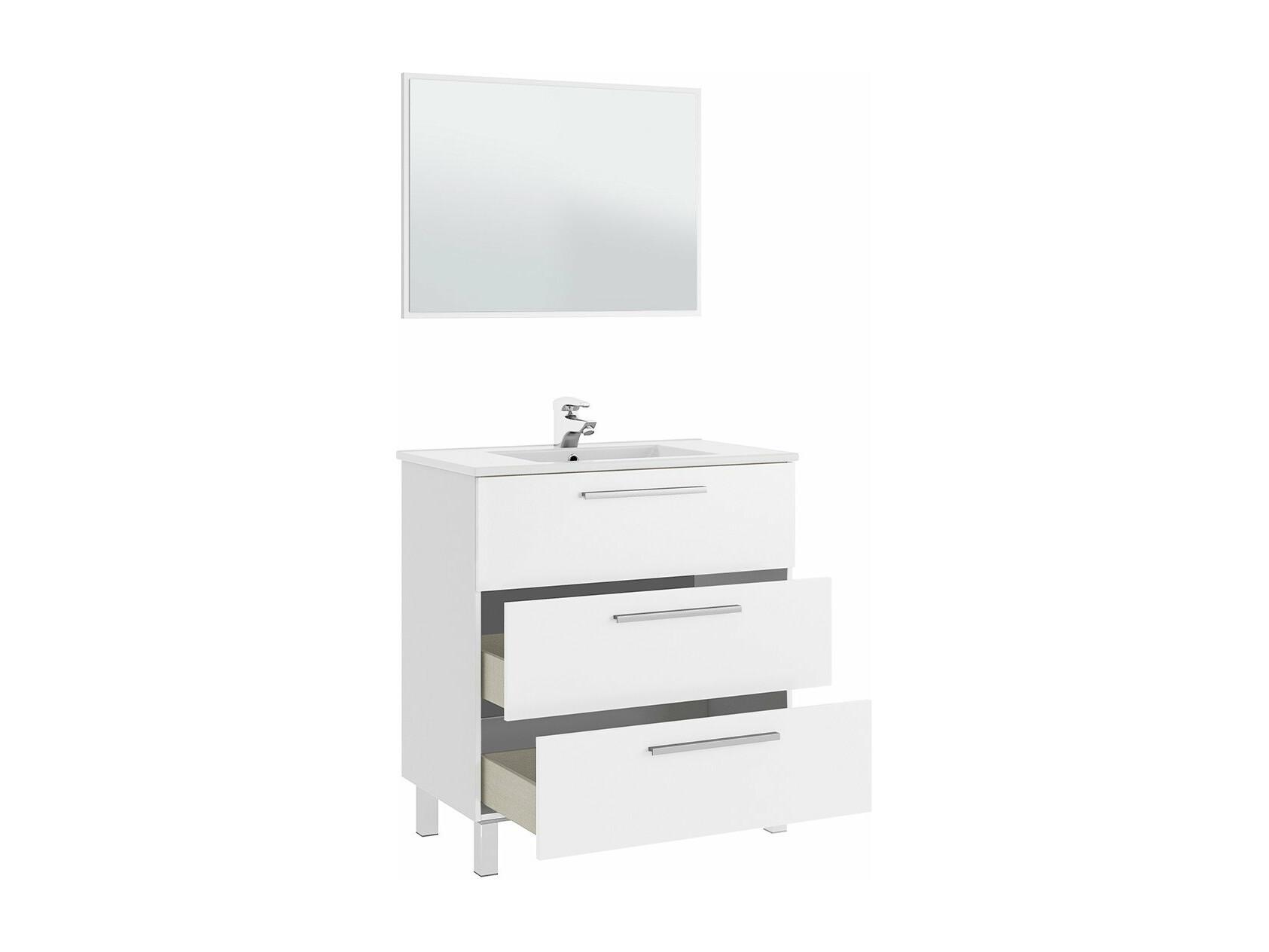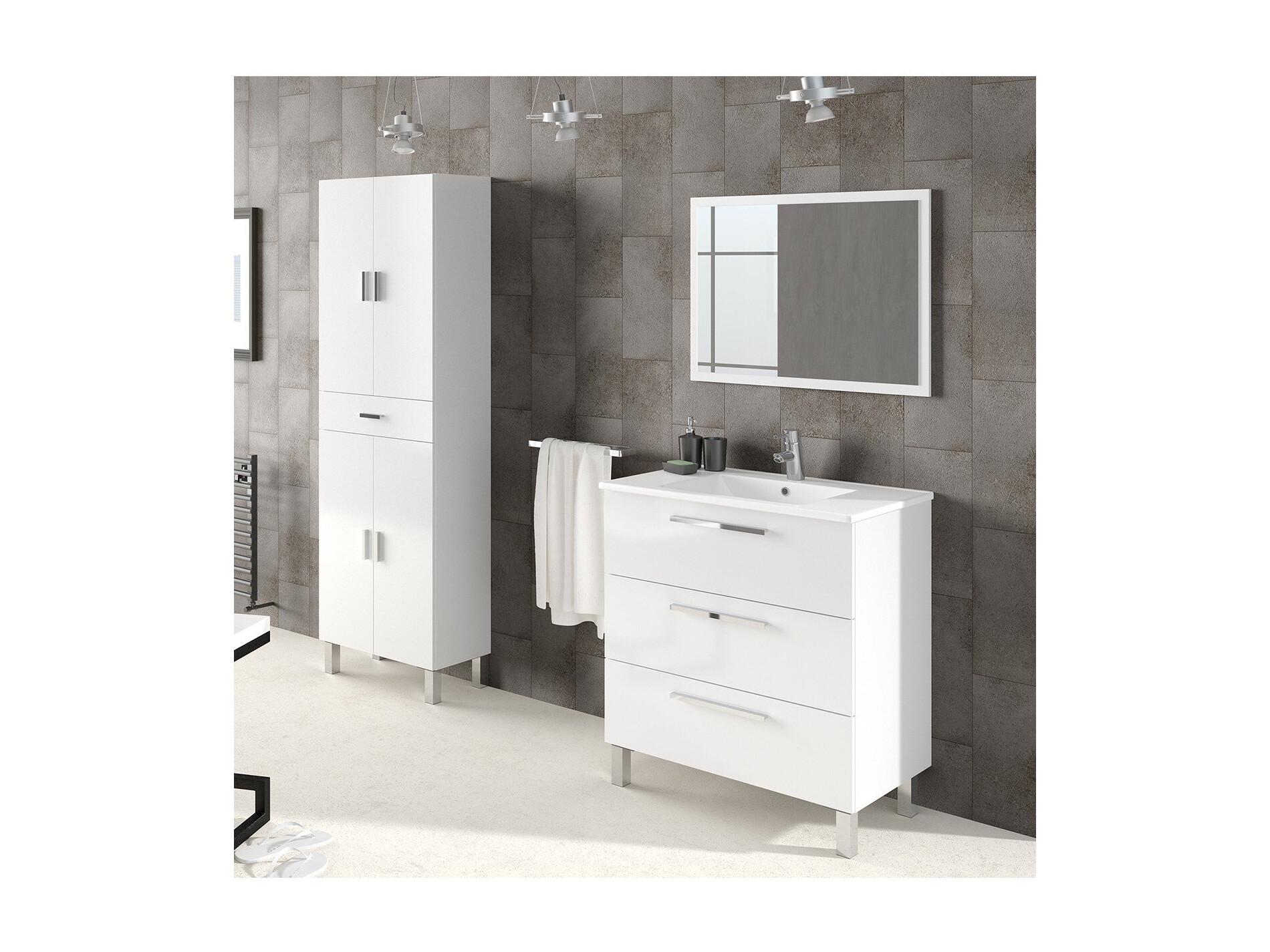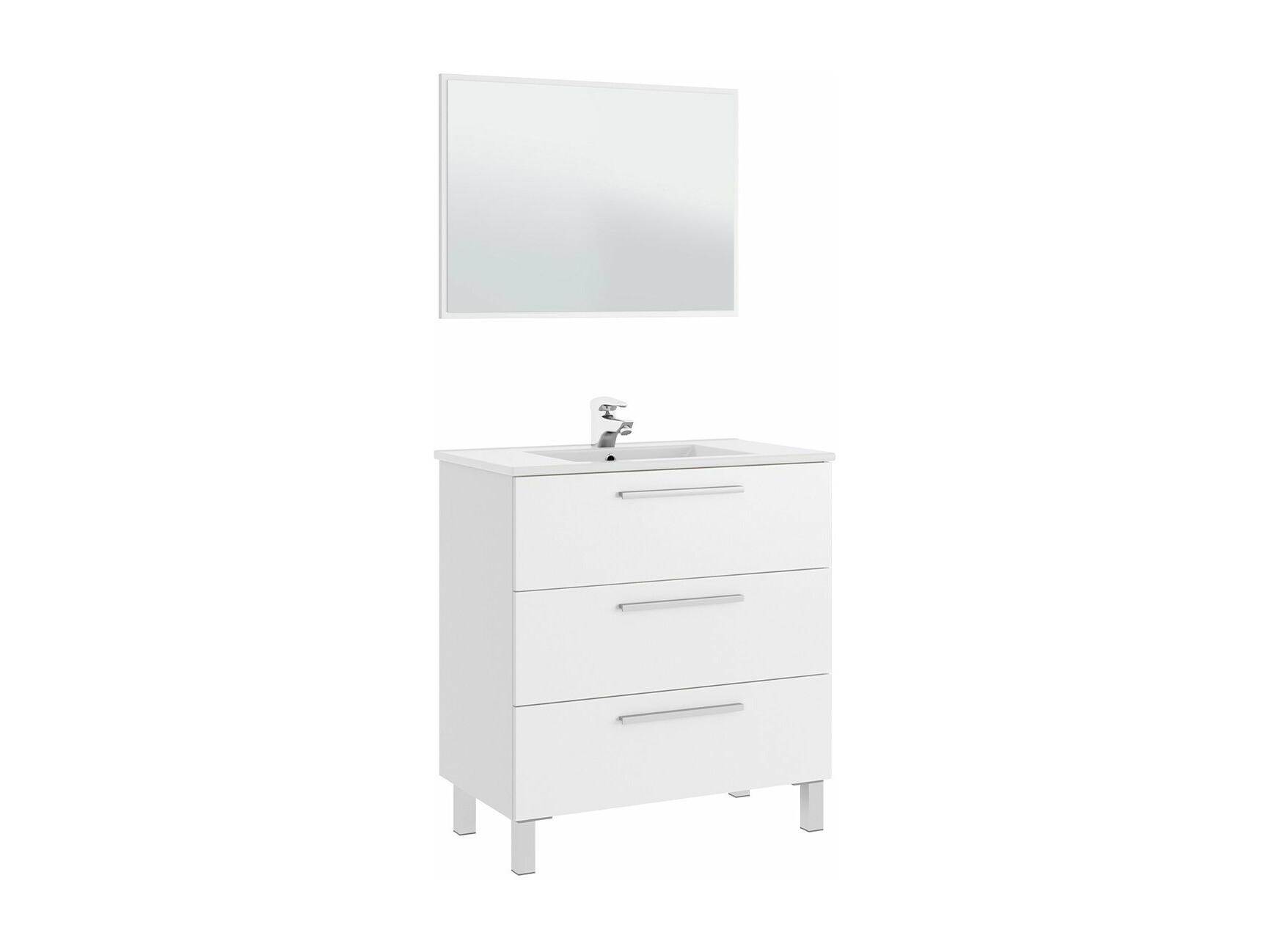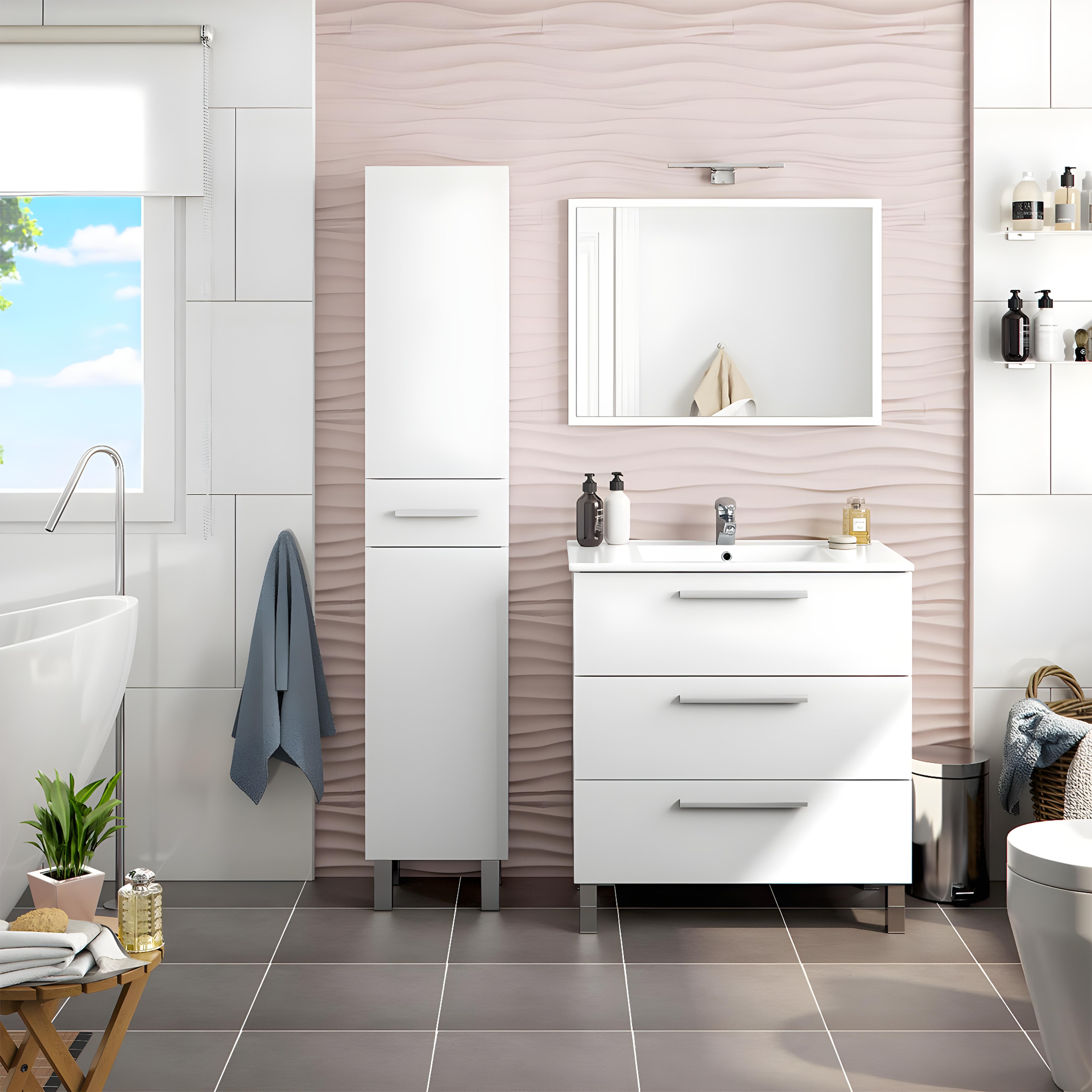 Meuble avec vasque céramique 80 cm 3 tiroirs et miroir - Athena