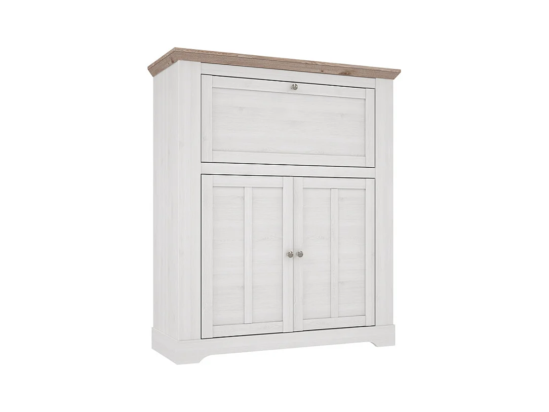 Meuble bar 115 cm 1 abattant 2 portes décor chêne blanchi - ANGELE