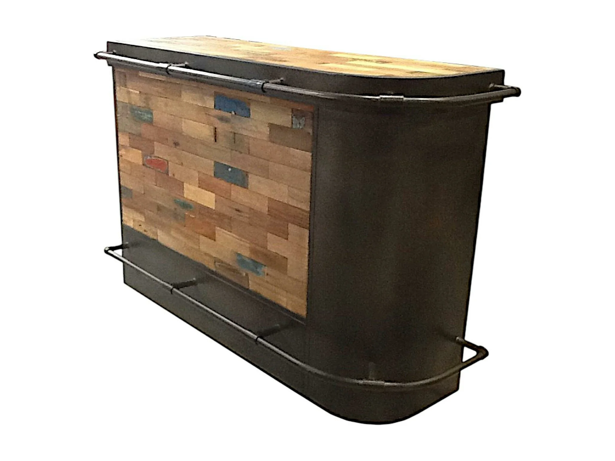 Meuble bar bois recyclé arrondi à droite 164x60 CARAVELLE