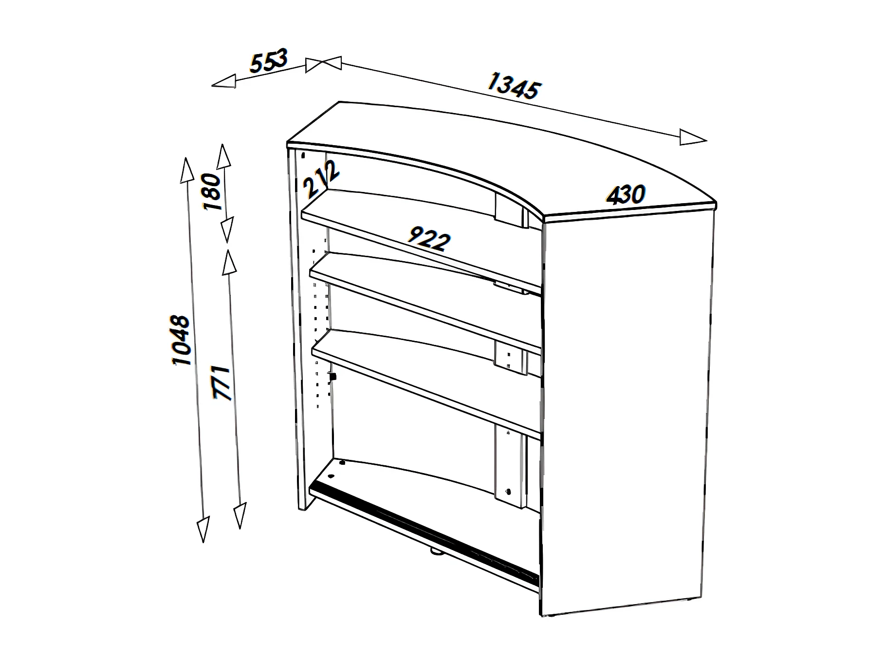 Meuble Bar Comptoir d'Accueil Noir 3 Tablettes 134,5 x 104,8 x 55,3 cm - Coloris: Blanc
