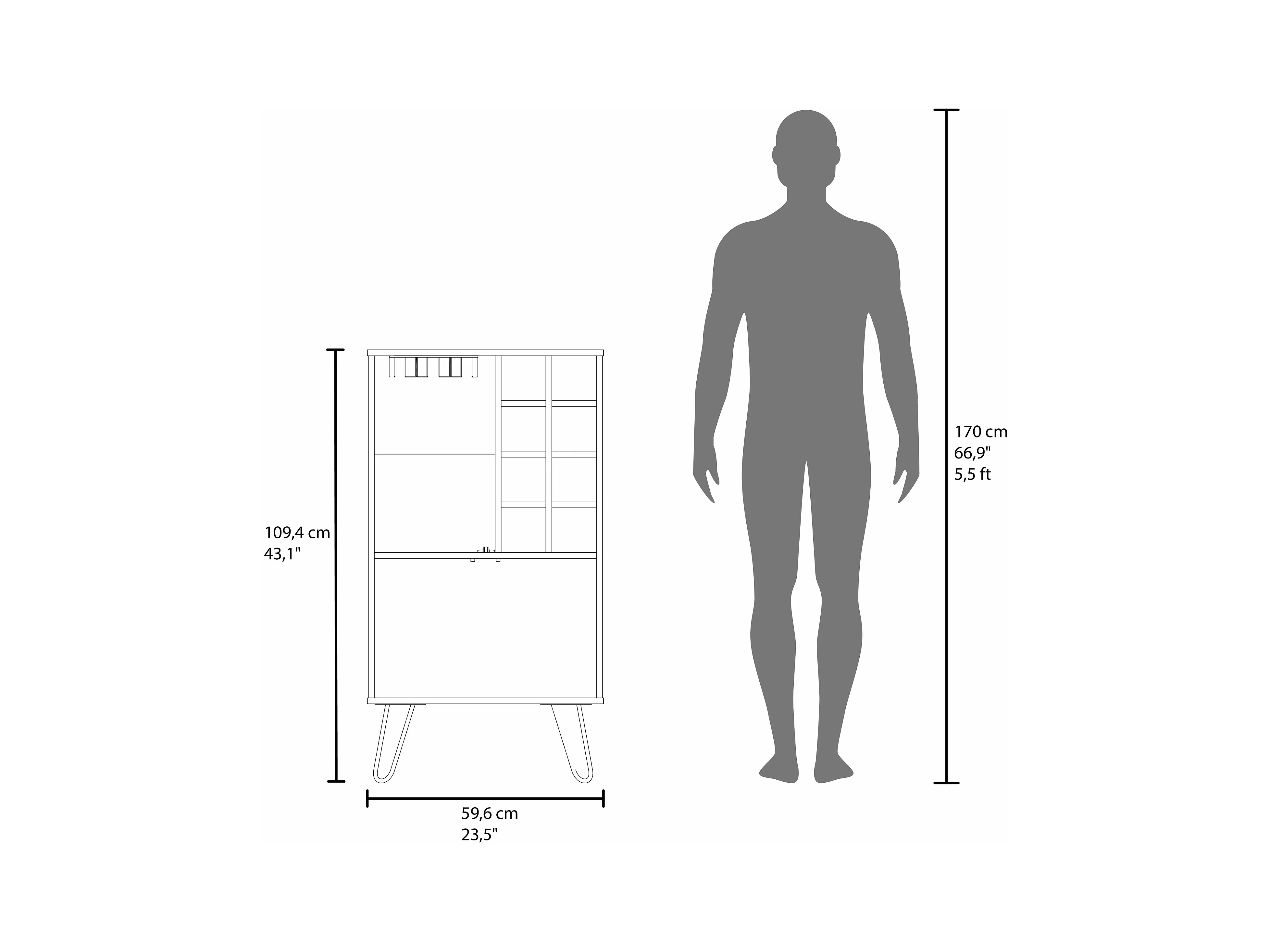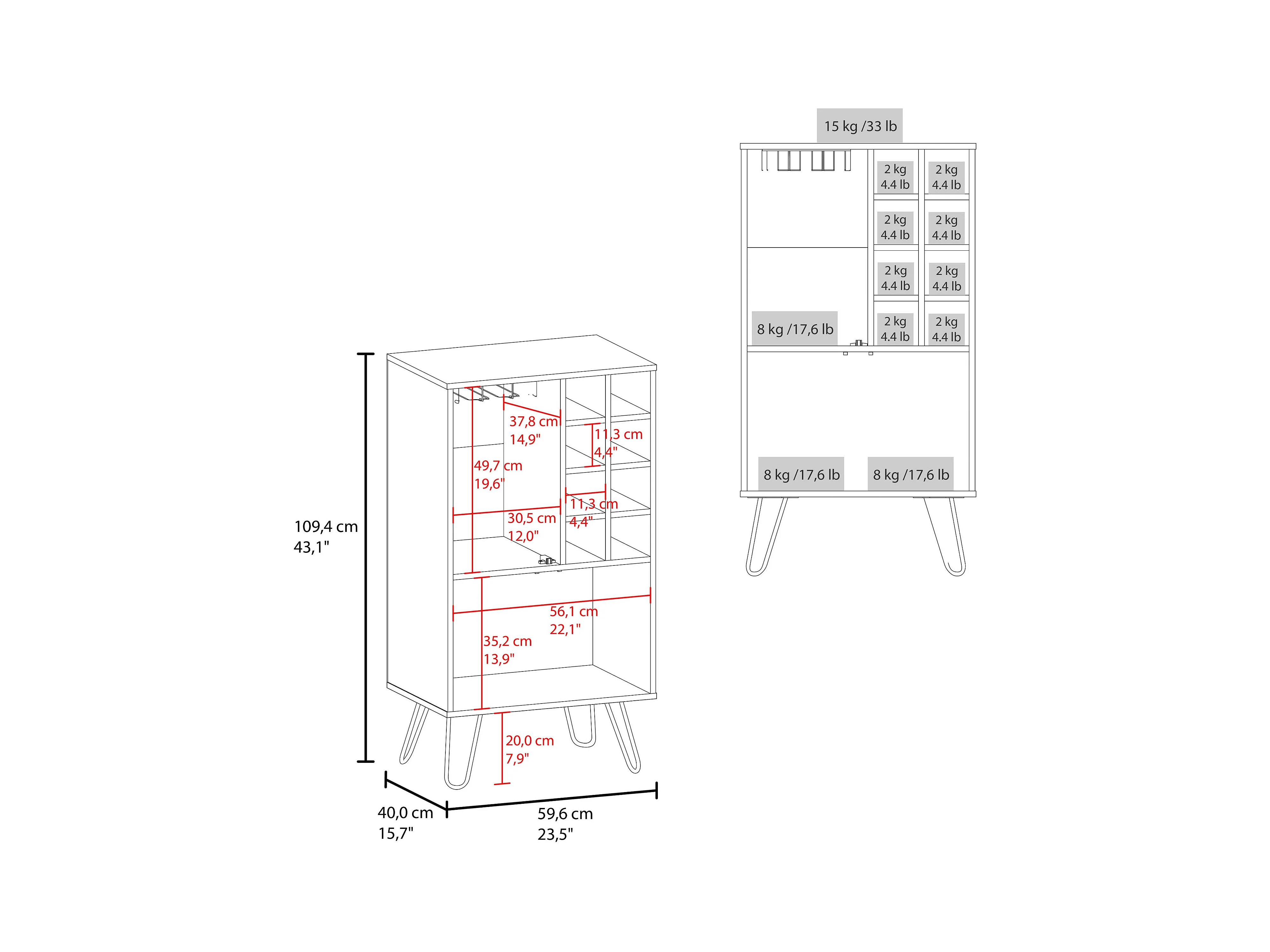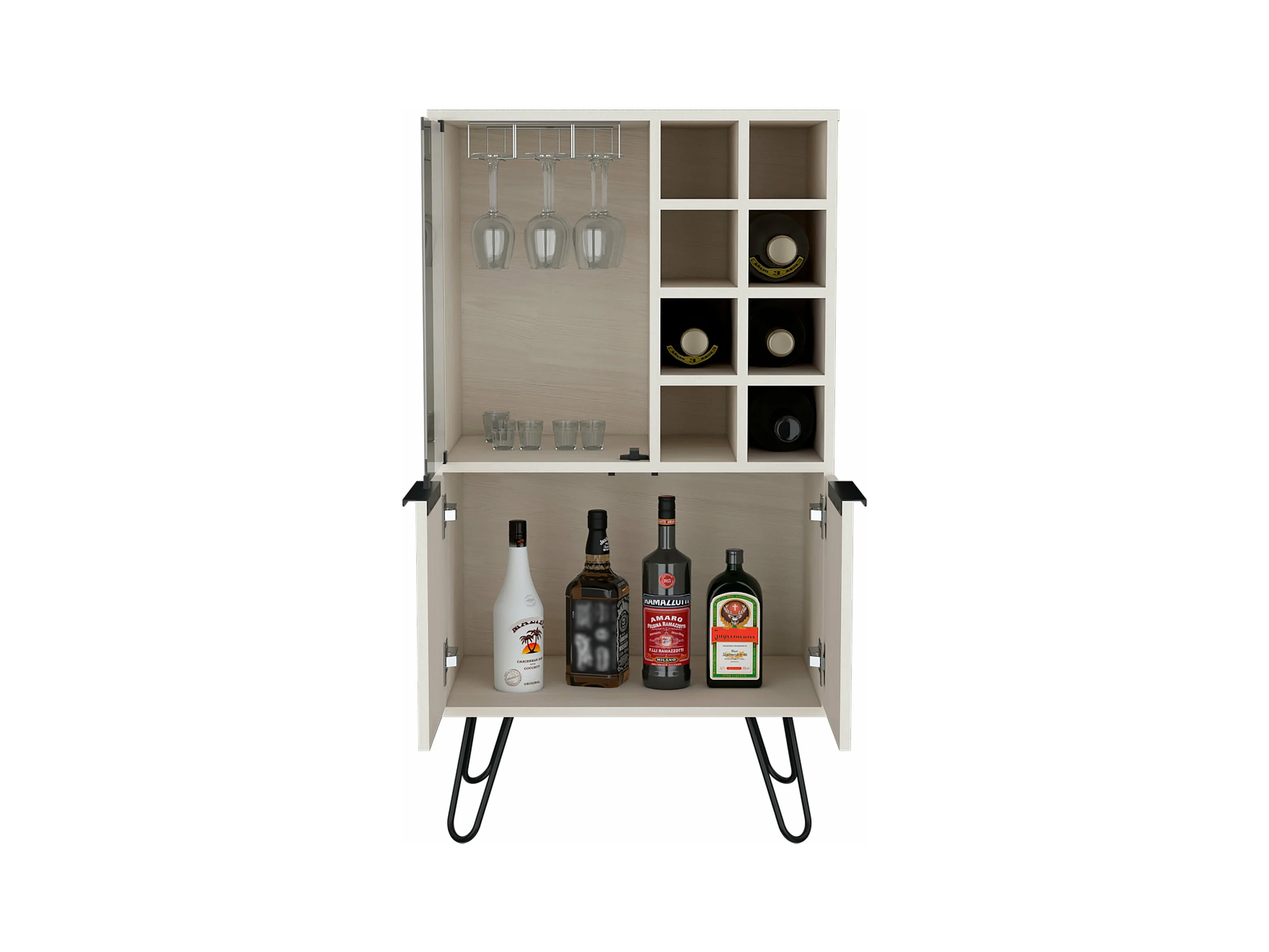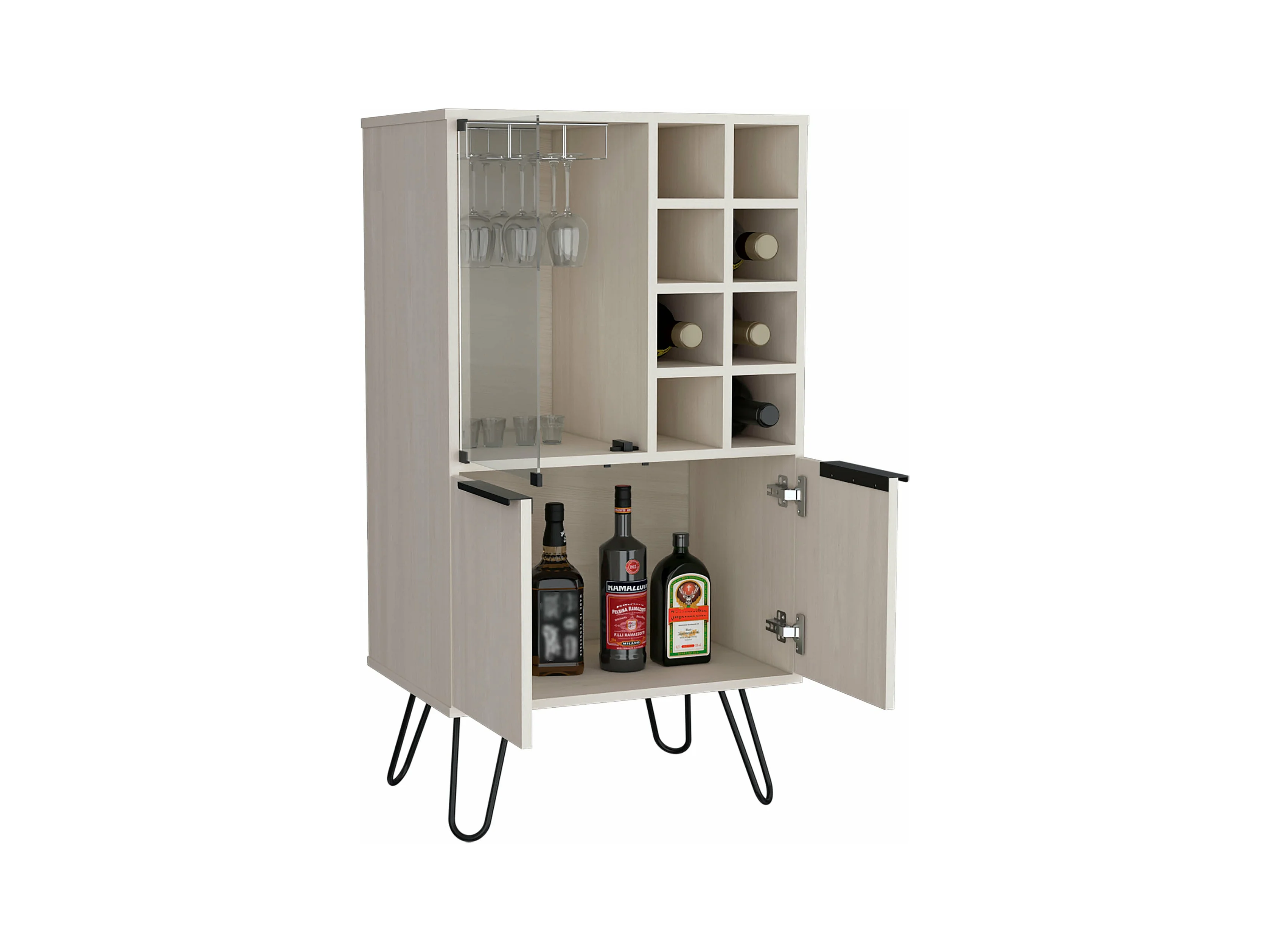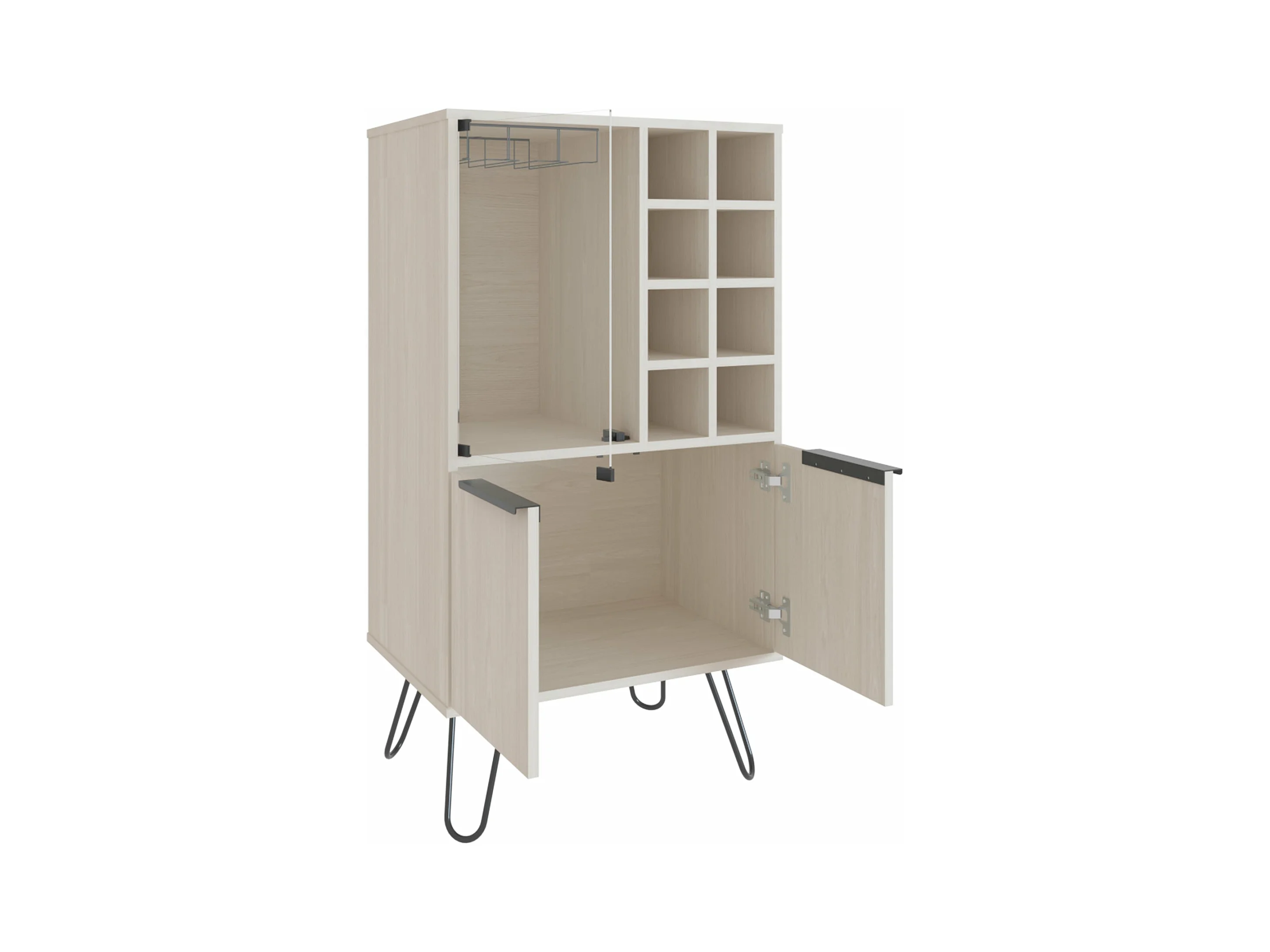 Meuble bar en mélamine aster avec 8 porte-bouteilles, 9 porte-gobelets et rangement inférieur , Blanc , 109.4 cm X 59.6 cm X 40 cm