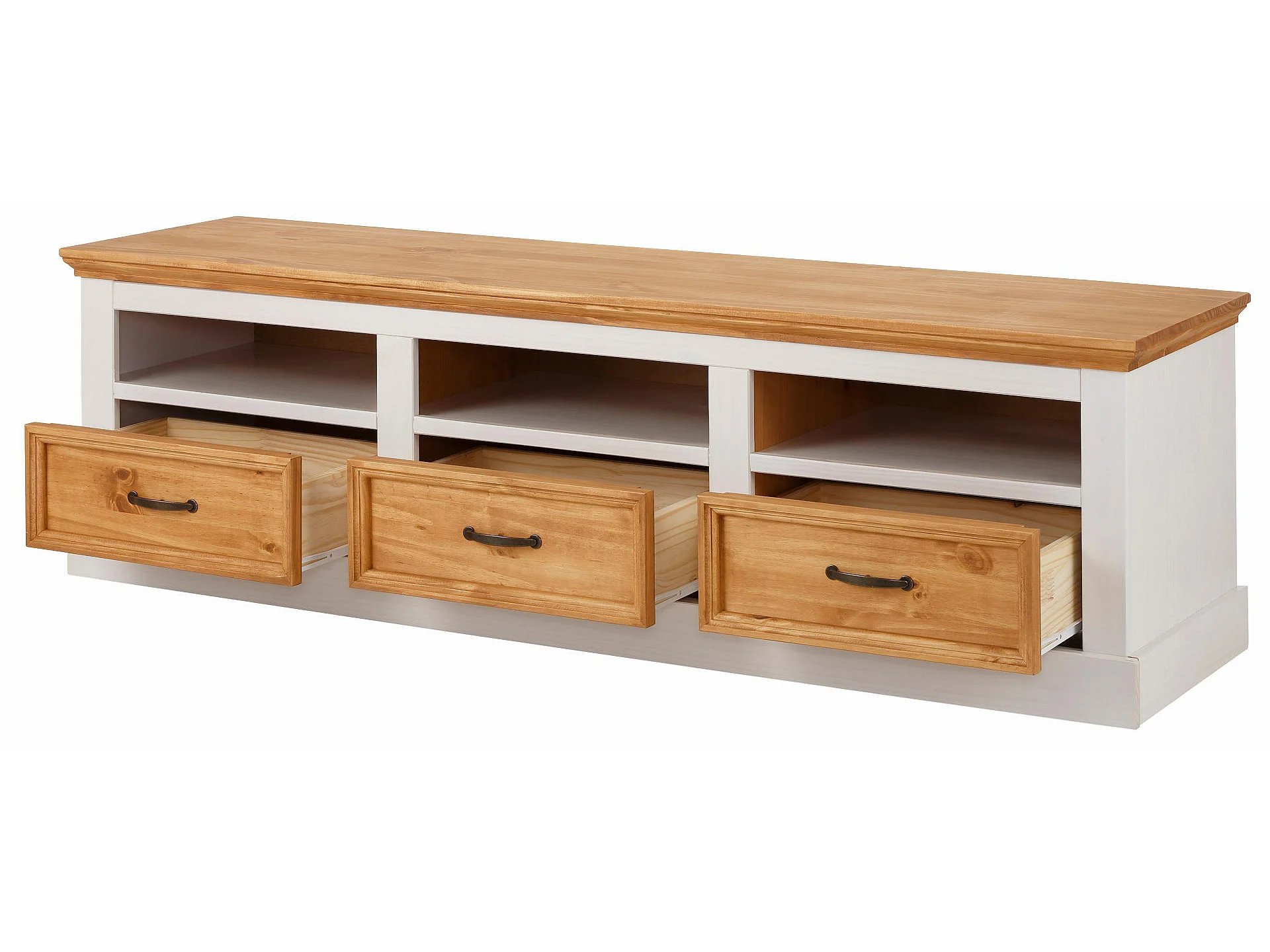 Selma | Meuble bas 3 tiroirs en pin blanc et teint ciré