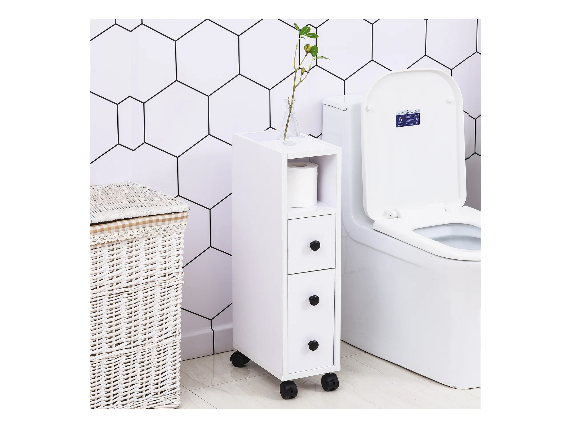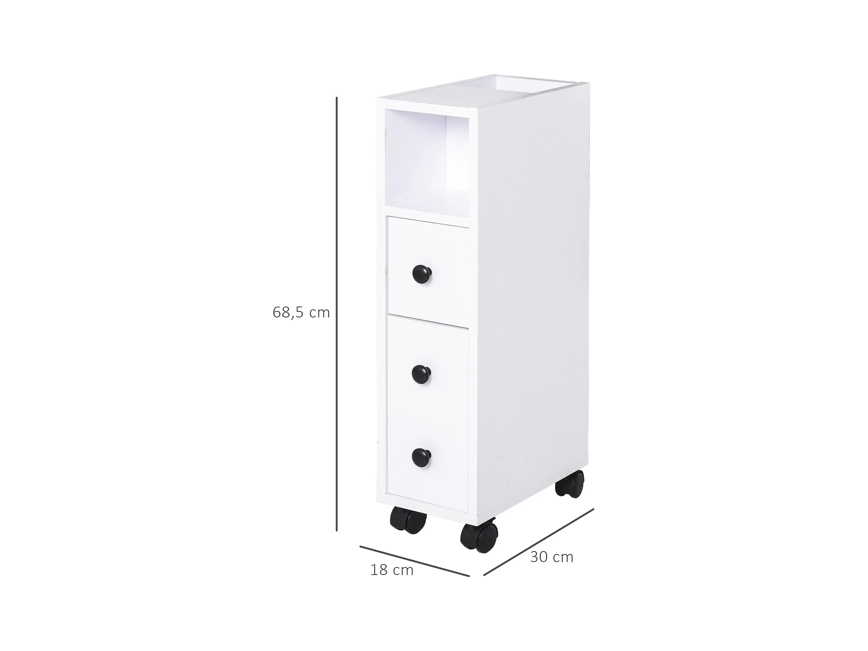 Meuble bas colonne rangement salle de bain à roulettes blanc dim. 18L x 30l x 68,5H cm