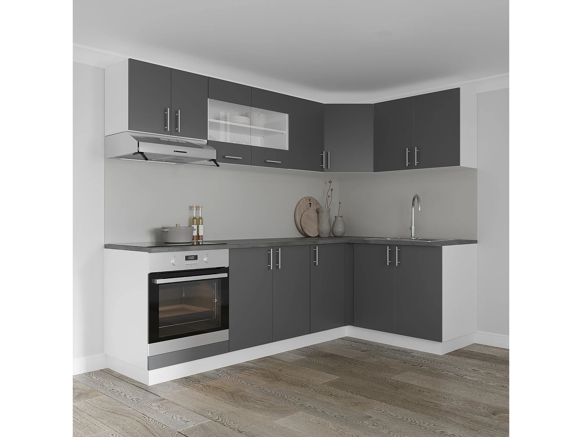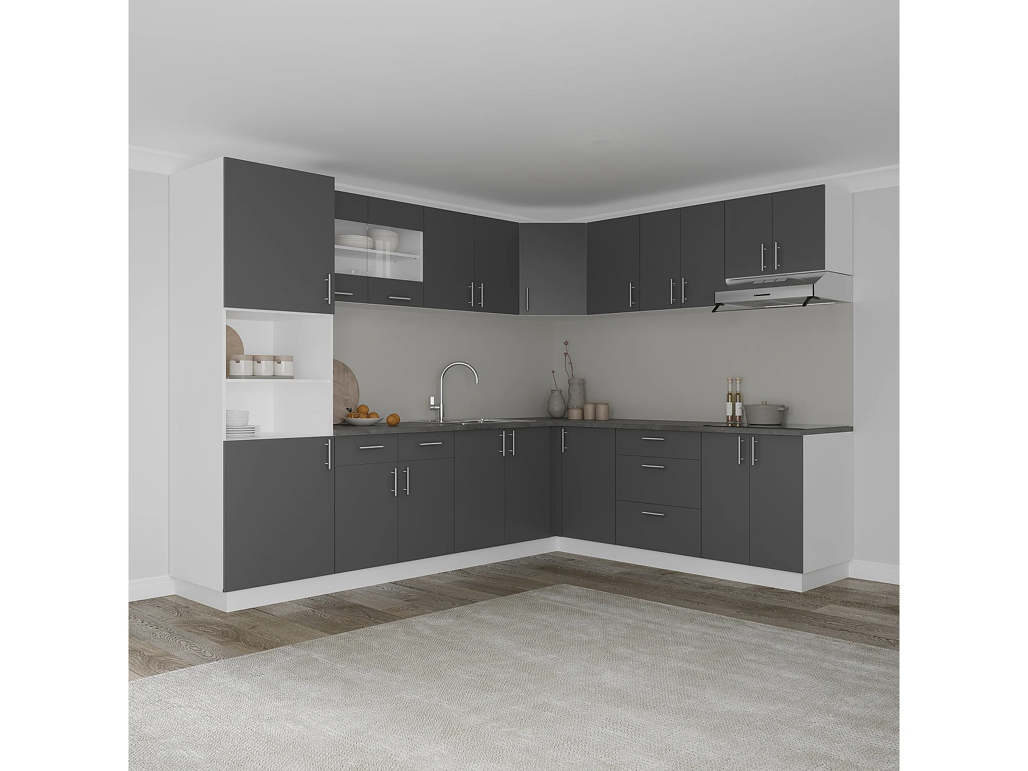 Meuble bas d'angle haaus Karo, Anthracite/Blanc, 98 x 50 x 80 cm
