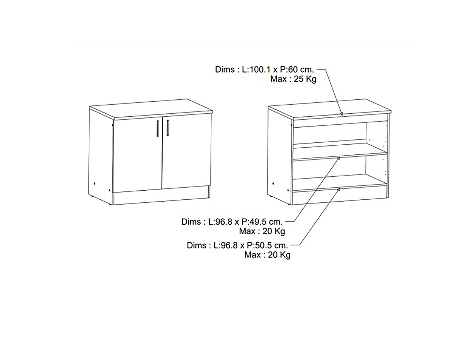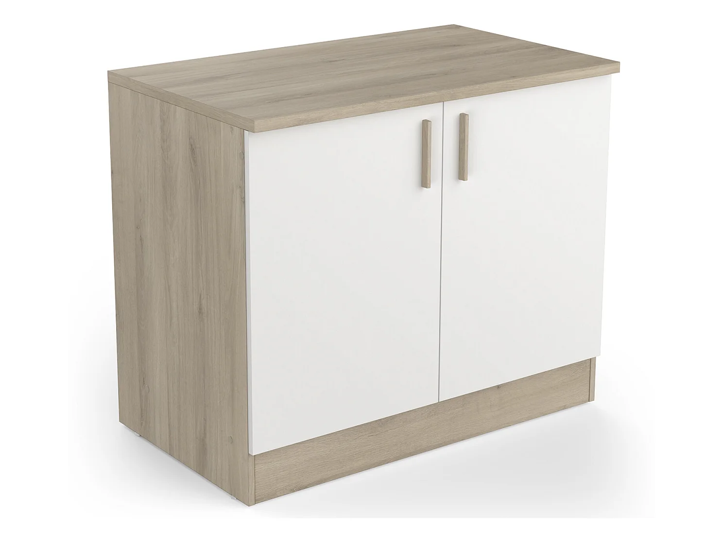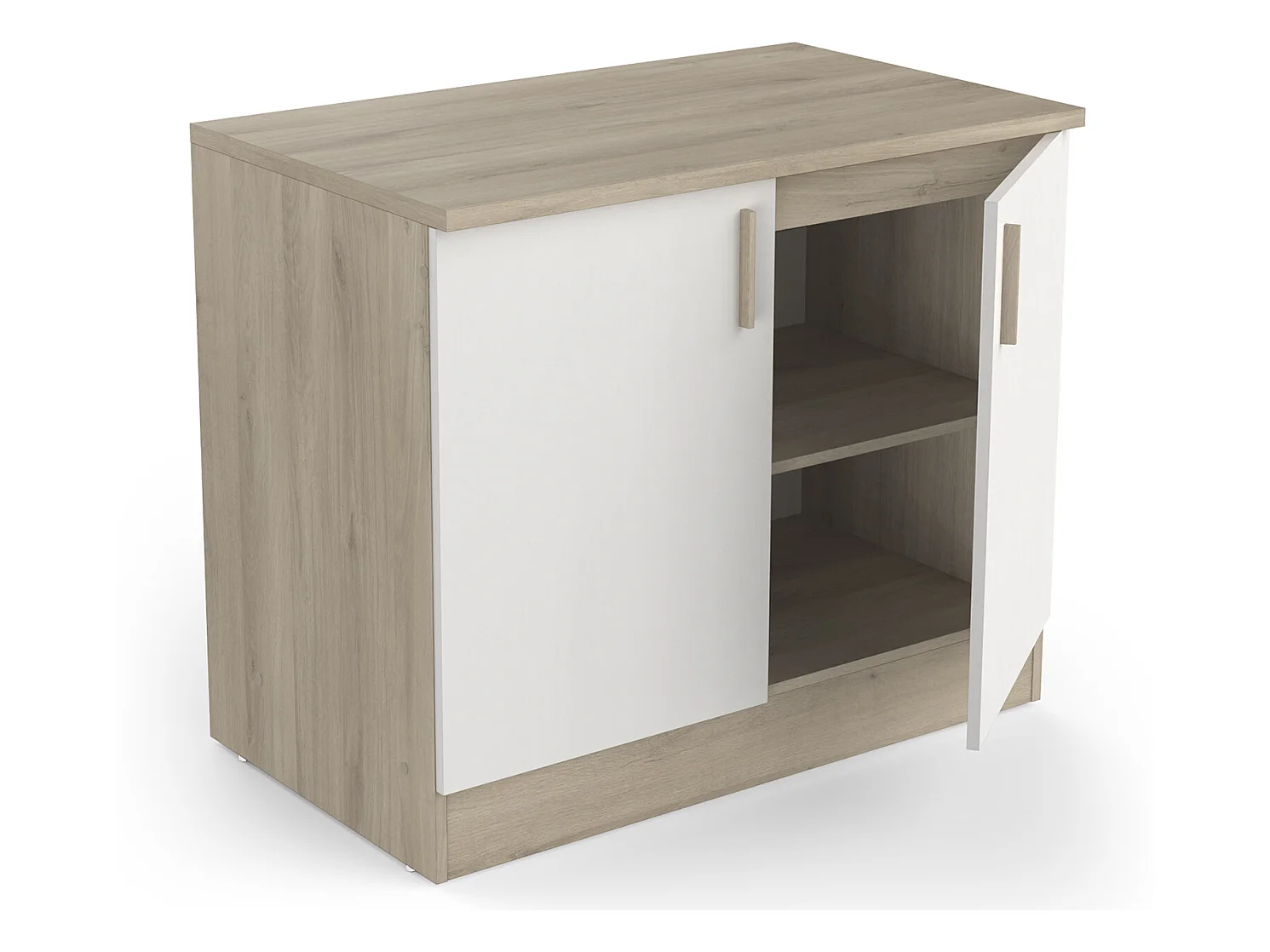 Meuble bas de cuisine coloris chêne kronberg, blanc - Longueur 100 x Hauteur 85 x Profondeur 60 cm