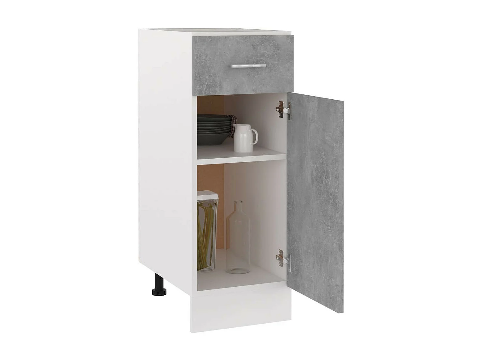 Meuble armoire de cuisine avec 1 porte + 1 tiroir coloris gris - Hauteur 85 x Longueur 40 x profondeur 58 cm