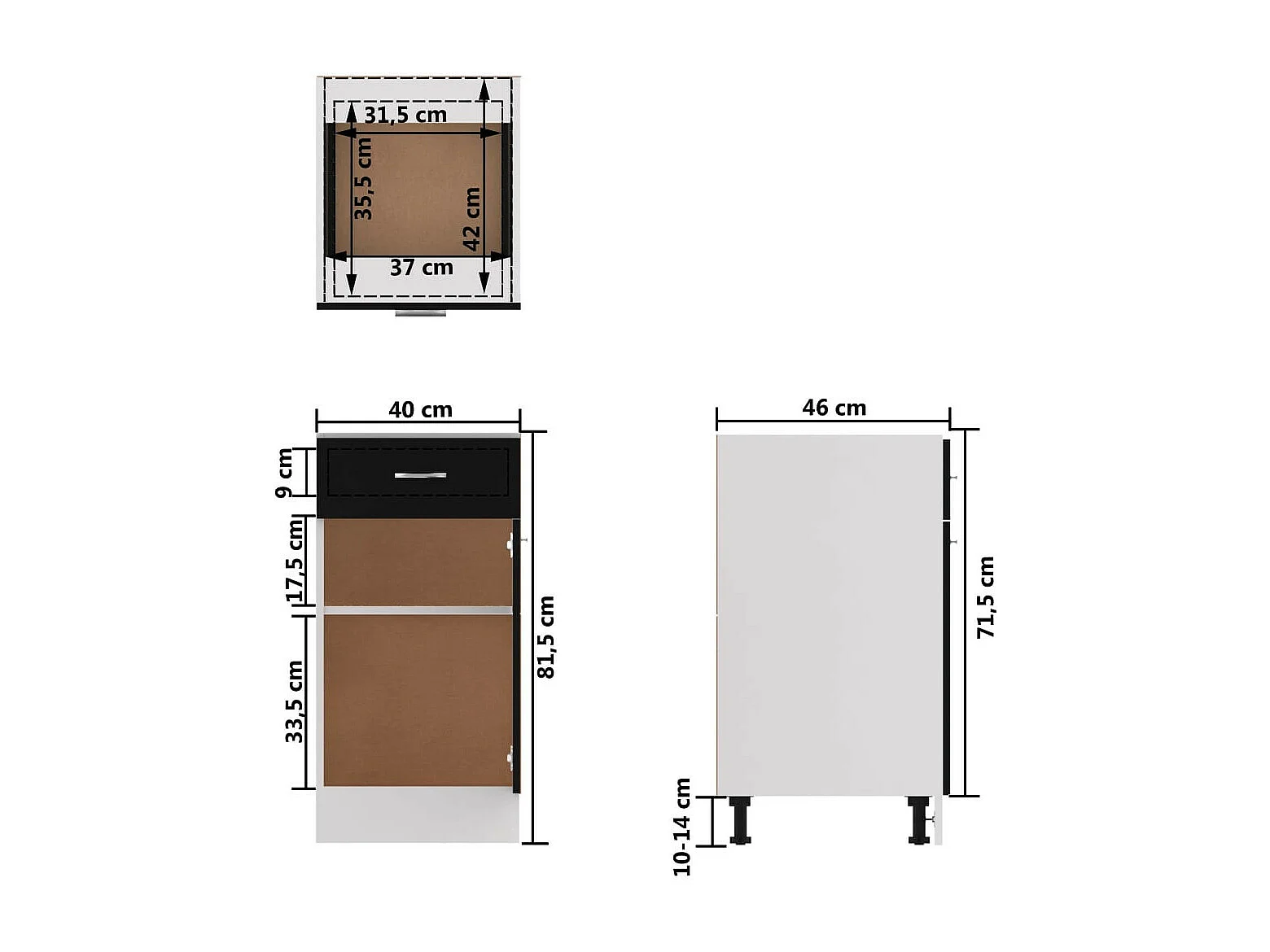 Meuble bas de cuisine Noir 40x46x81,5