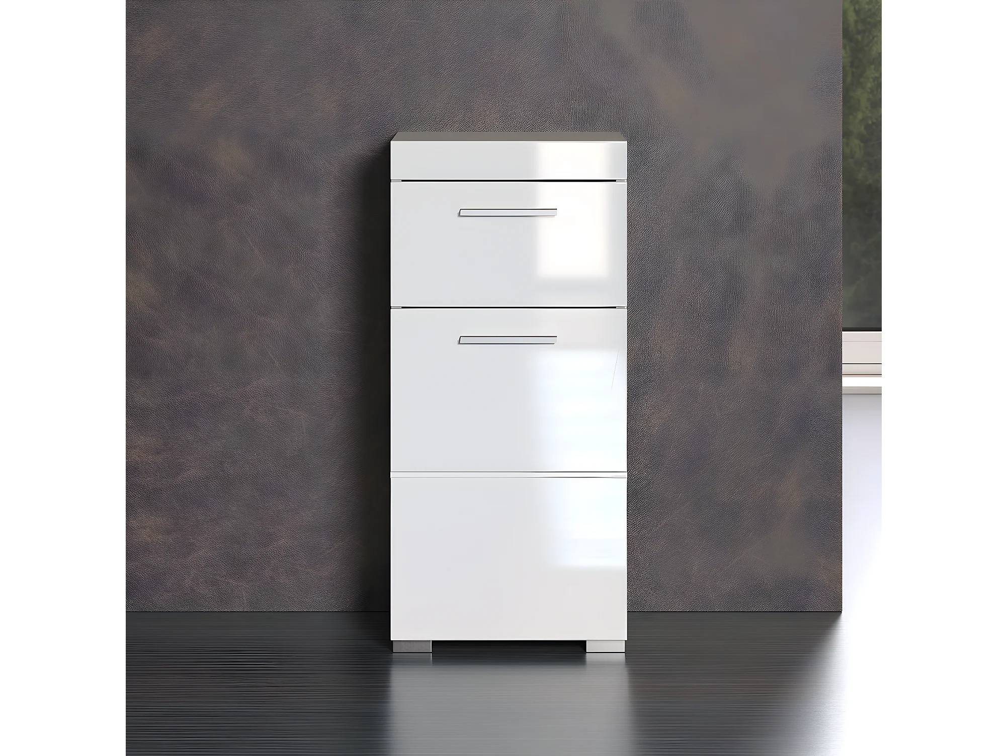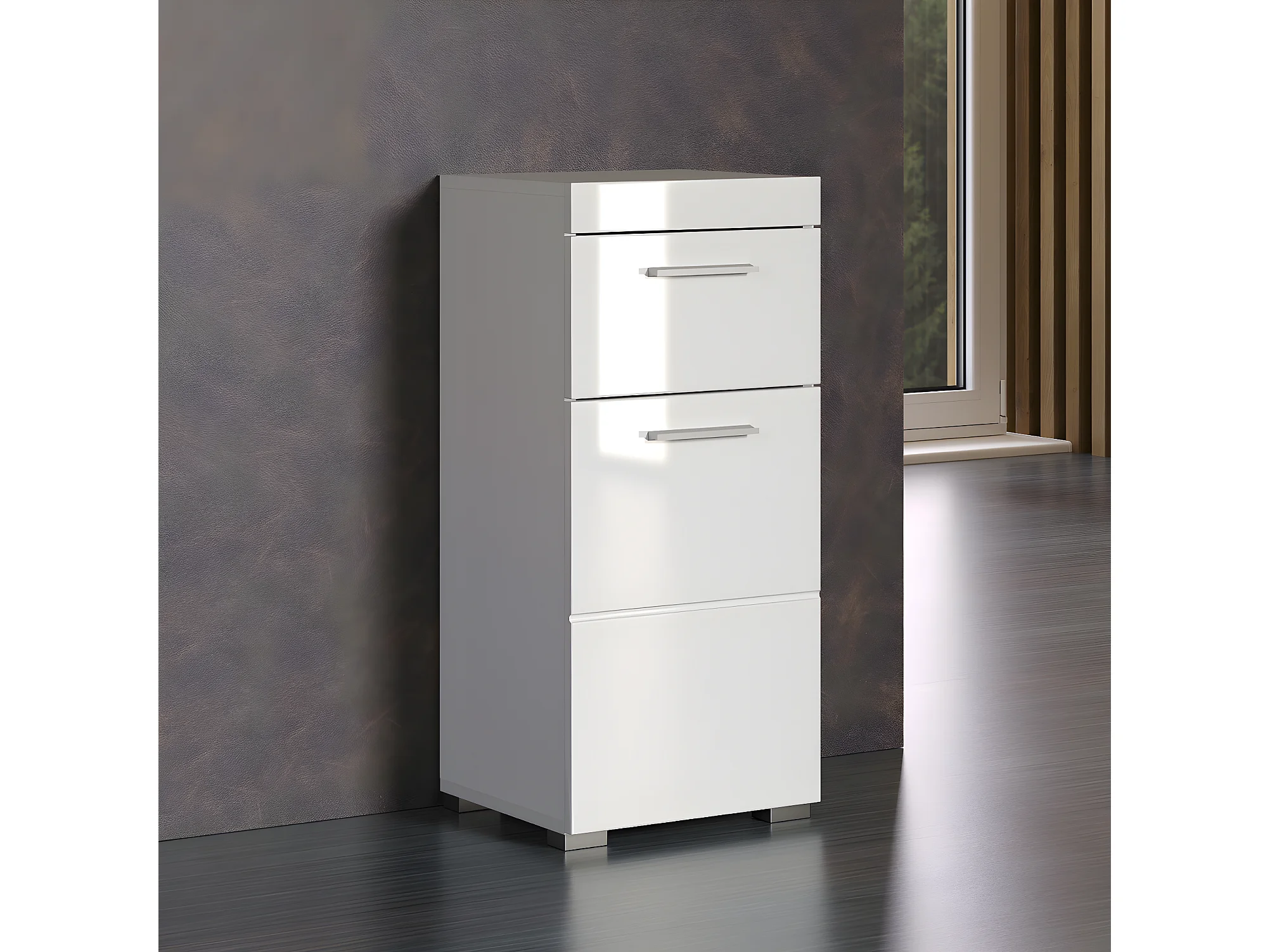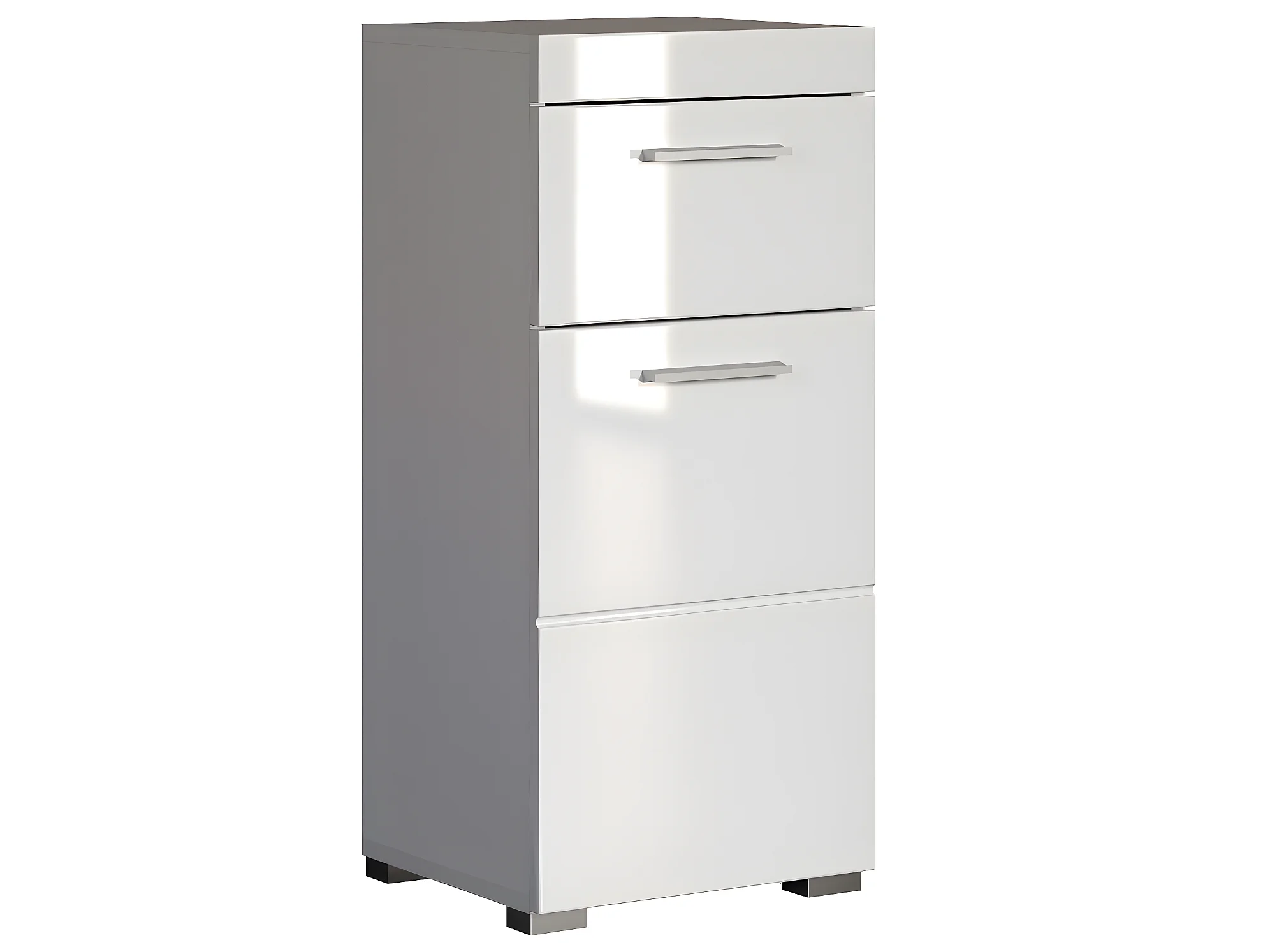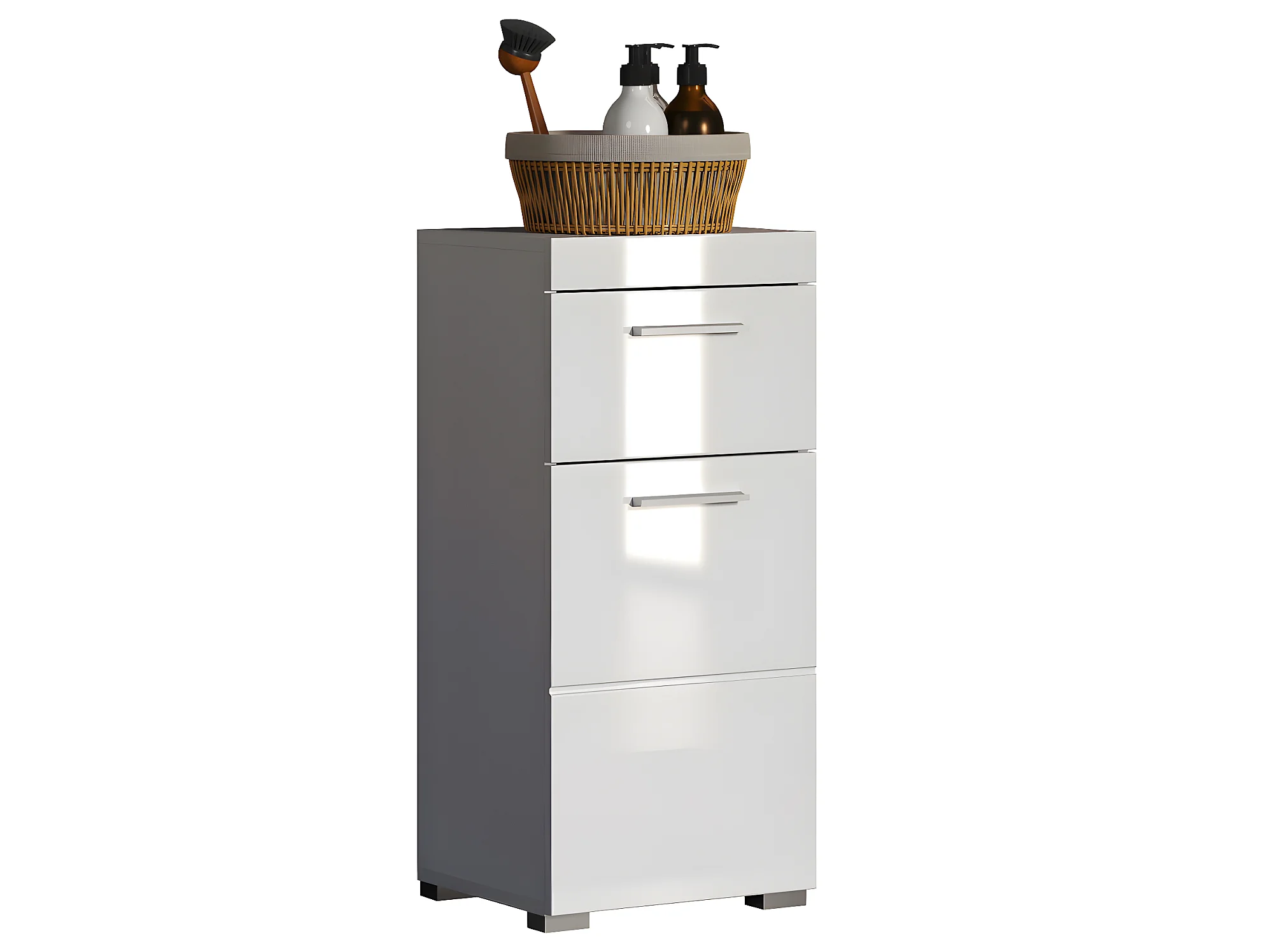 Meuble bas de salle de bain coloris blanc mat et blanc brillant - L. 37 x H. 79 x P. 31 cm