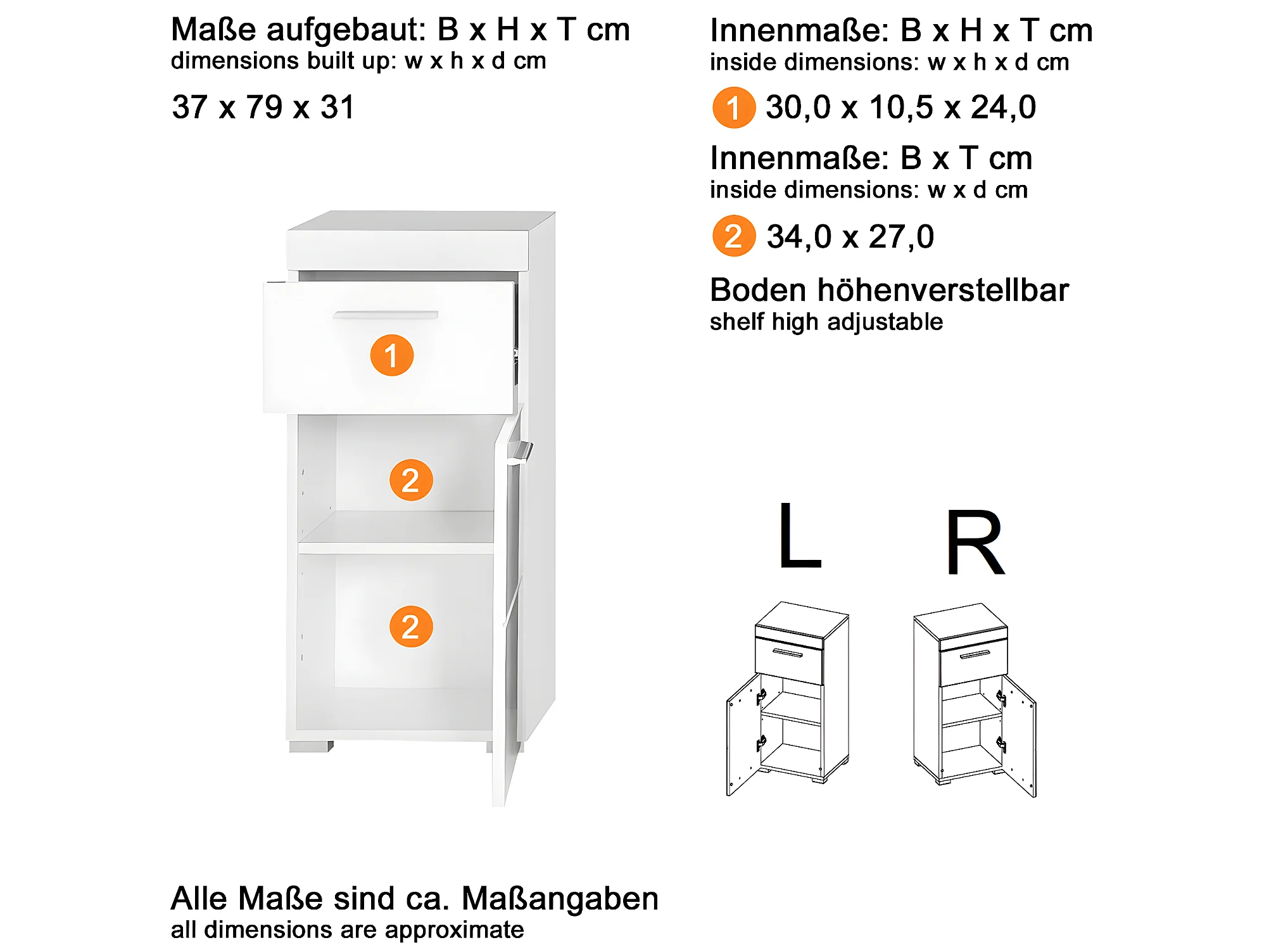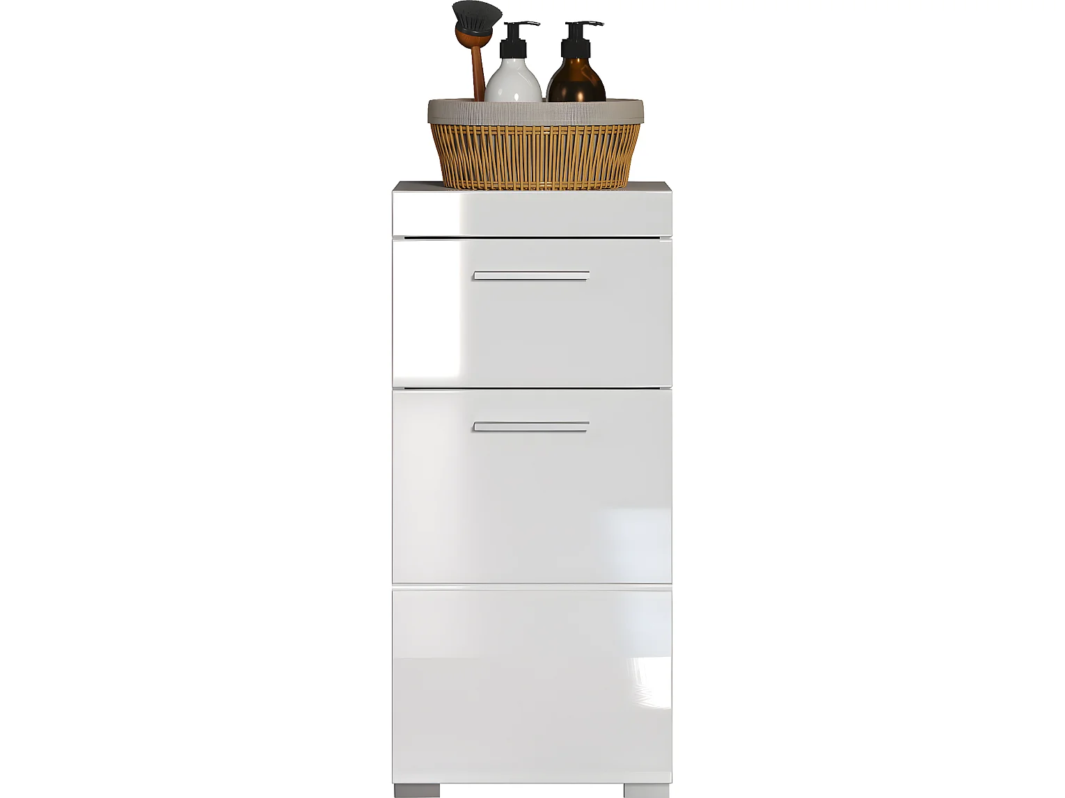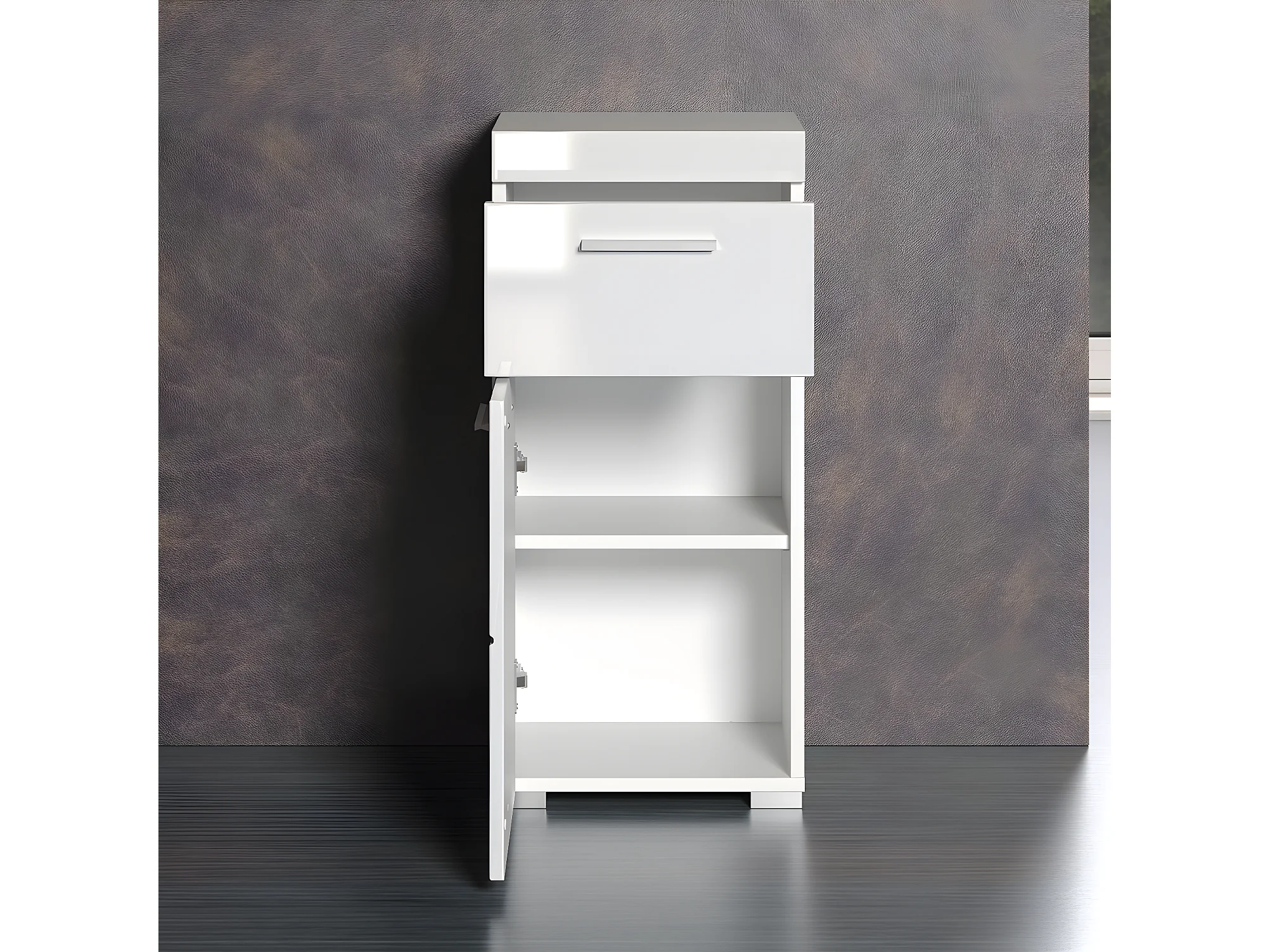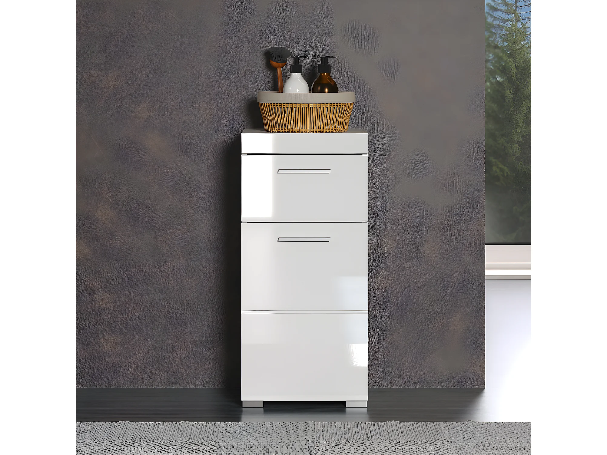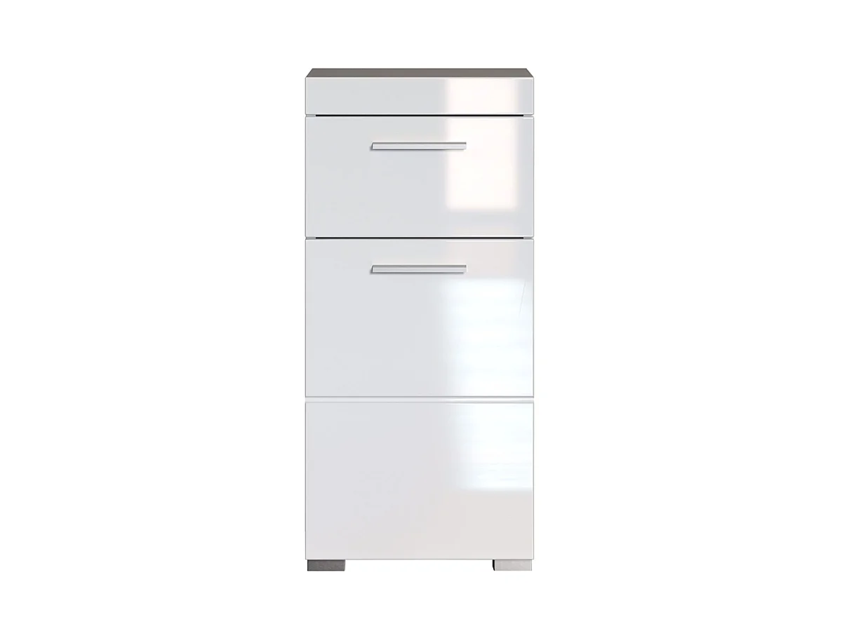 Meuble bas de salle de bain coloris blanc mat et blanc brillant - L. 37 x H. 79 x P. 31 cm
