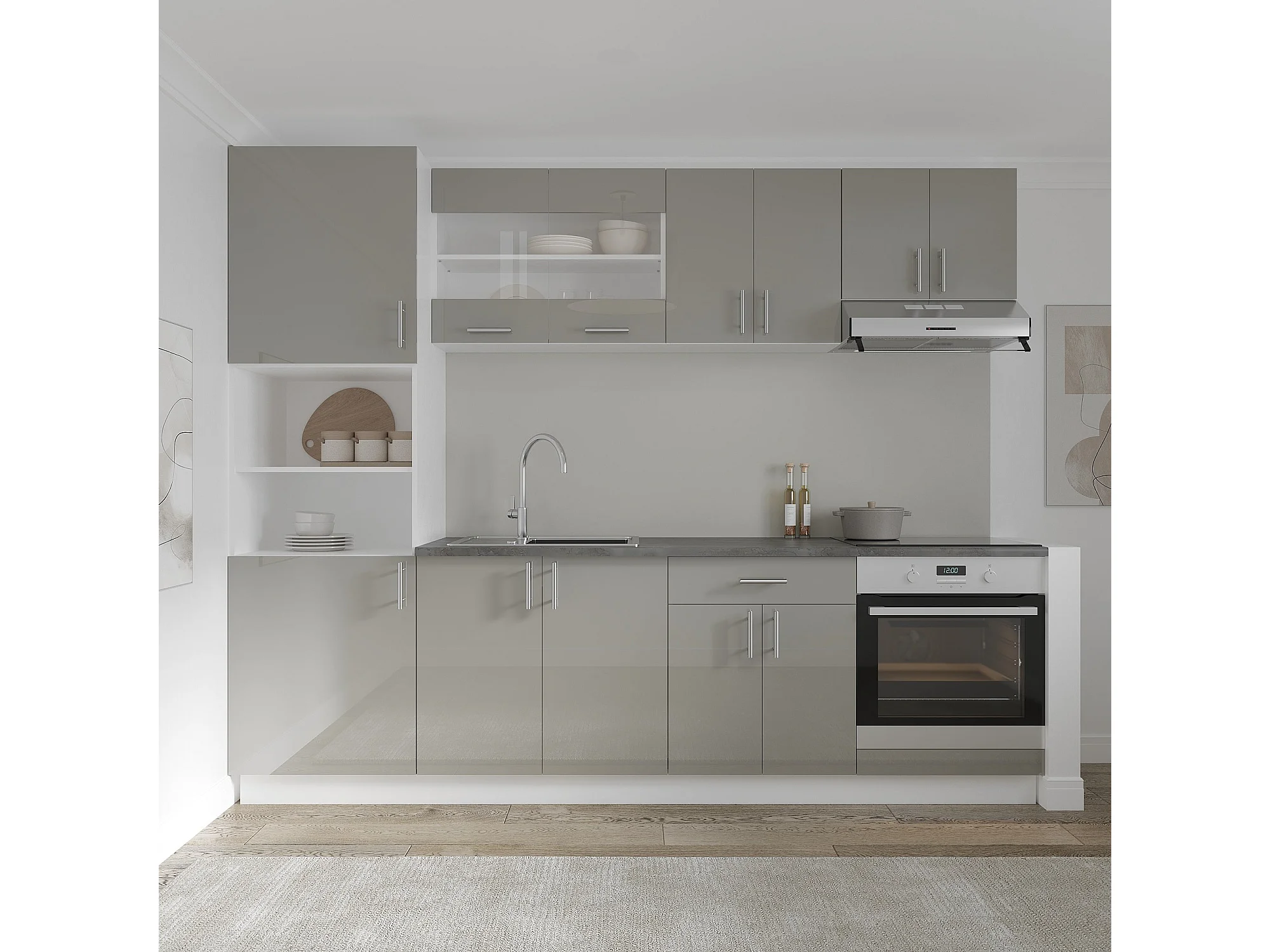 Meuble sous-évier haaus Karo, 2 portes, Gris Brillant/Blanc, MDF, 80 x 50 x 80 cm