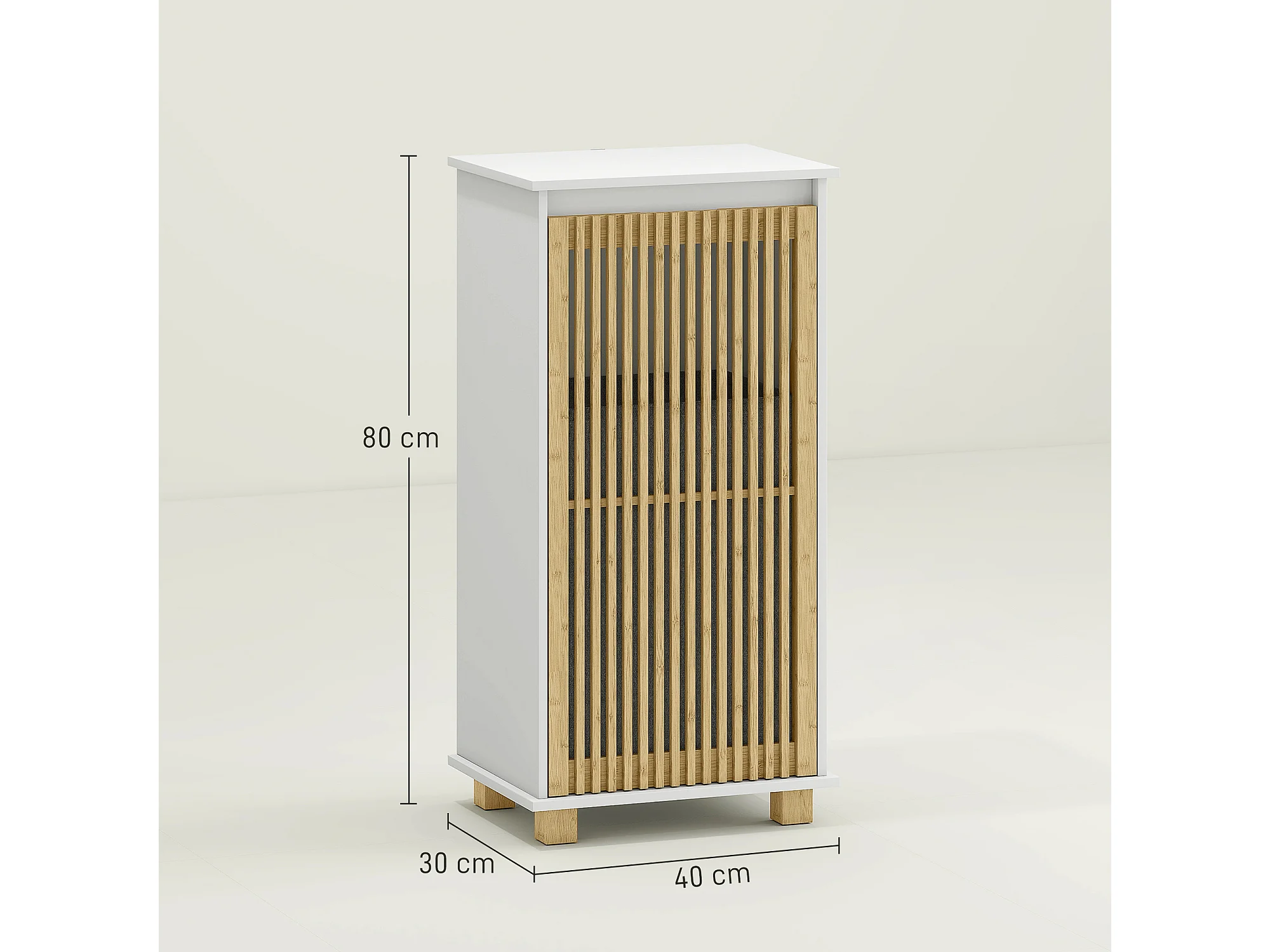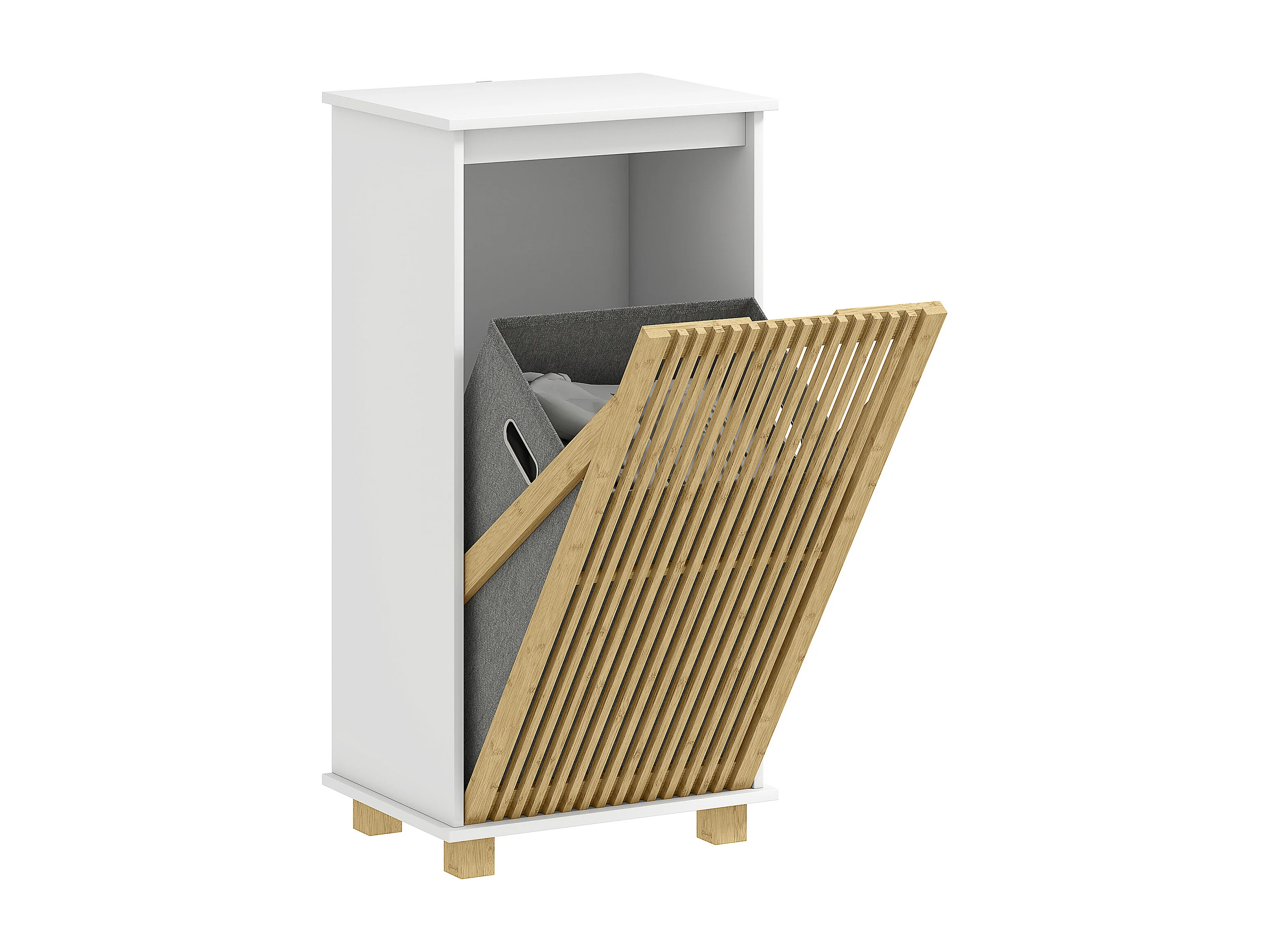 Meuble bas salle de bain - panier à linge amovible - tissu gris bambou blanc