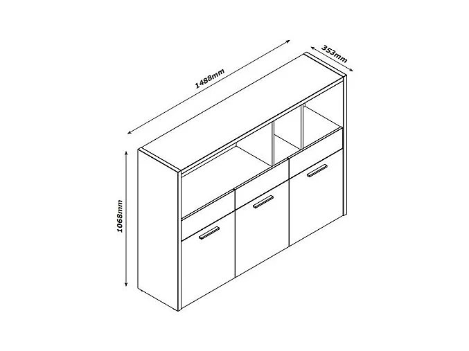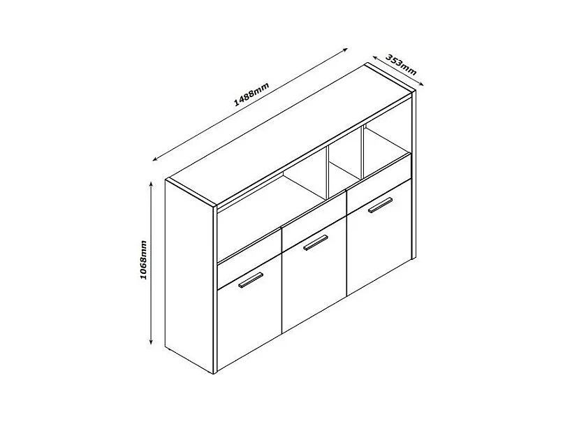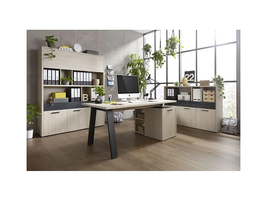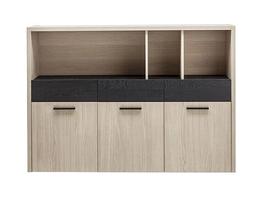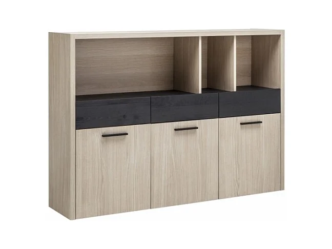 Bibliothèque 3 portes 3 tiroirs décor chêne clair et noir – LEONARDO