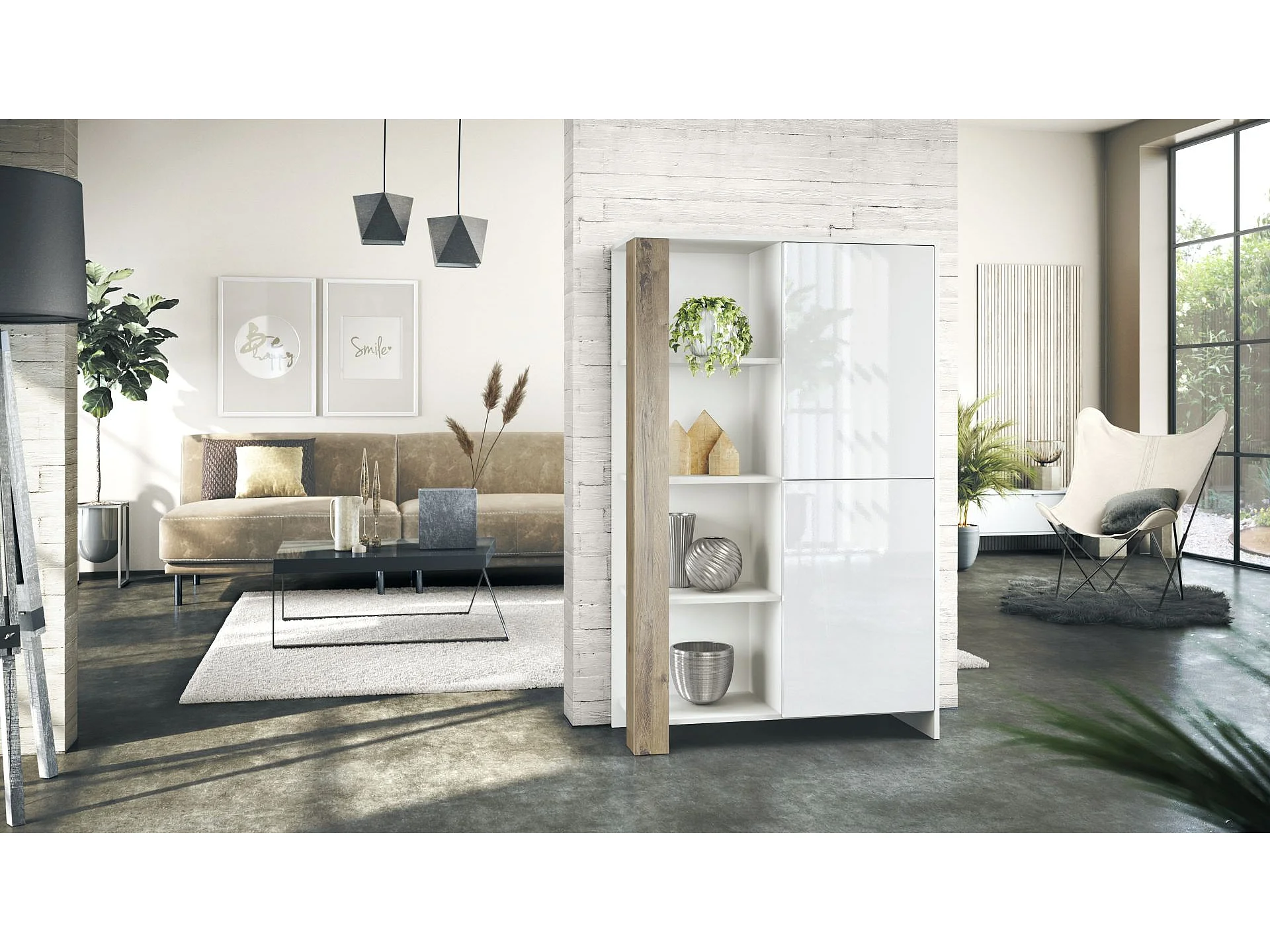 Meuble Blanc Mat Et Aspect Chêne Ribbeck Portes Laquées (lxhxp) : 95 X 151,5 X 36 Cm