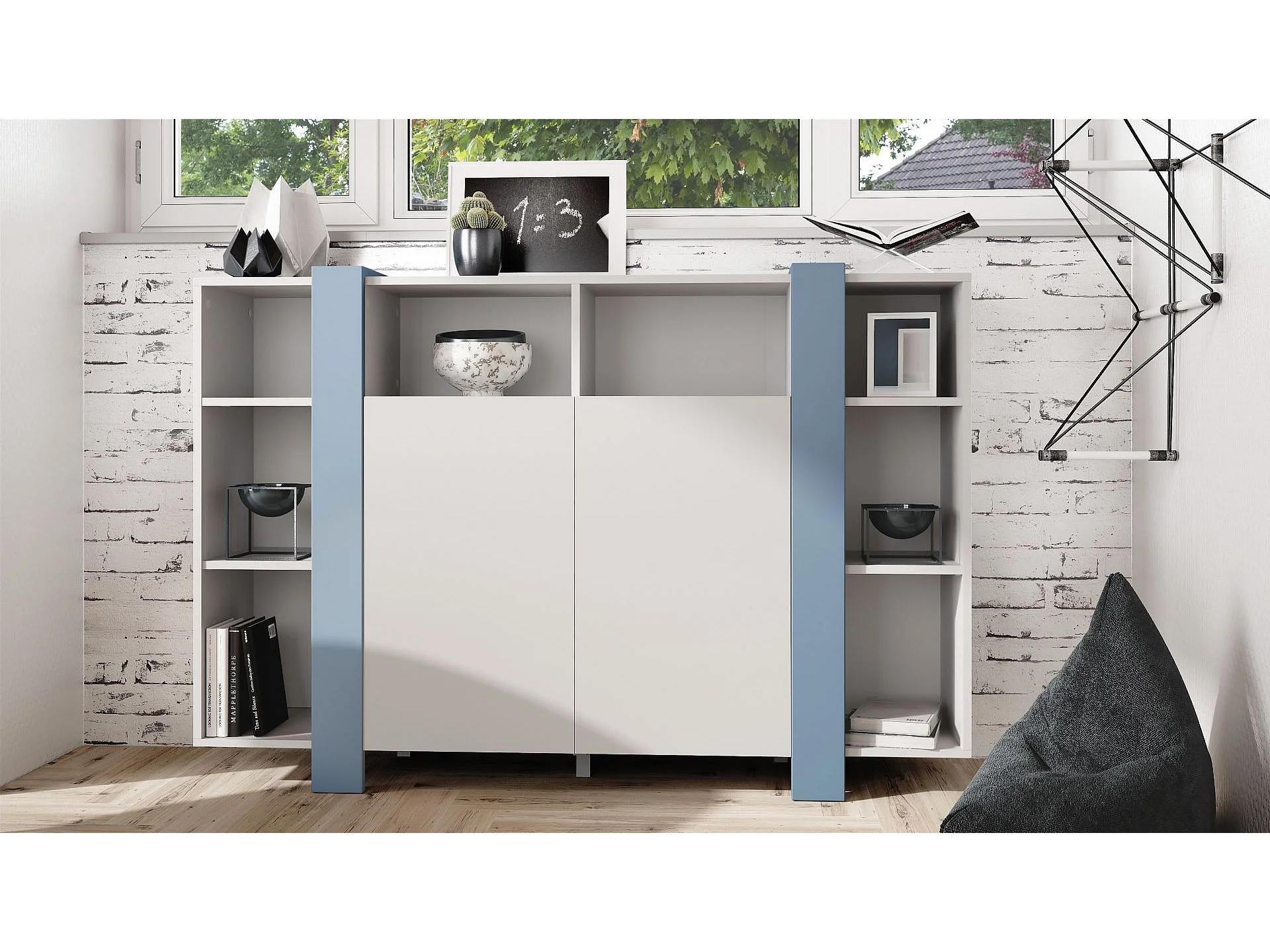 Meuble Blanc Mat Et Denim (lxhxp) : 149 X 101 X 34 Cm