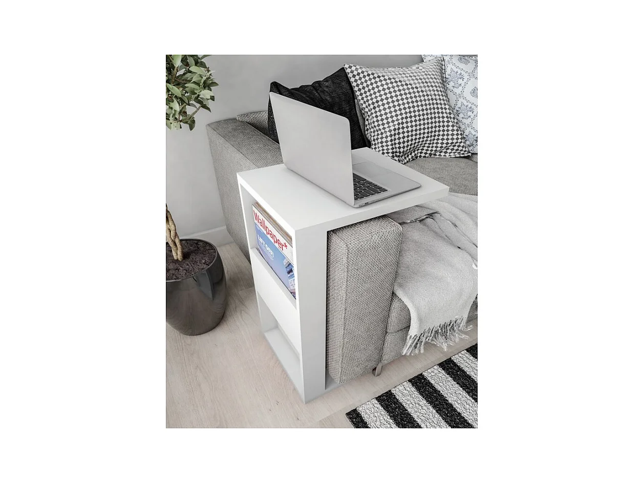 Meuble Bout de Canapé Blanc 2 Niches L 36 H 68 P 38.5 cm