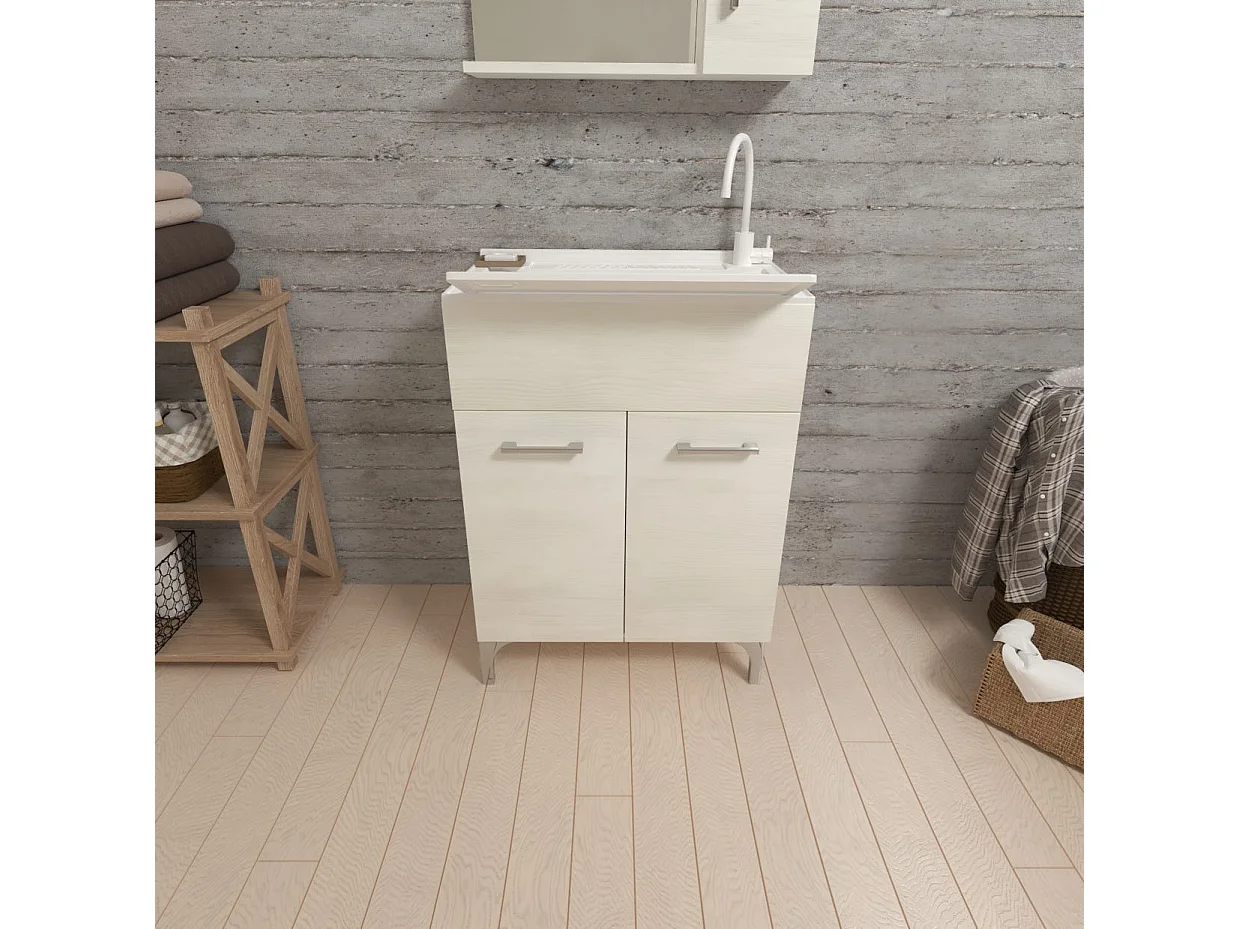 Meuble Buanderie Avec Lavoir 60Cm Avec Portes En Chêne Blanc | Pratico