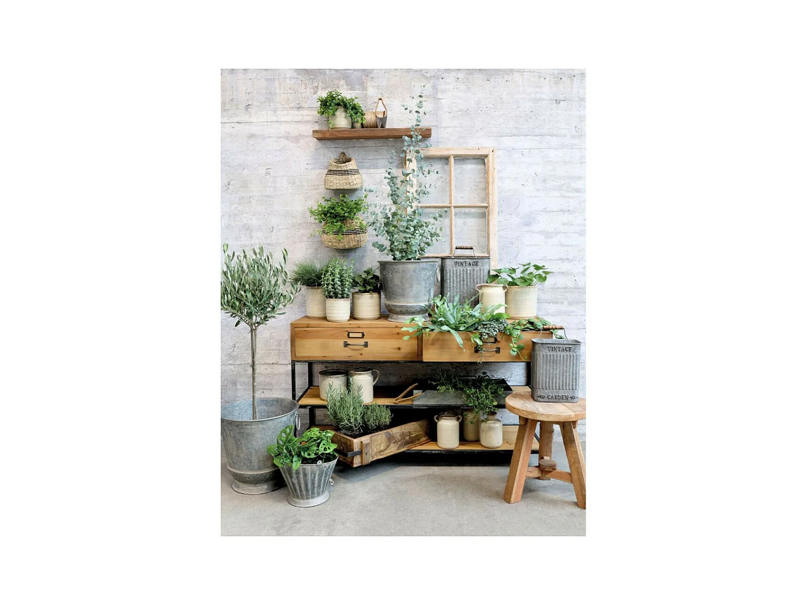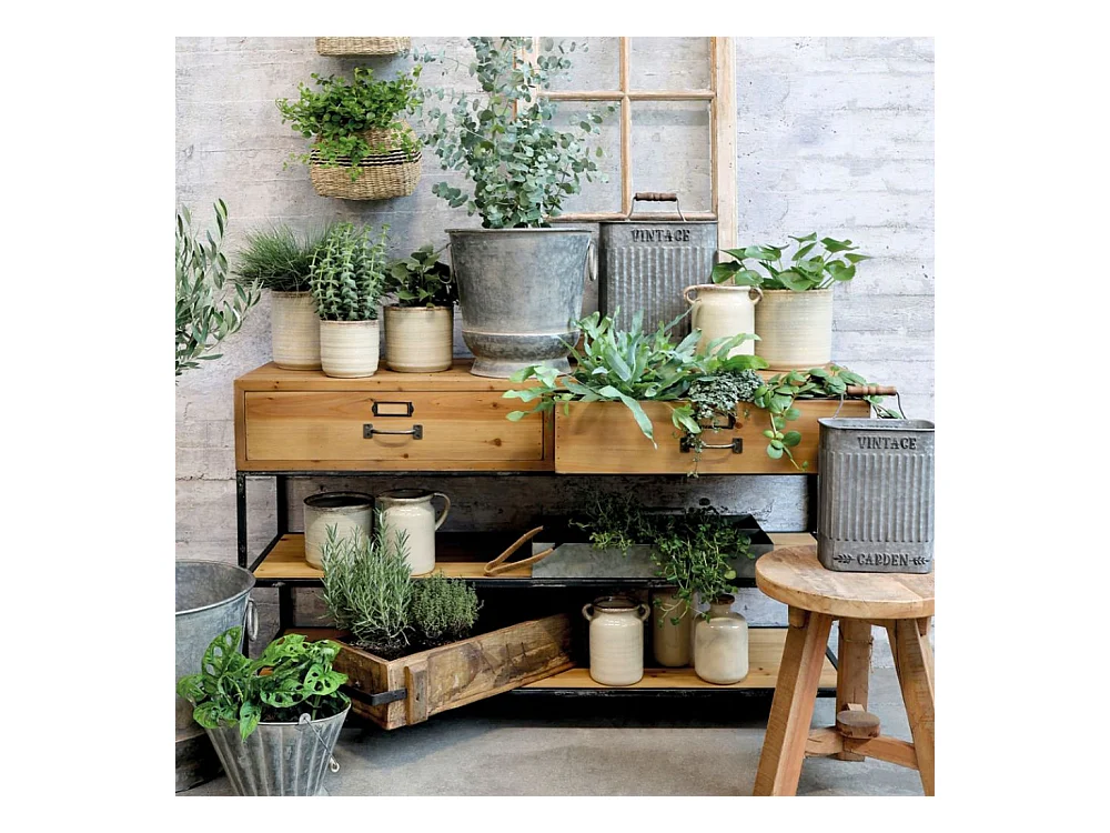 Meuble buffet en bois de sapin marron et fer noir 124 x 42 x 72 cm