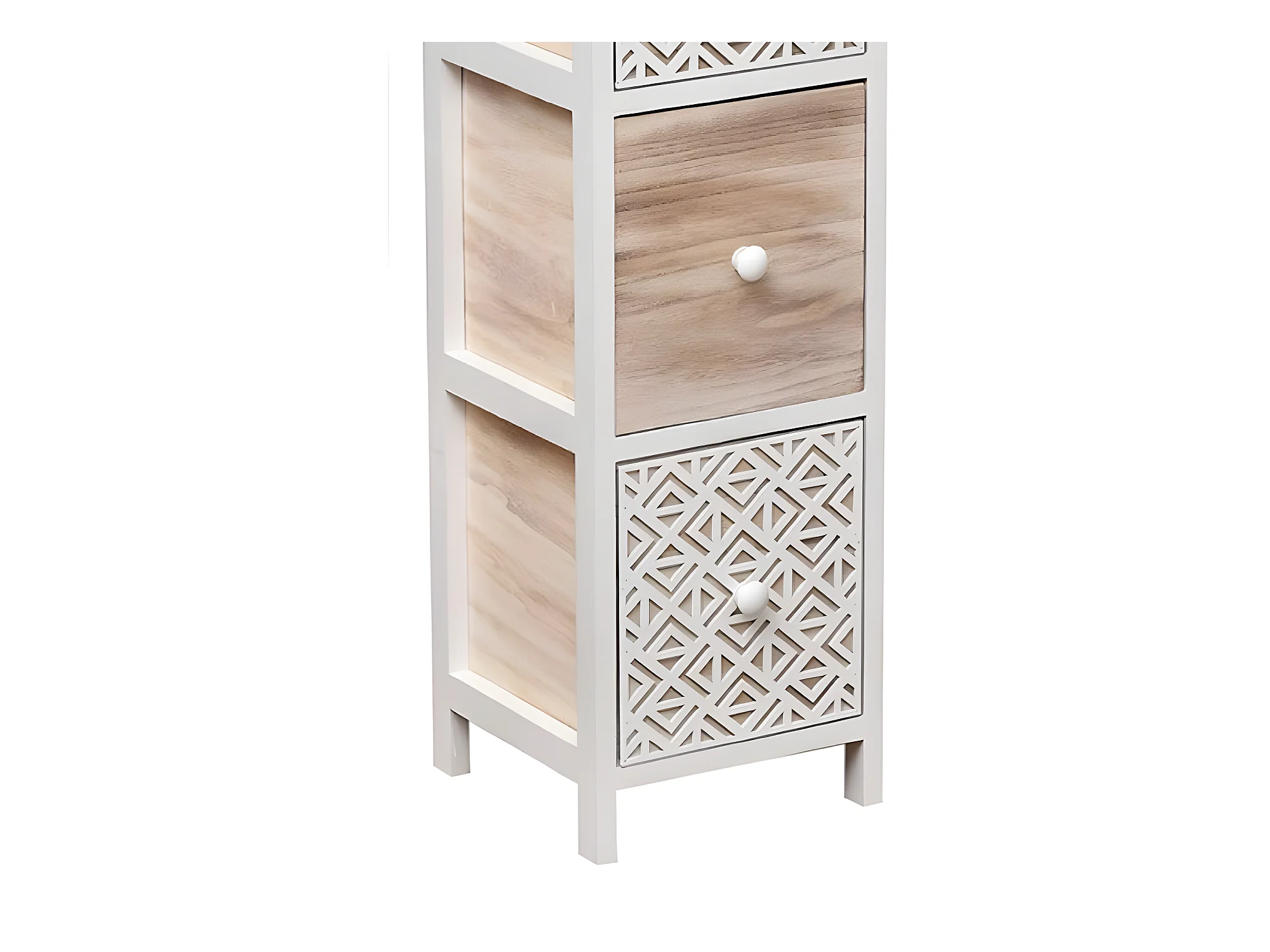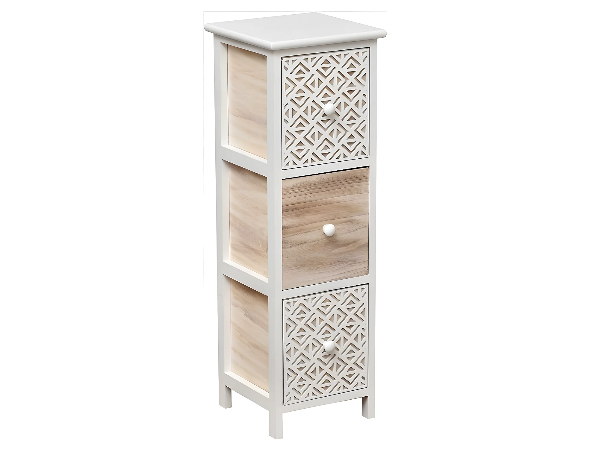 Meuble carré 3 tiroirs Séri bois blanc et décor