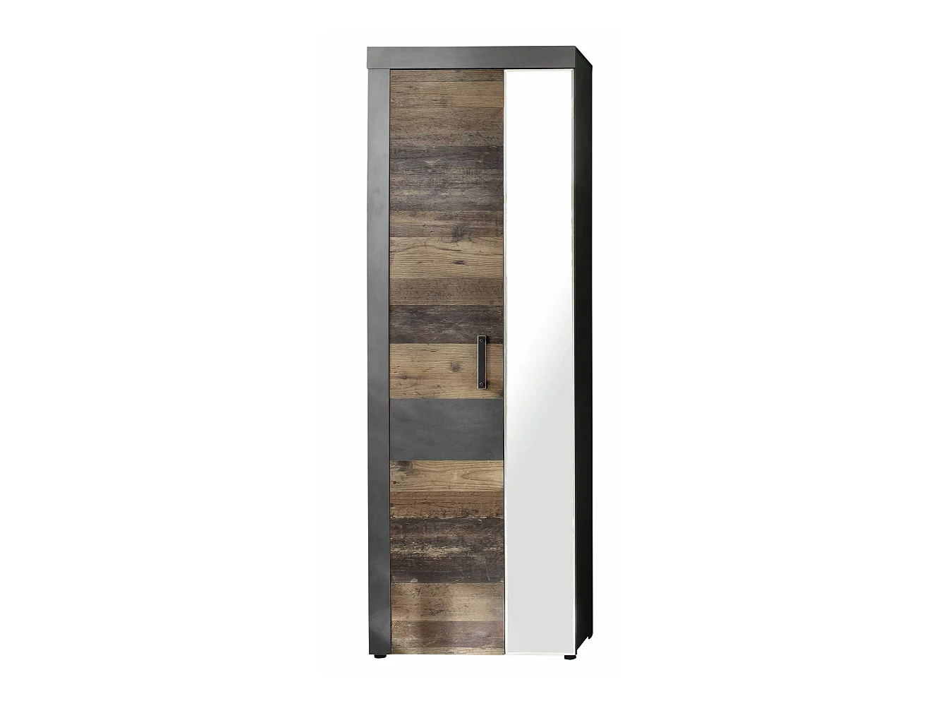 Meuble chambre. Armoire-penderie avec miroir en mélaminé coloris bois effet vielli finition gris ciment . L - H - P : 65 - 192 - 34 cm