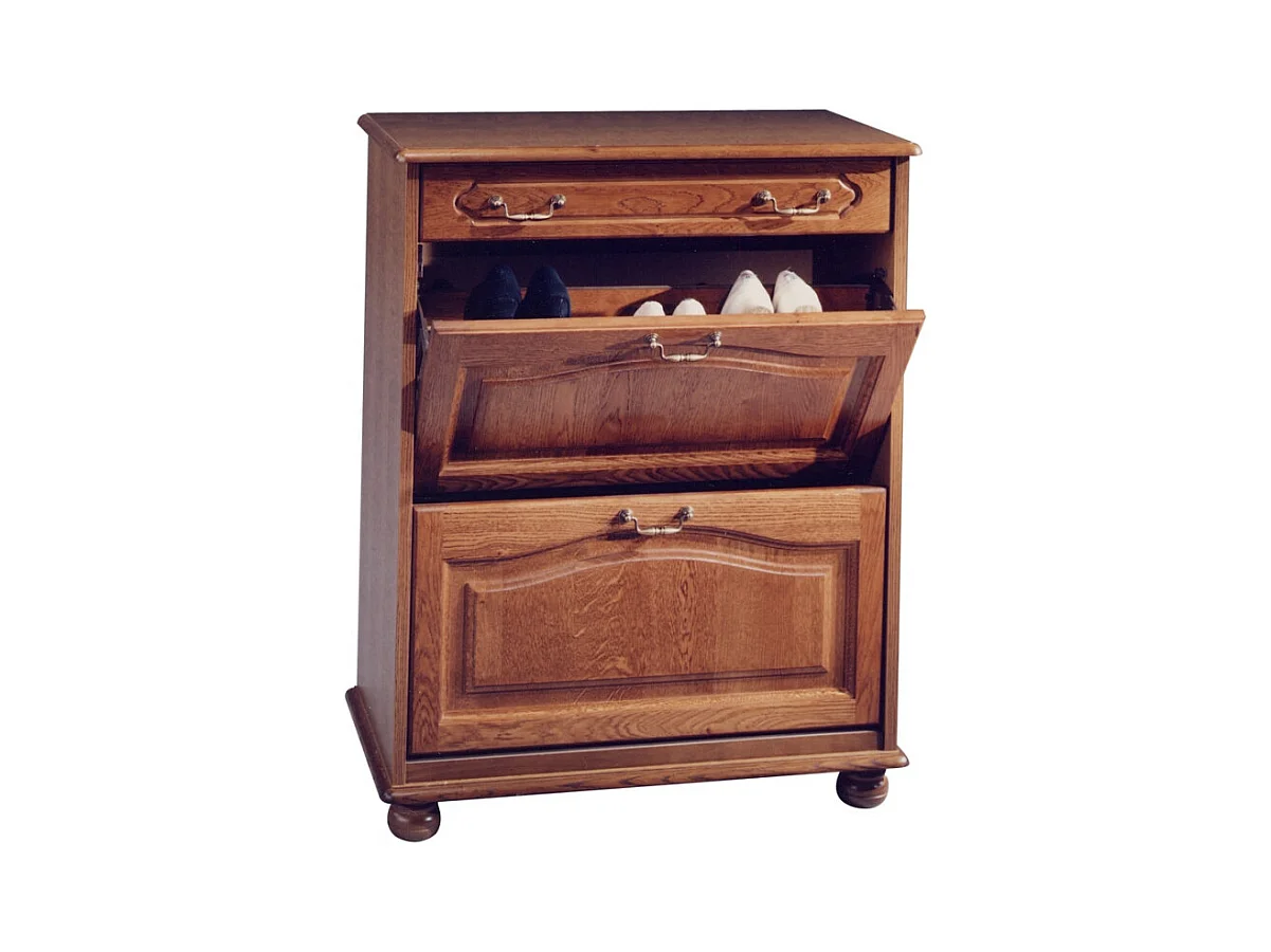 Meuble Chaussures Chêne 2 Abattants 1 Tiroir 24 Paires L 82.4 H 102.9 P 41 cm