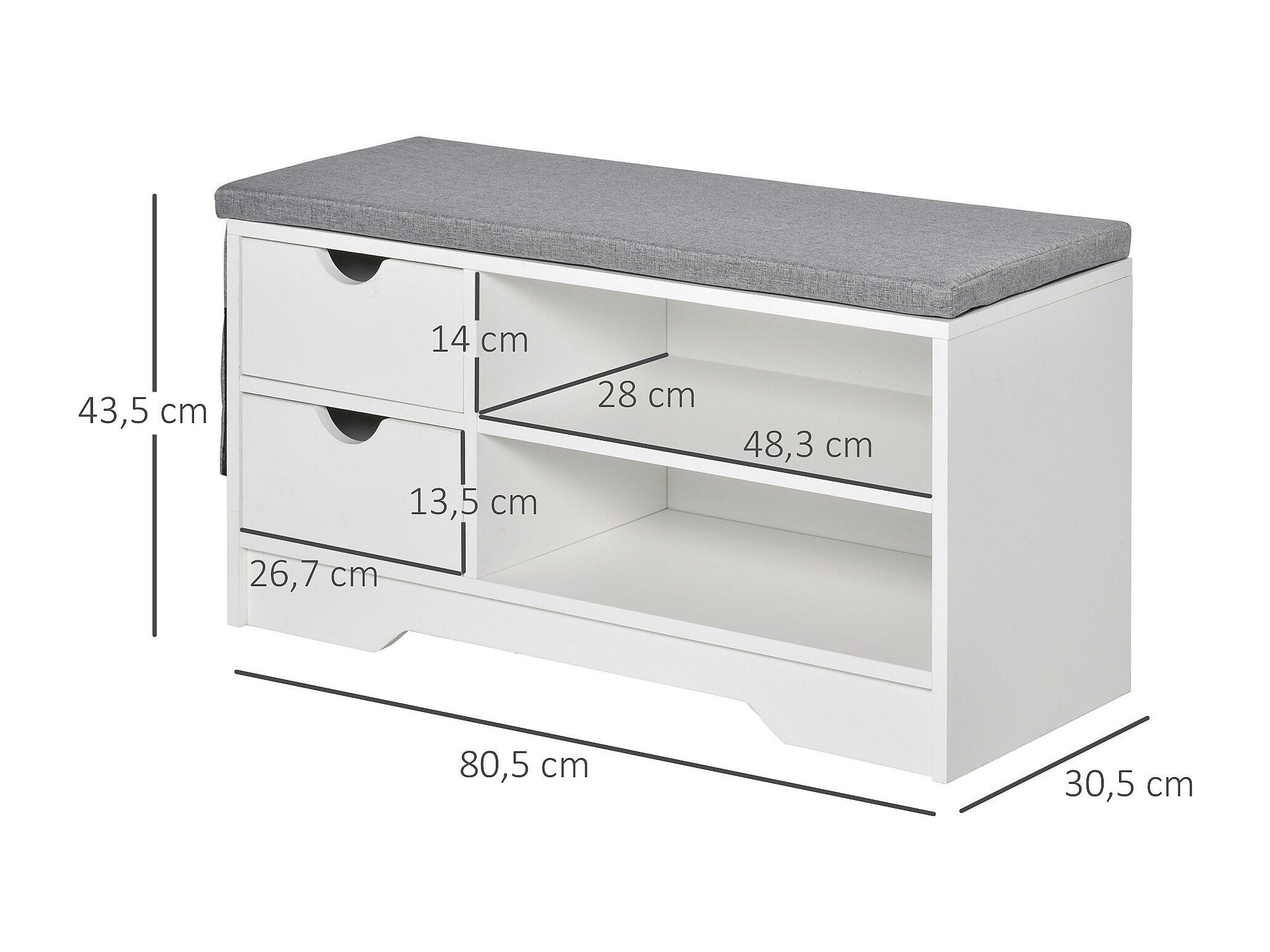 Meuble chaussures et banc à chaussures avec coussin gris 2 étagères et 2 tiroirs MDF 80,5 x 30,5 x 43,5 cm gris et blanc