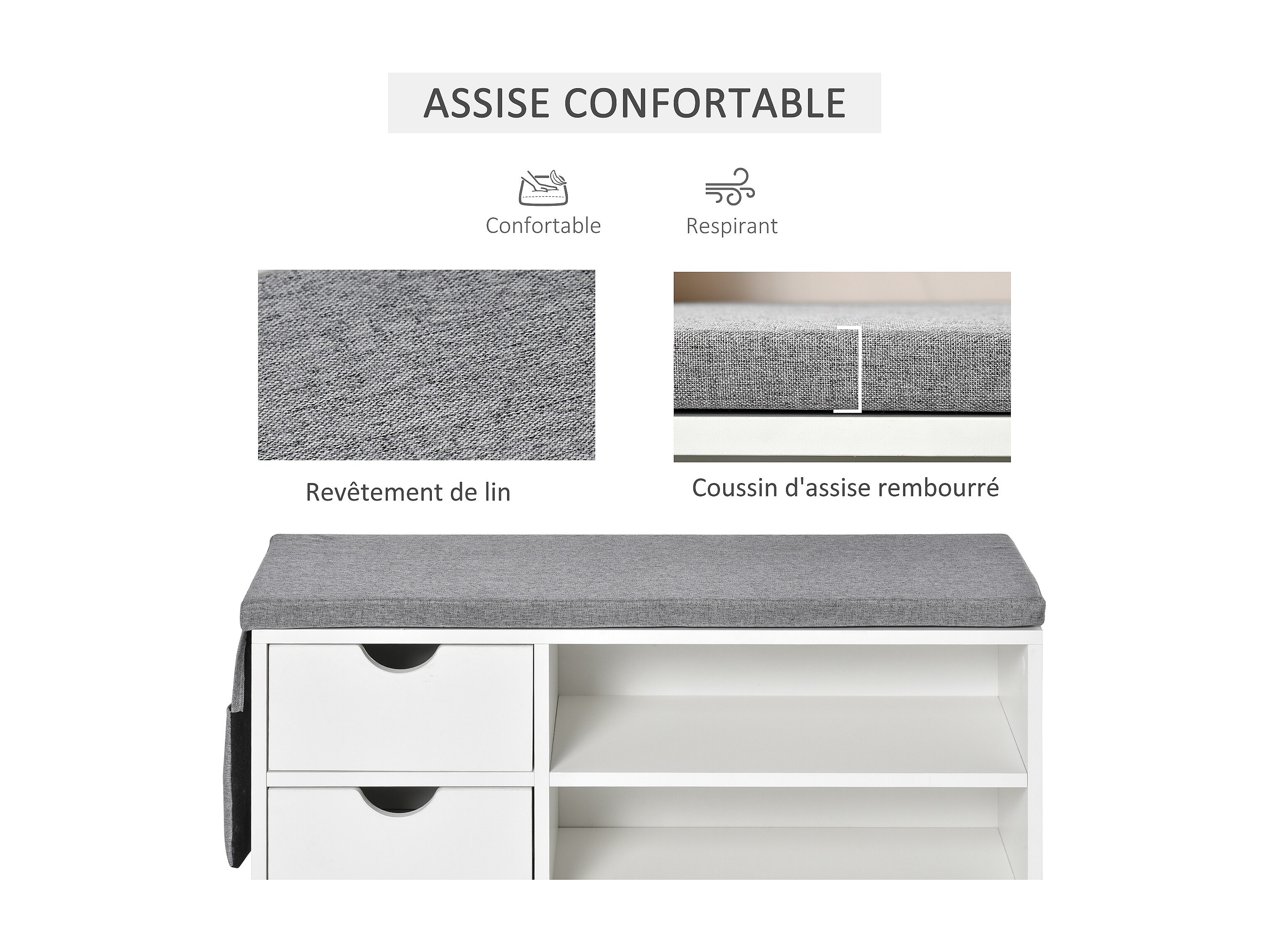 Meuble chaussures banc à chaussures 2 niveaux rangement, niche, tiroir, coffre intégré avec coussin gris blanc
