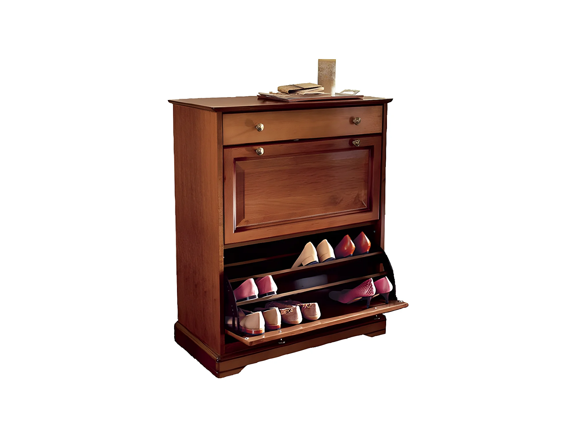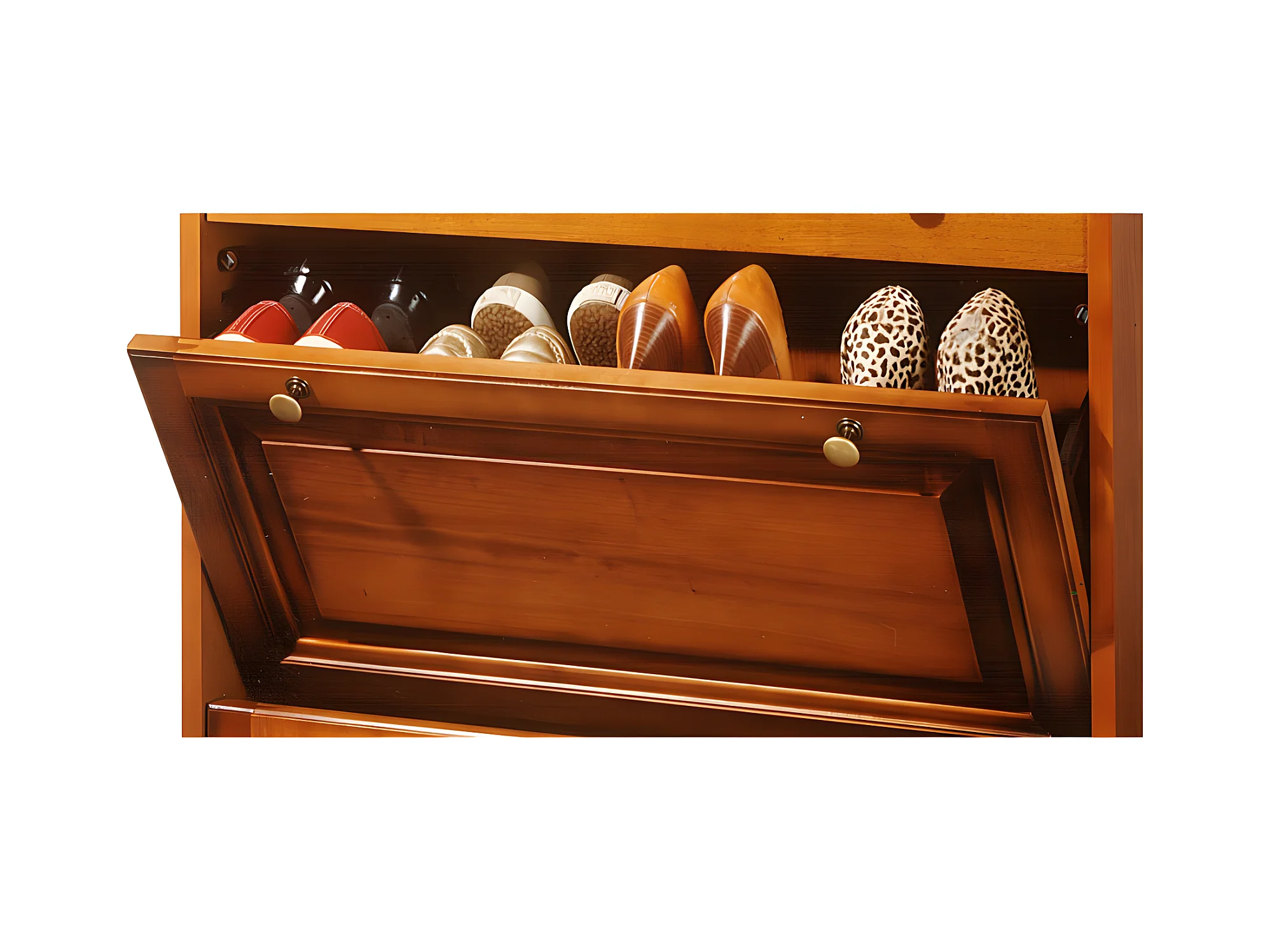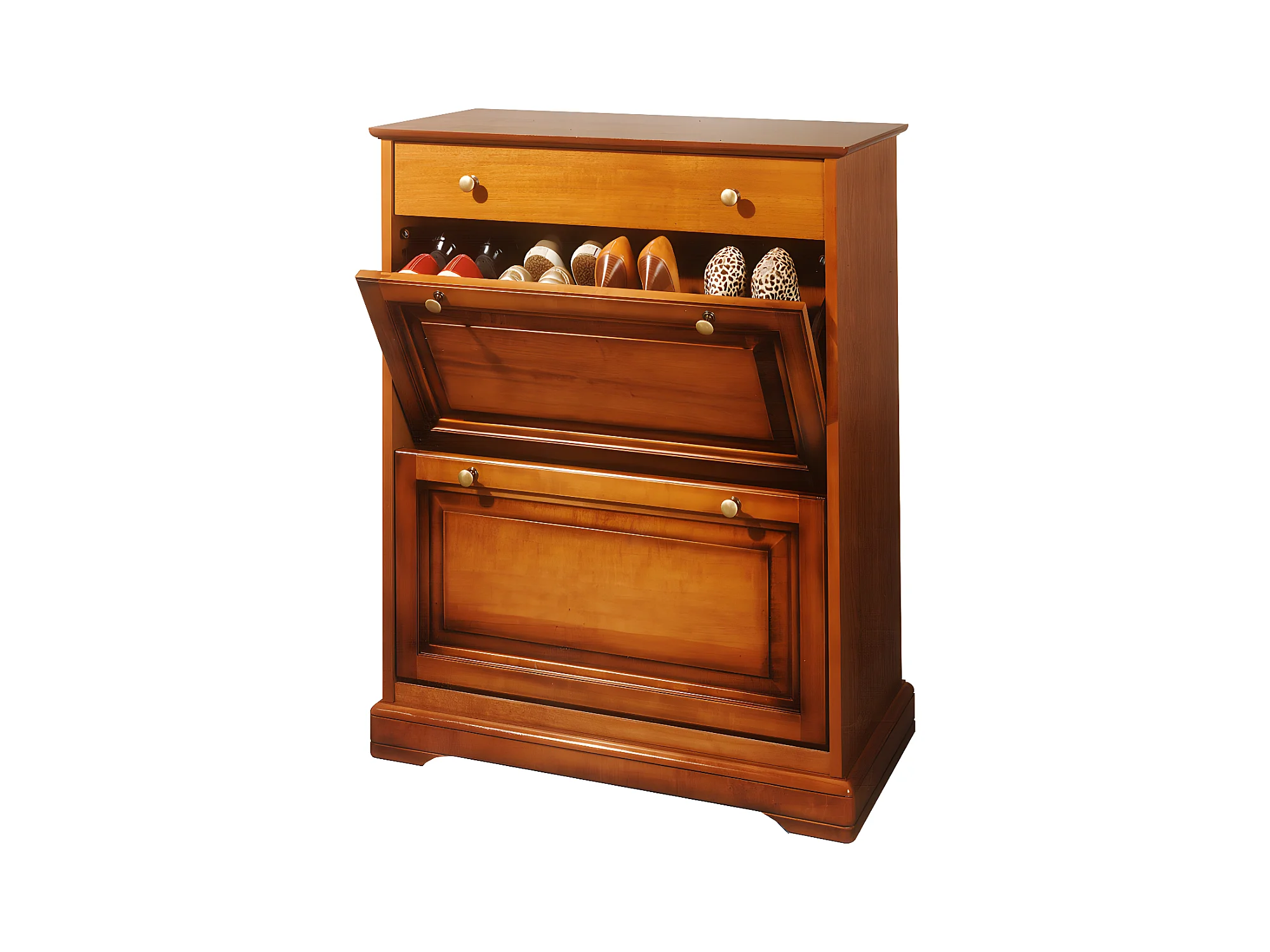Meuble Chaussures Merisier 24 Paires 2 Abattants 1 Tiroir L 82.4 H 102.9 P 41 cm