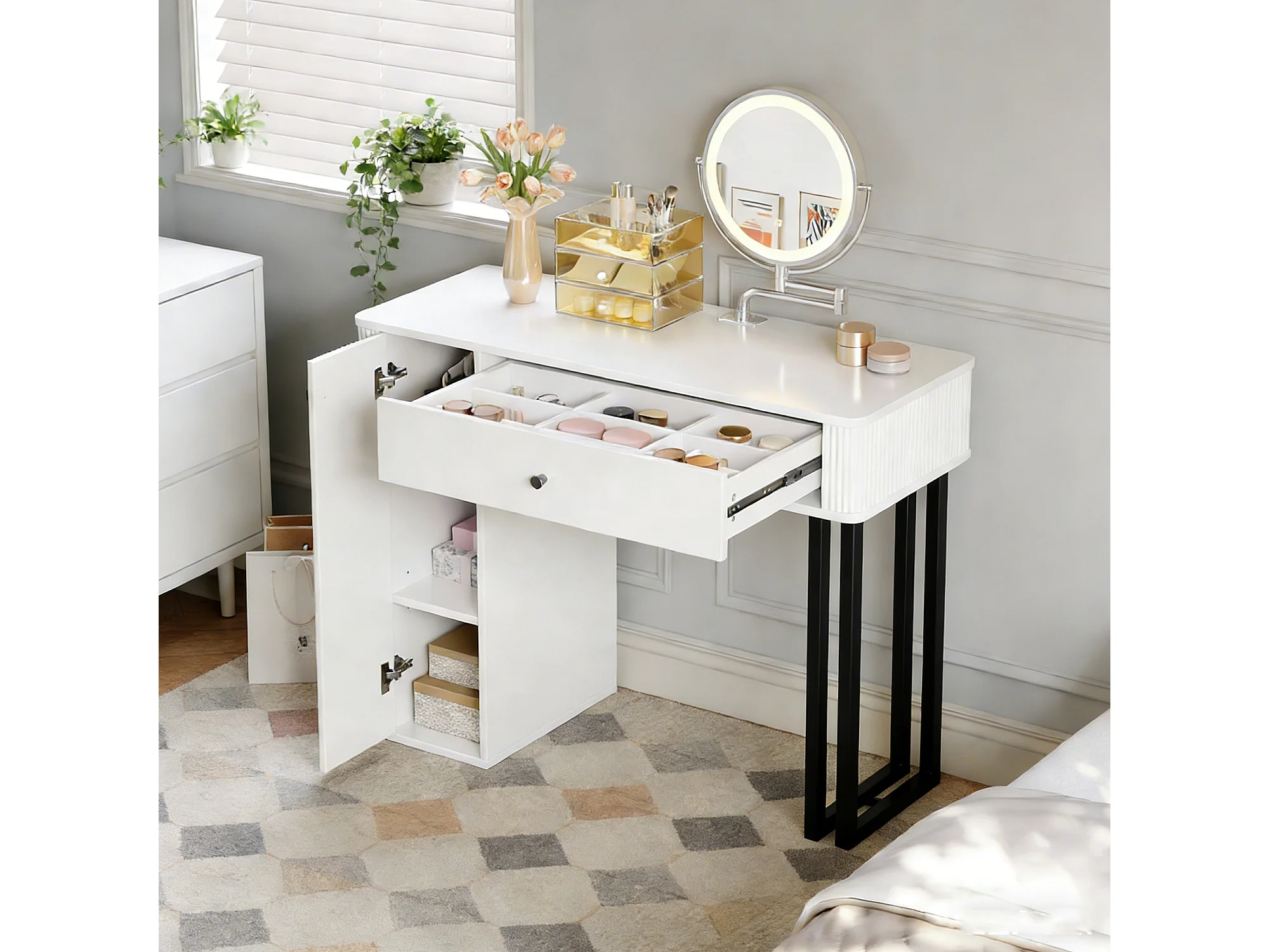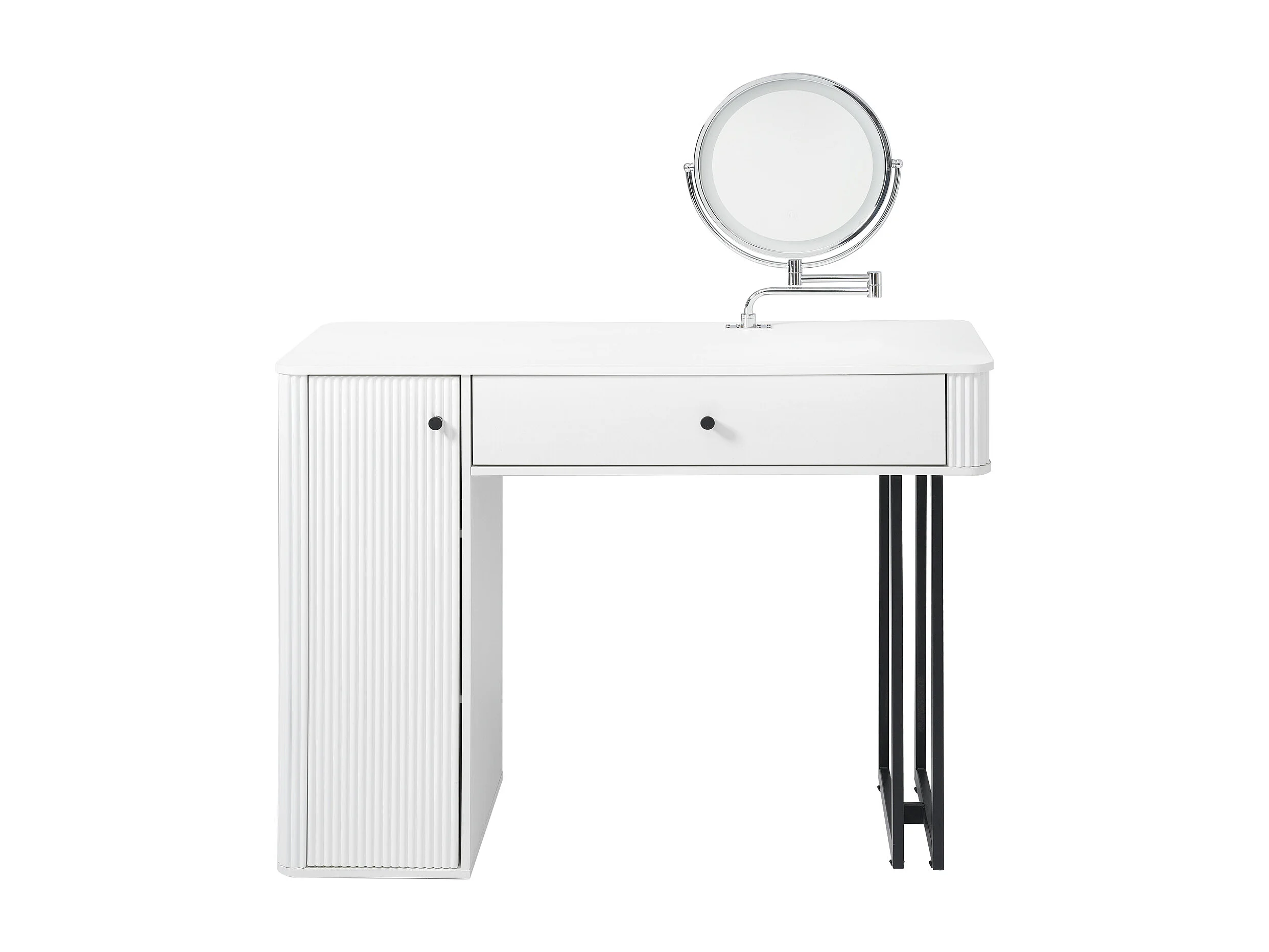 Meuble coiffeuse avec LED - Ensemble coiffeuse avec miroir - 9 tiroirs et 3 étagères - Blanc (sans tabouret)