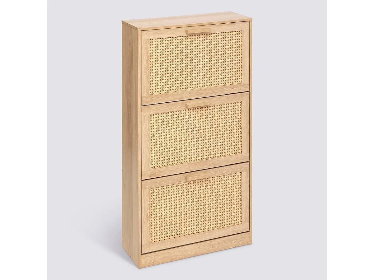 June - Meuble à chaussures 2 portes 1 niche en bois et cannage L80cm - Bois clair