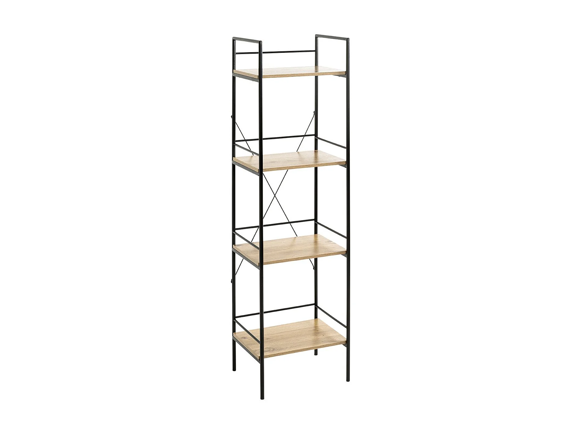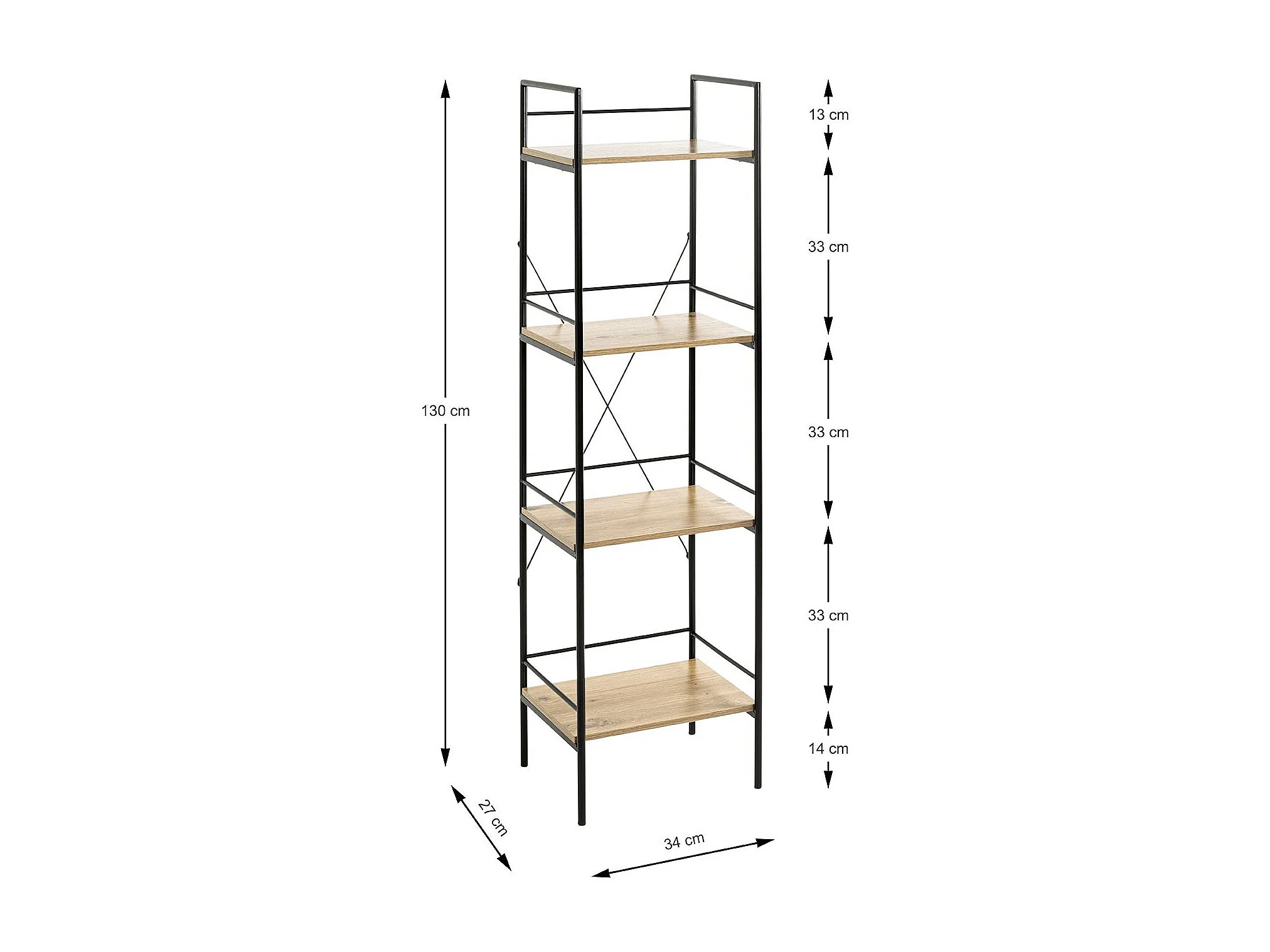Etagère, meuble étagère en bois coloris chêne et métal noir -longueur 74 x profondeur 35 x hauteur 132 cm