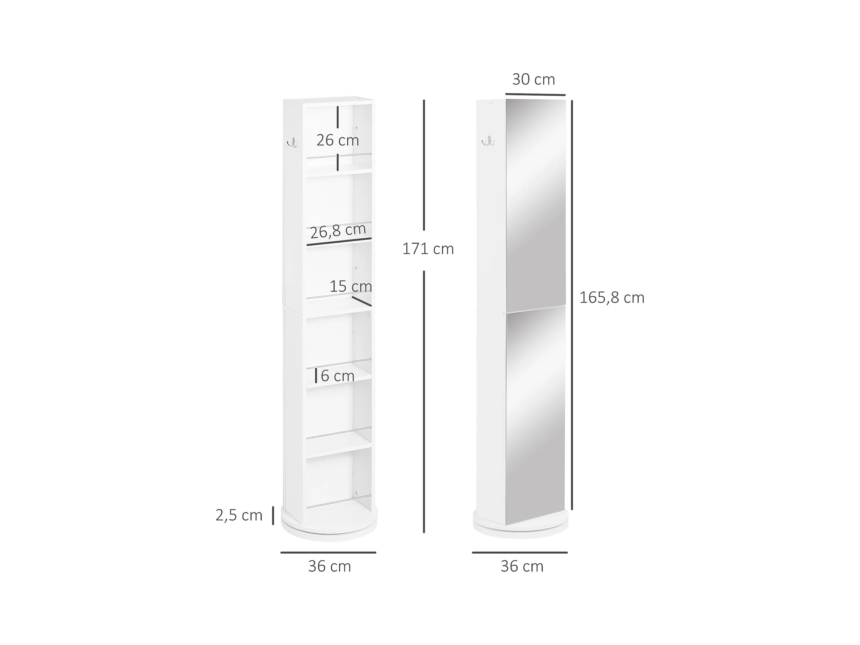 Colonne Pivotante de Salle de Bain 6 Niches 2 Miroirs et 2 Patères H 169.50 cm