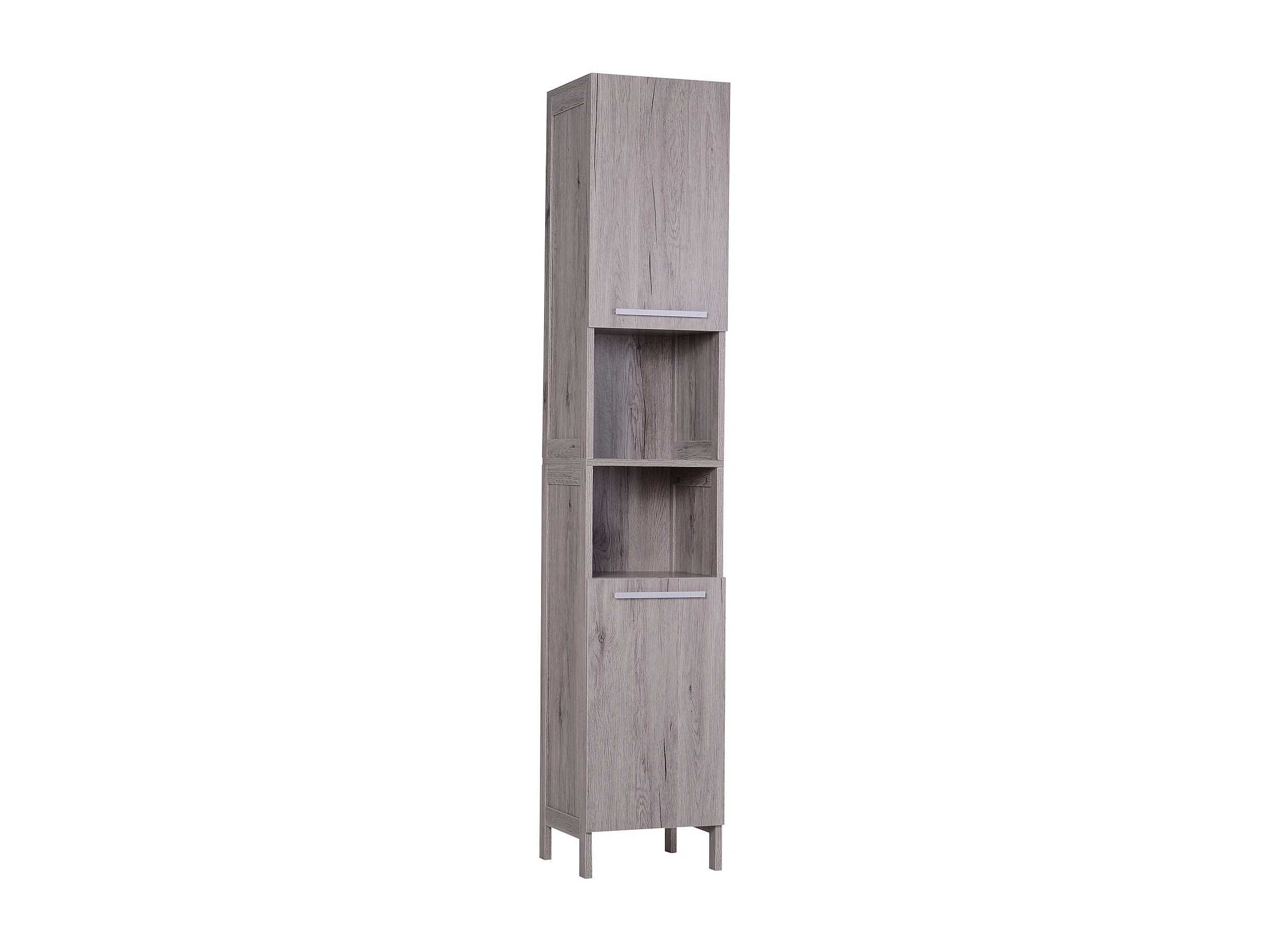 Meuble colonne rangement salle de bain style cosy dim. 30L x 24l x 170H cm 2 portes étagère 2 niches chêne clair gris