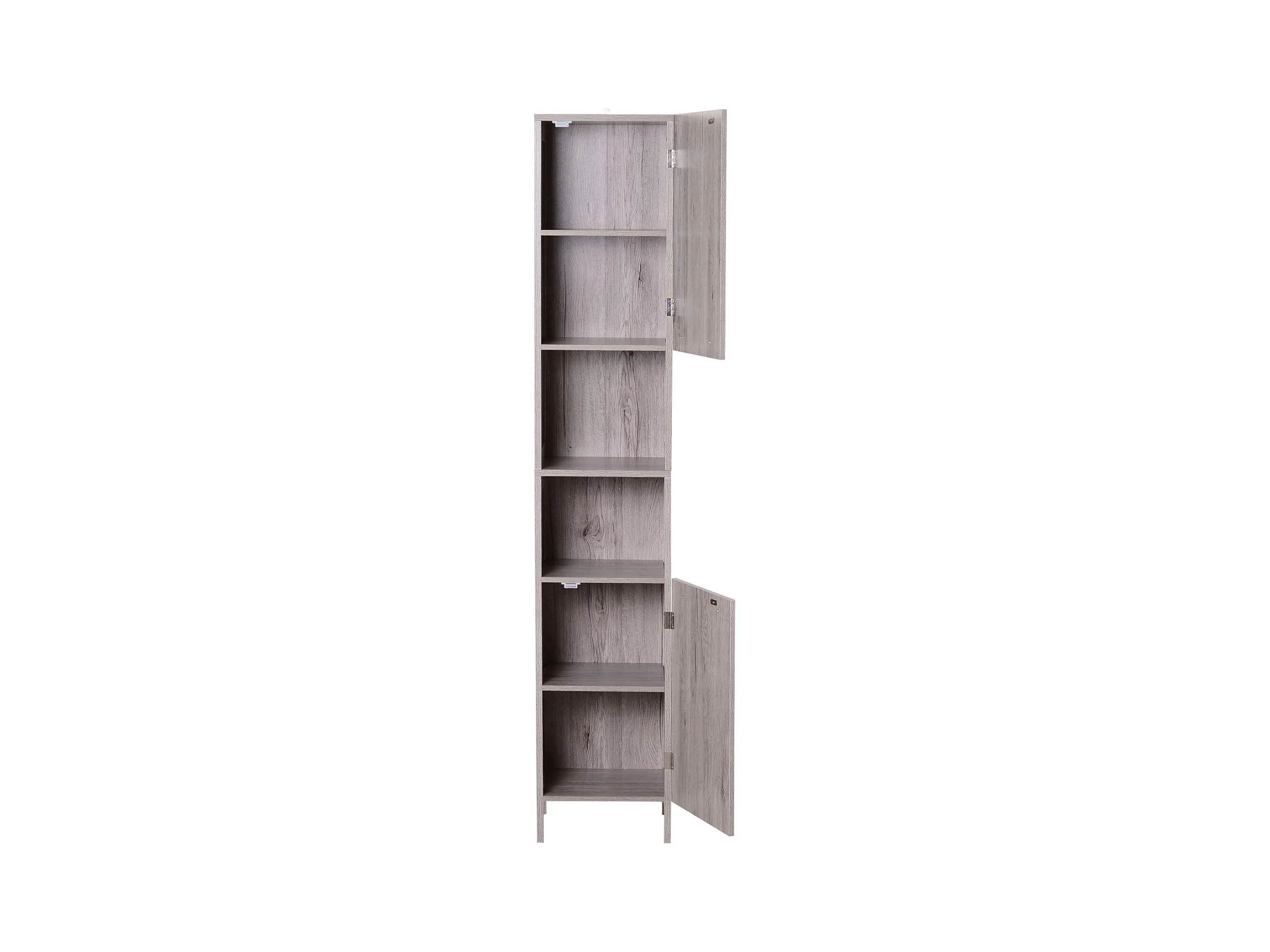 Meuble colonne rangement salle de bain dim. 30L x 32l x 172H cm 2 placards avec étagère + 2 niches MDF imitation bois gris