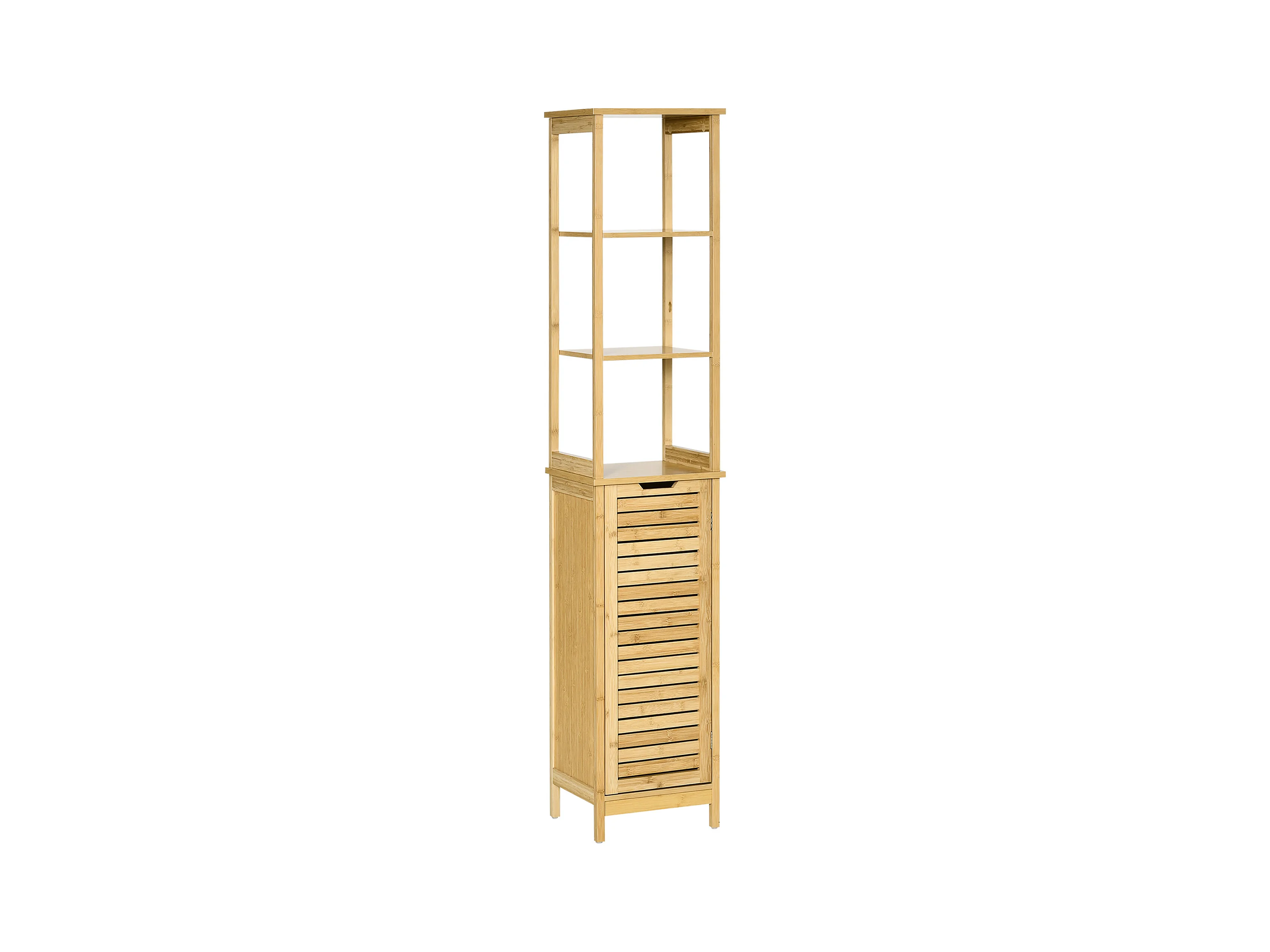 Buffet rangement porte 4 niveaux 3 étagères façade à lattes bois de bambou verni