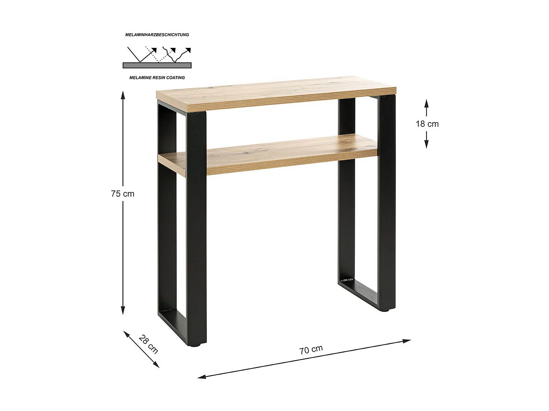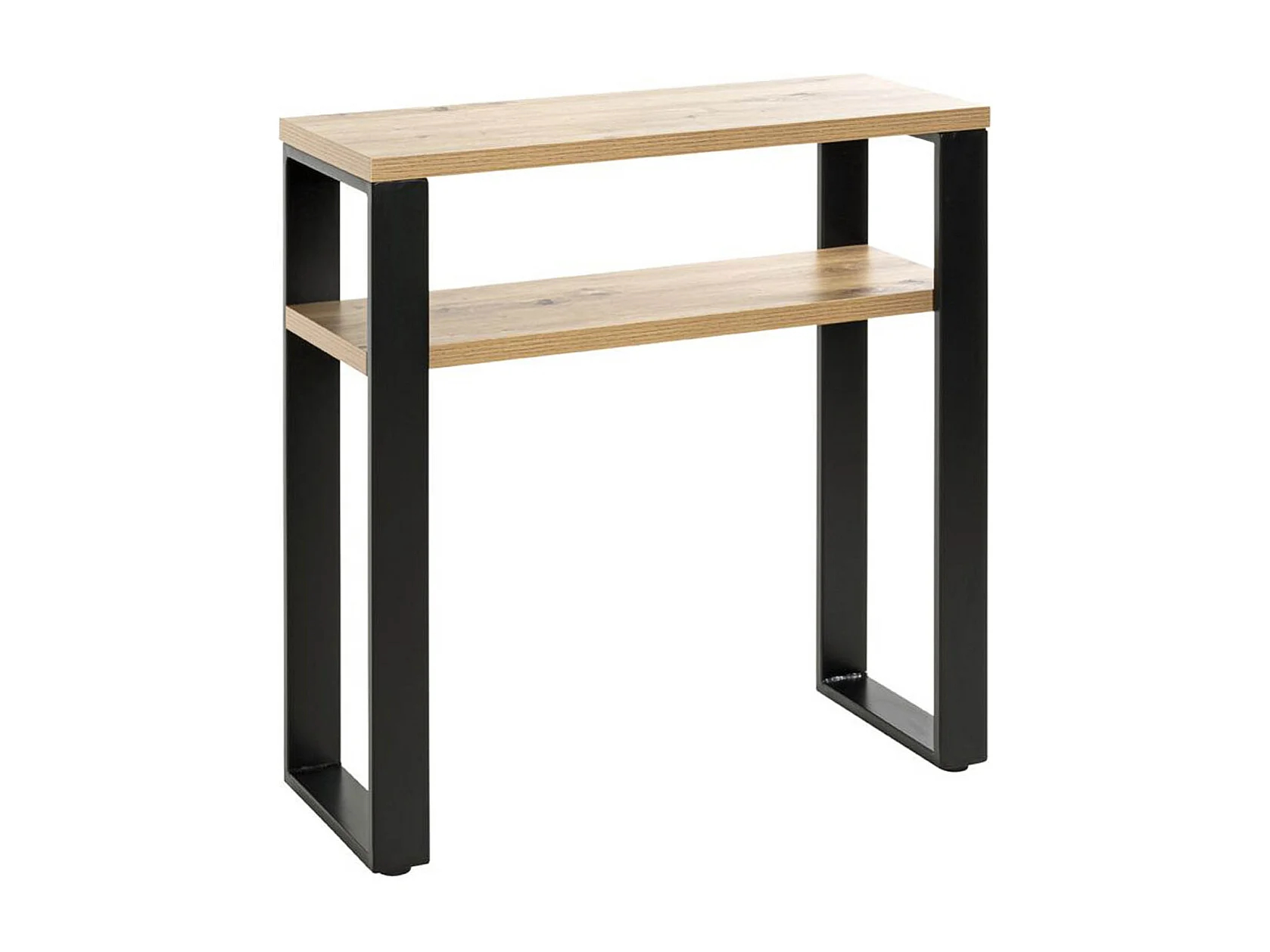 Meuble console, table console en bois coloris chêne et métal noir -longueur 70 x profondeur 28 x hauteur 75 cm