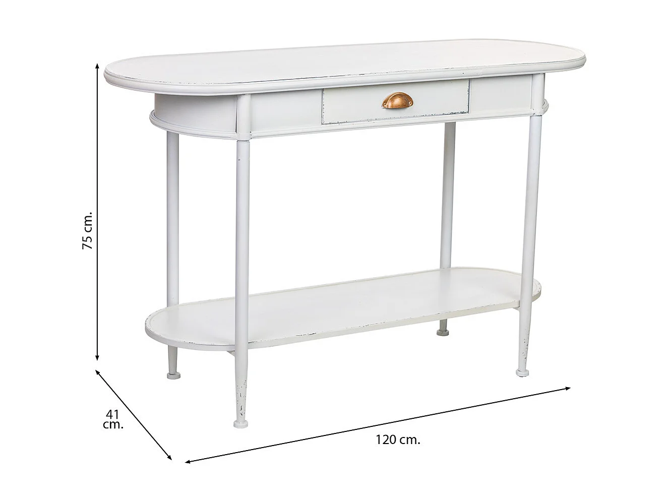 Meuble d'entrée 1 tiroir et 1 étagère en métal blanc 120x41x75h cm