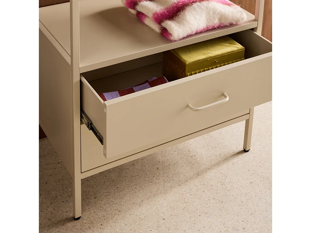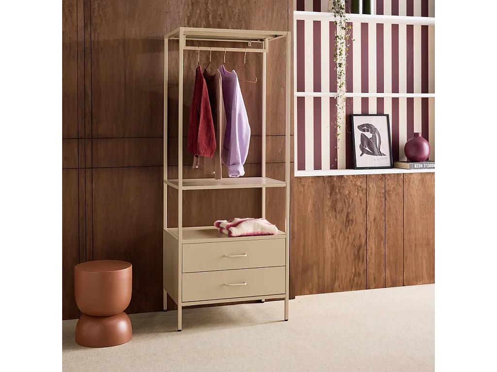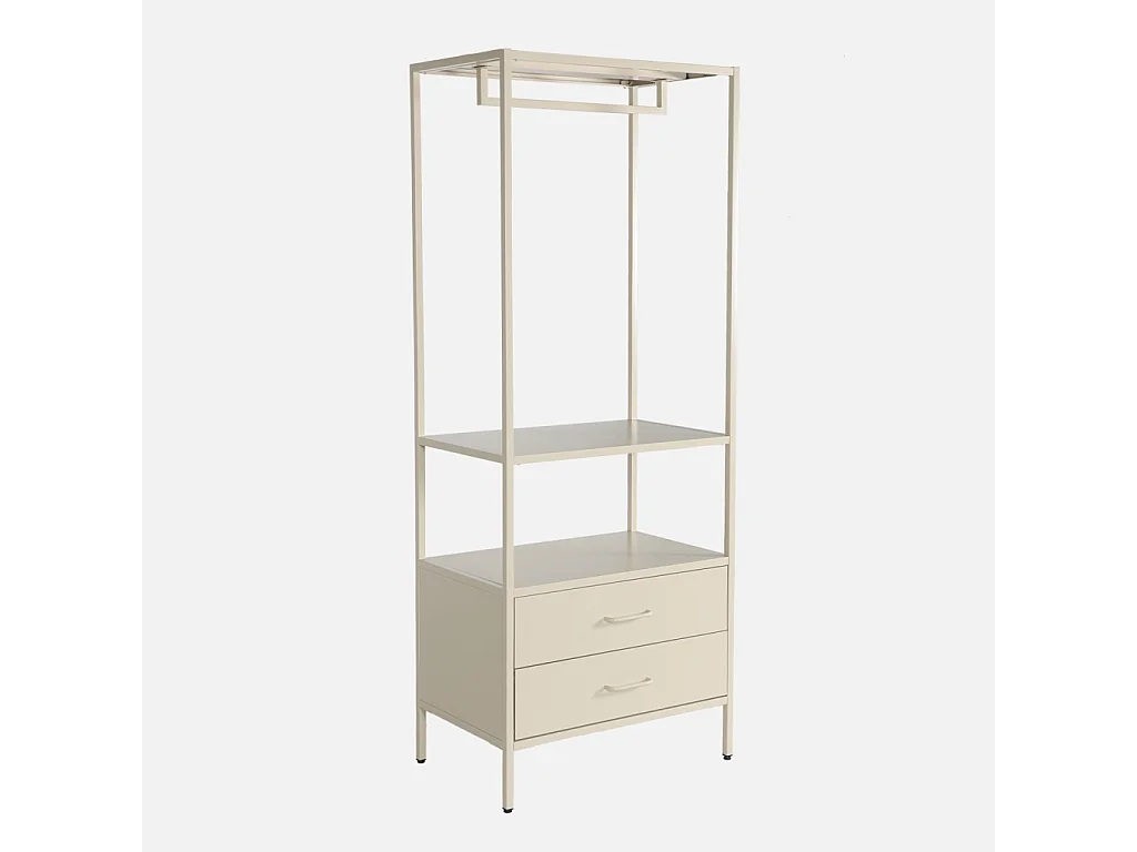Meuble d'entrée. porte manteau métal crème avec penderie et 2 tiroirs. L 70 x P 45 x H 180cm - Idaho