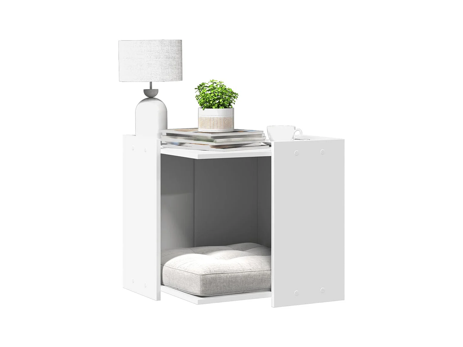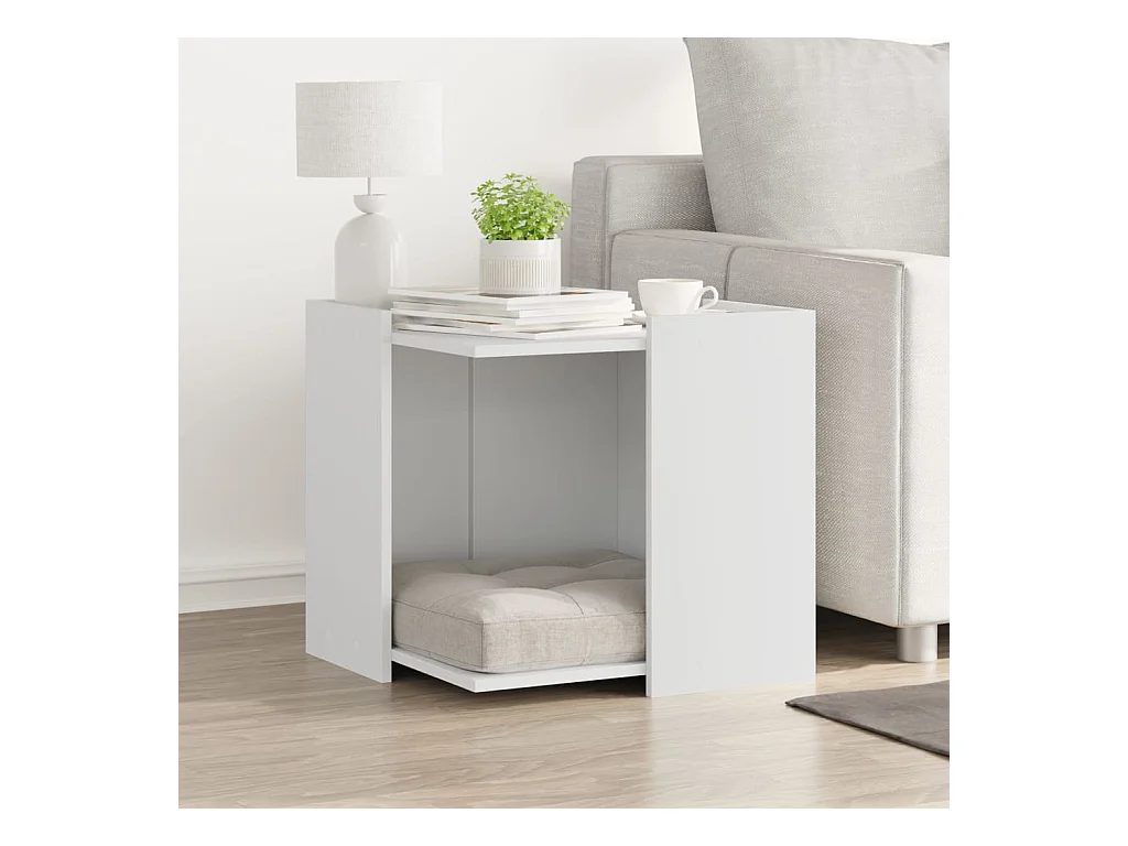 Meuble de bac à litière pour chat blanc bois d'ingénierie