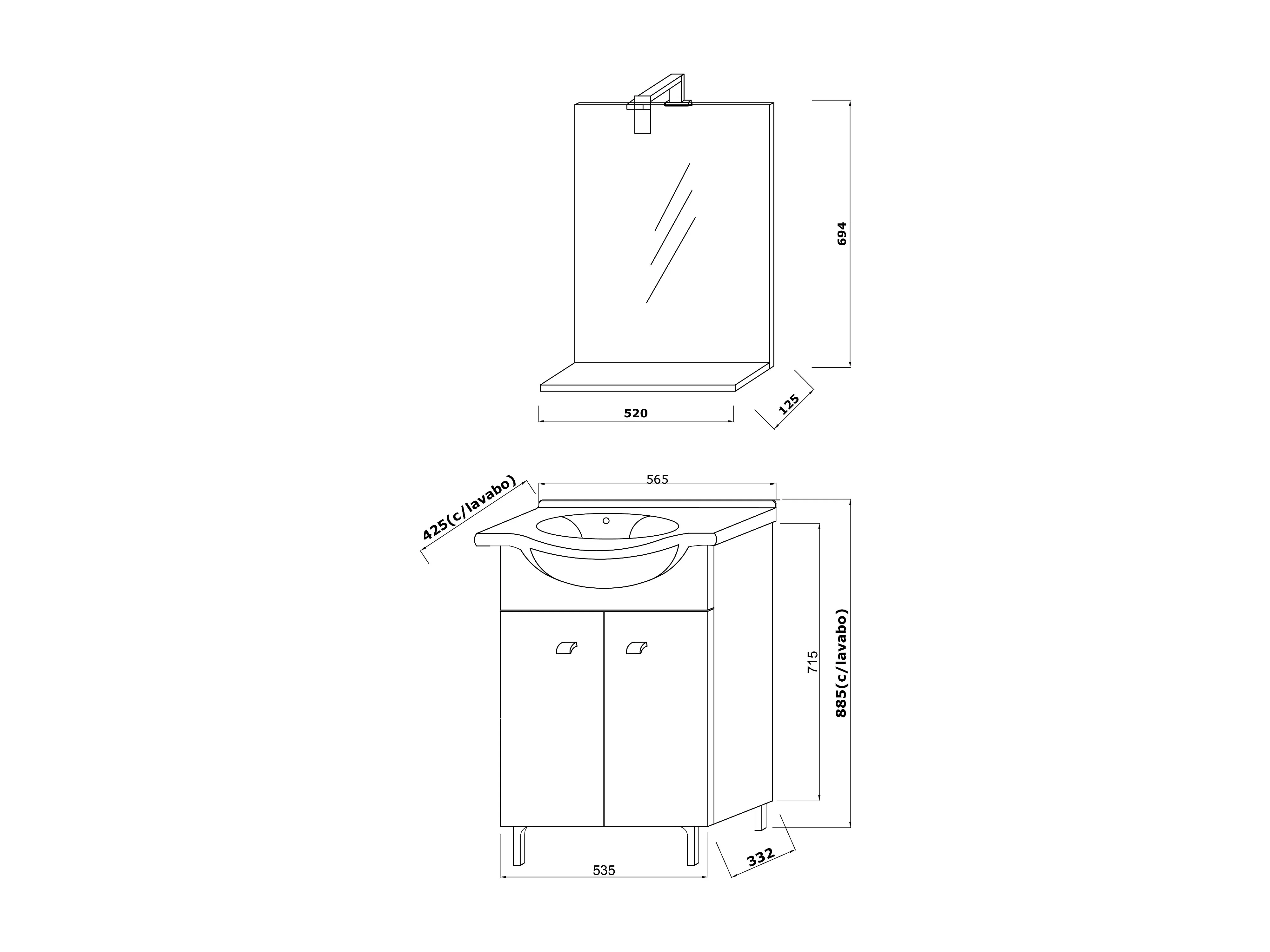 Meuble De Bain Sur Pieds Blanc 56 Cm Avec Lavabo Et Miroir | Simply