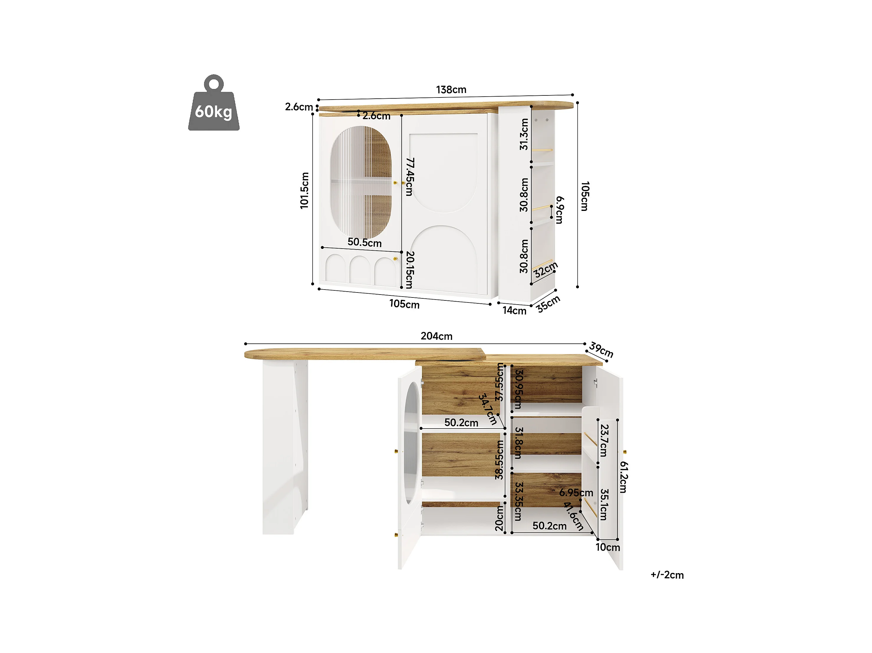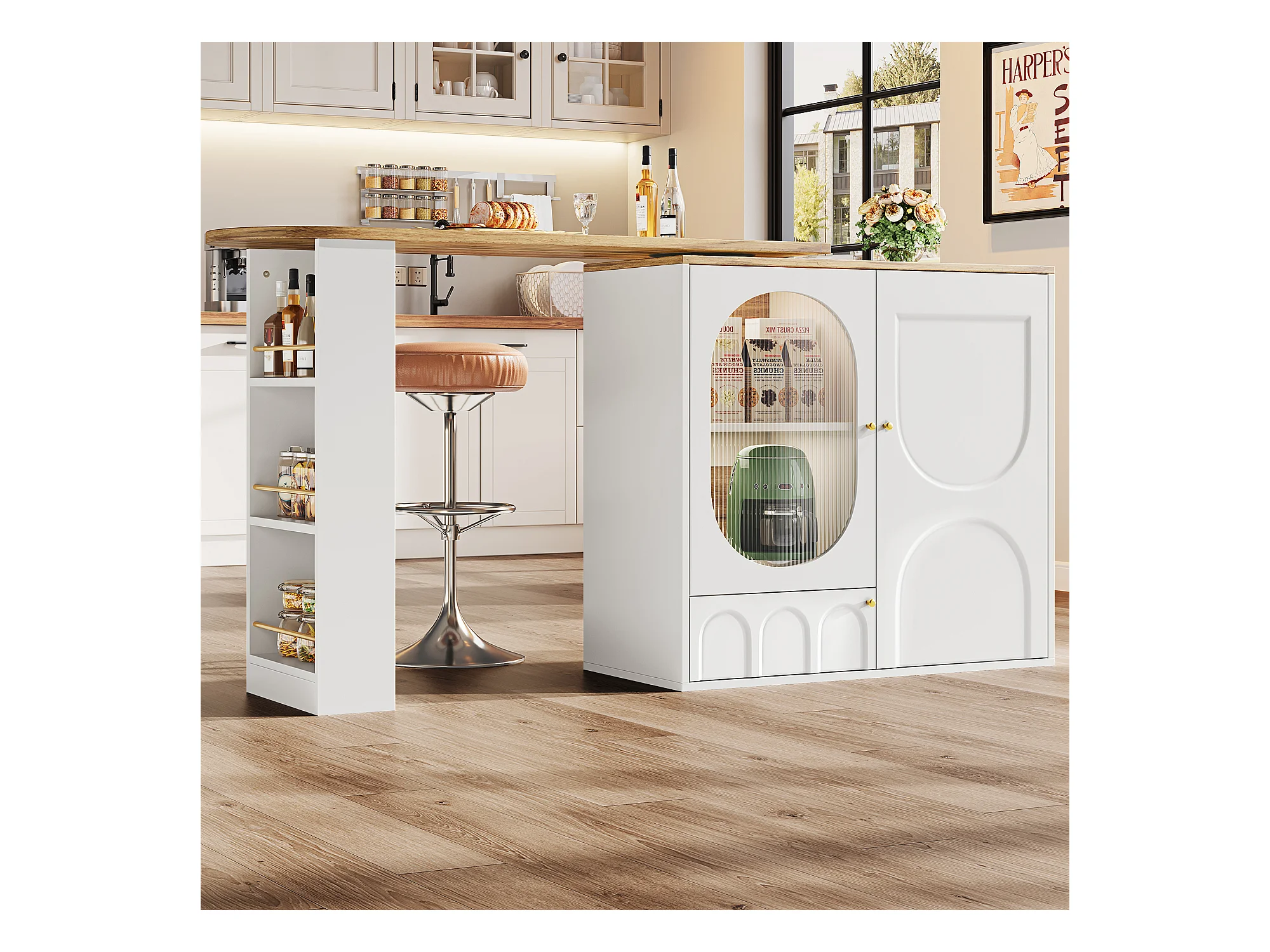 Meuble de bar blanc à 3 portes - Meuble de bar extensible avec étagères et rangements à 3 niveaux - séparateurs amovibles