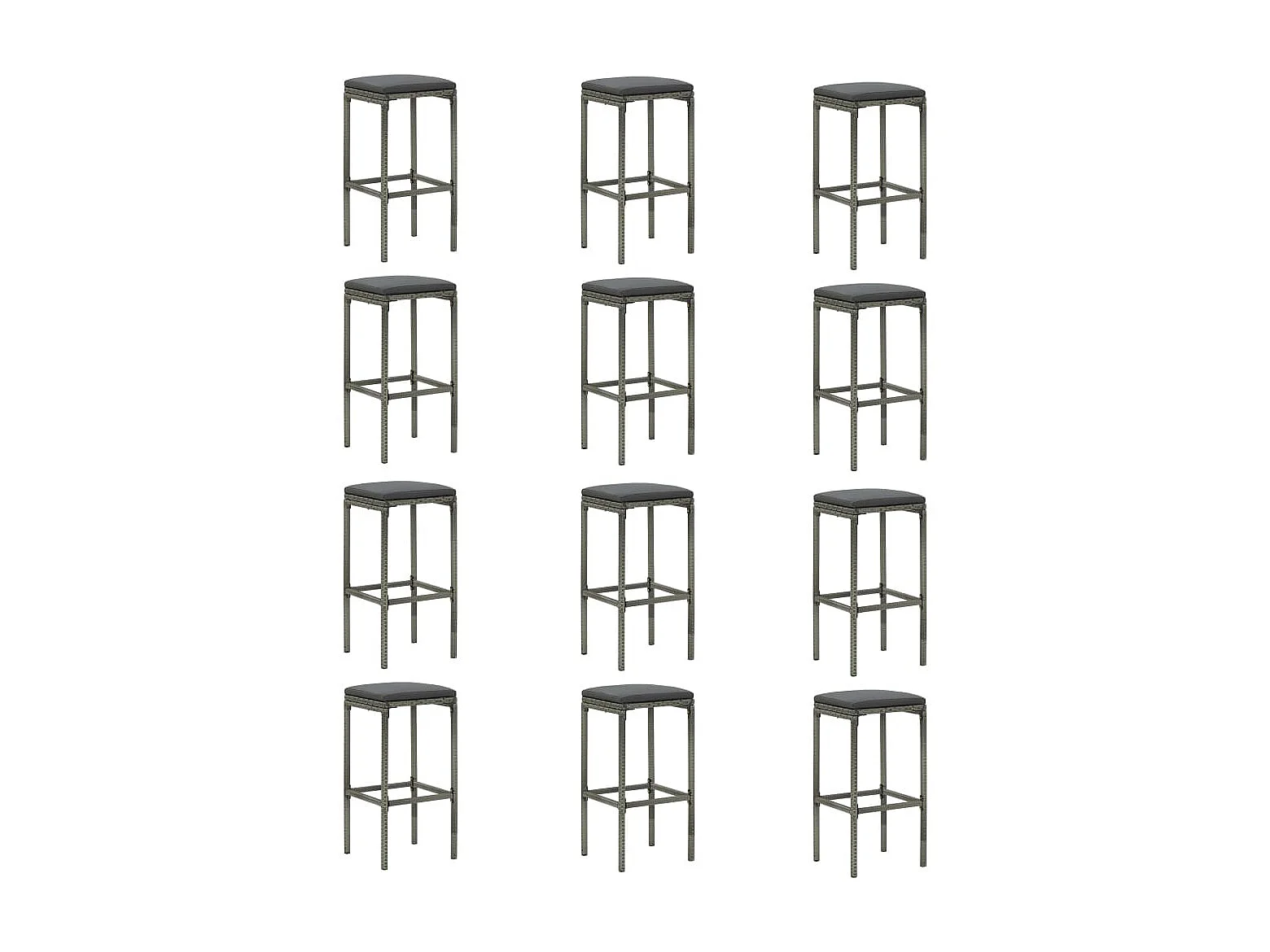 Meuble de bar de jardin 16 pcs et coussins Résine tressée Gris