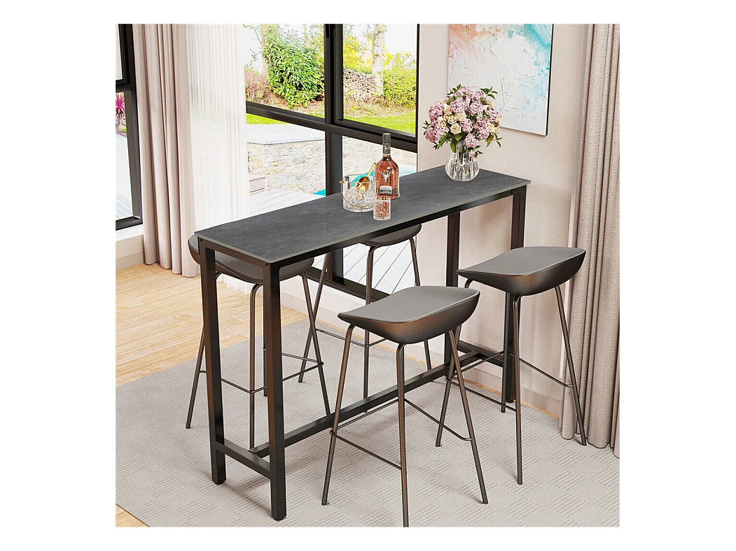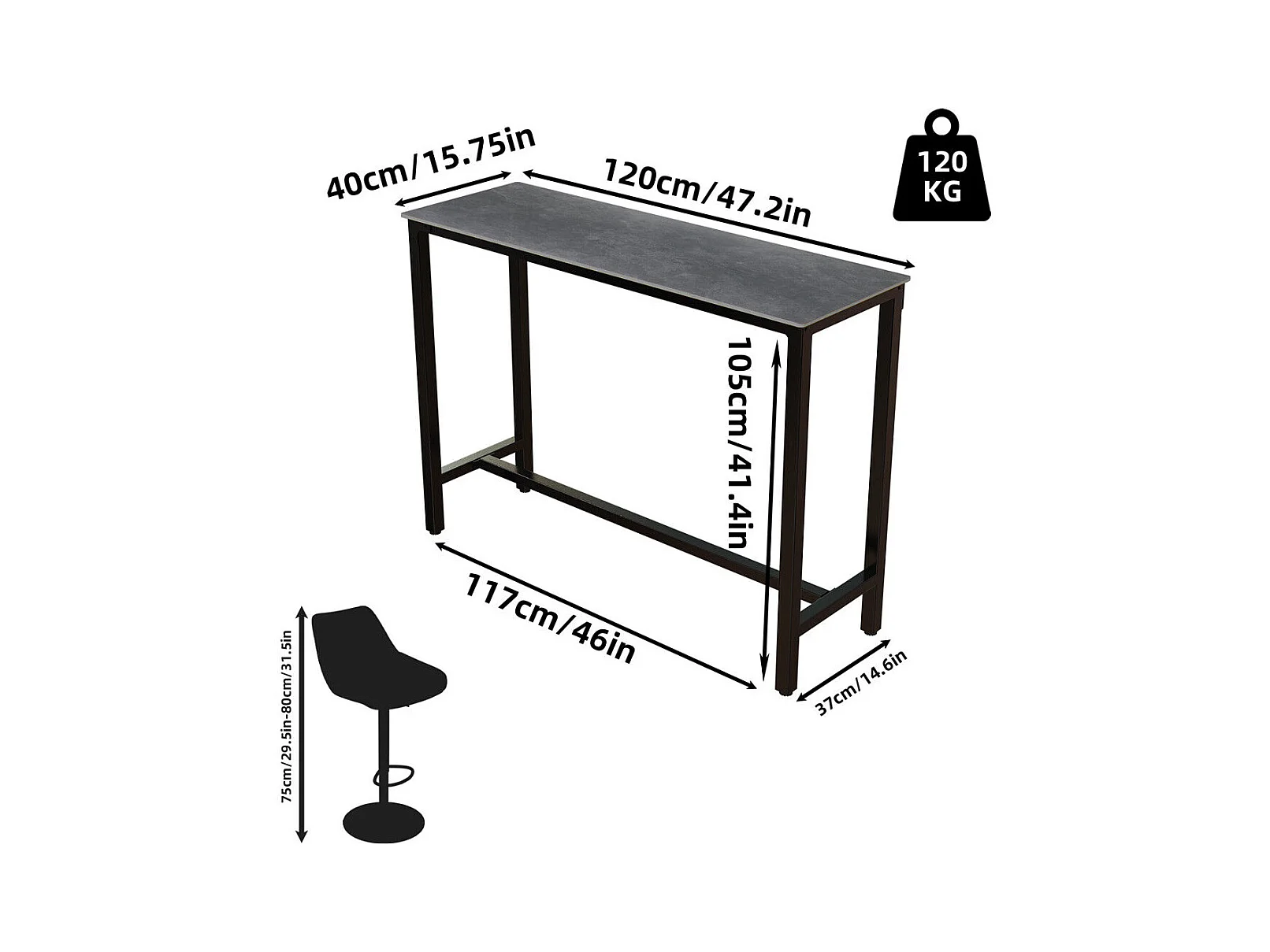 Meuble de bar en marbre - 120x40x105cm Table console - Table à manger noir - Table bistrot extérieur en pierre fritté rectangulaire