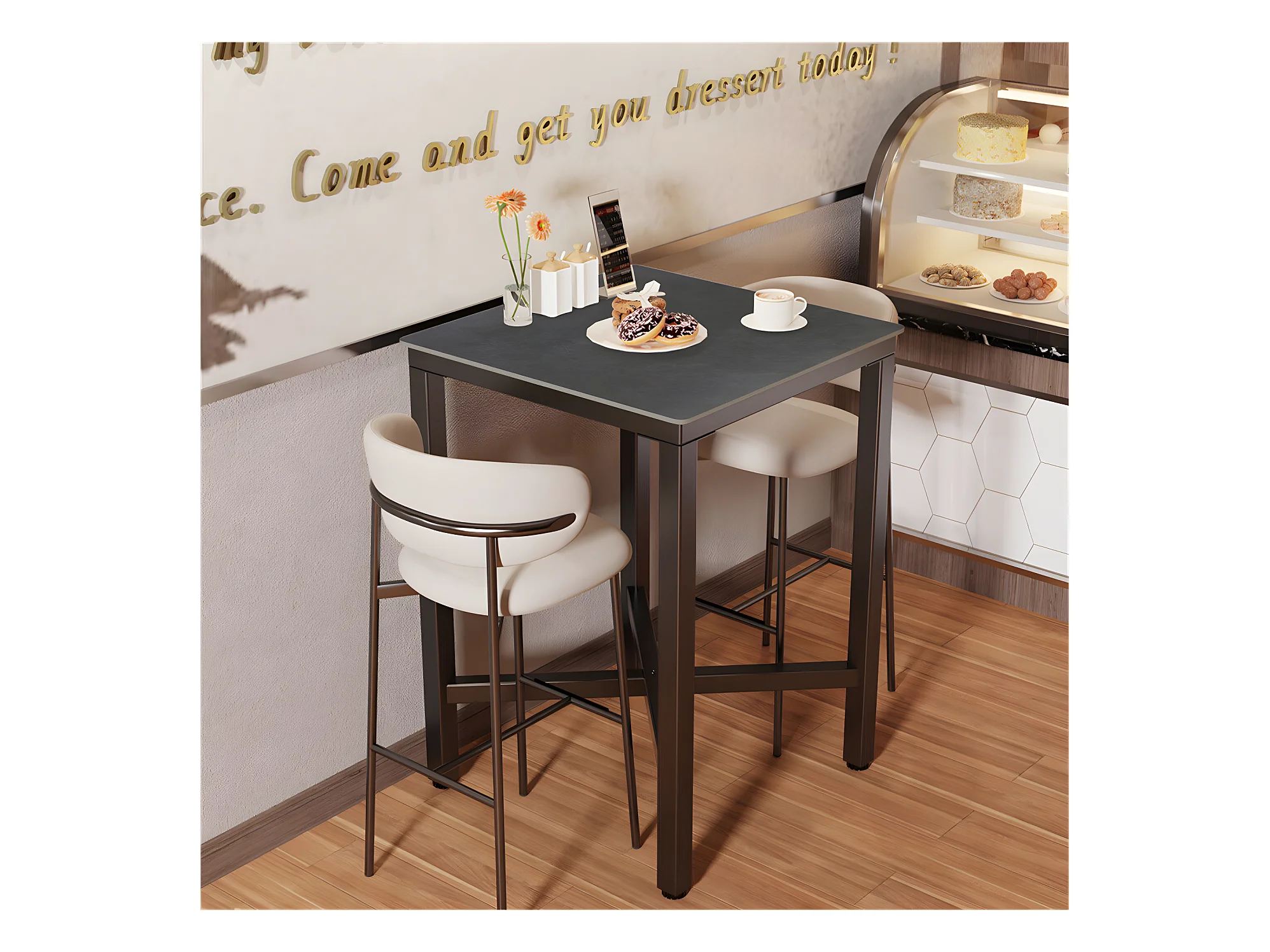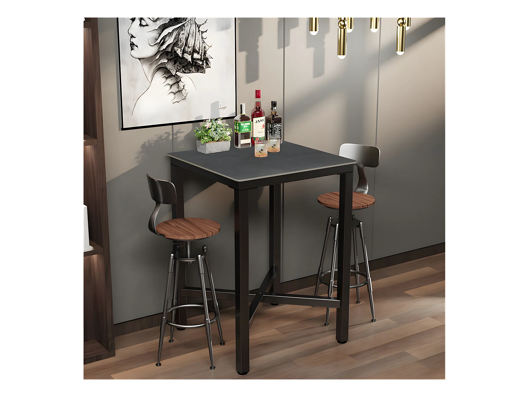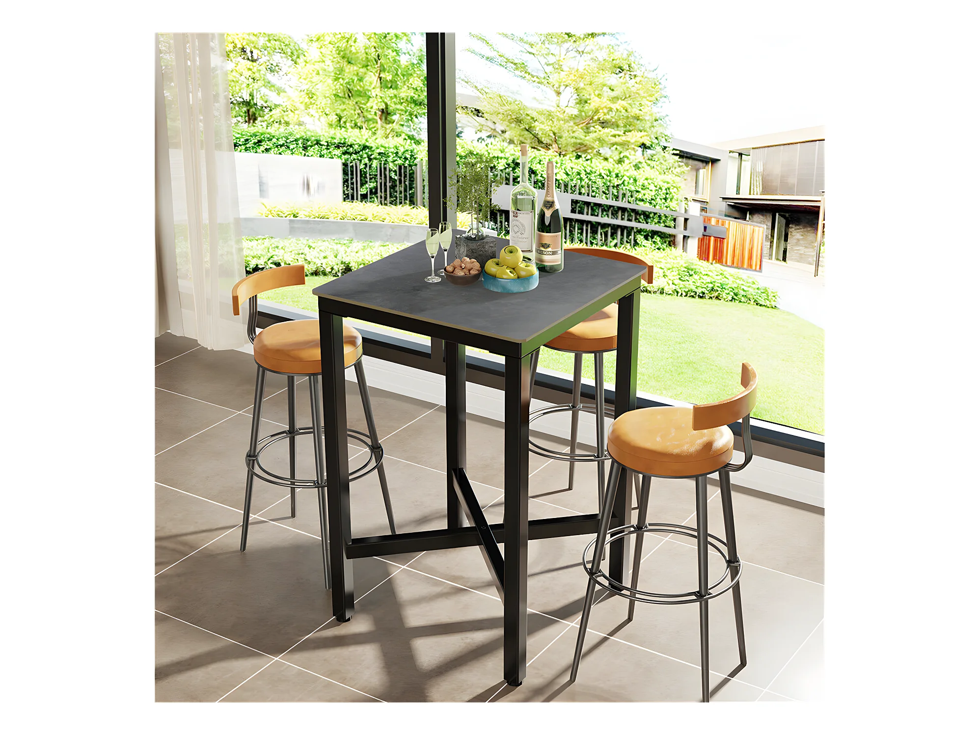 Meuble de bar en marbre - 70x70x105cm Table à manger noir - Table bistrot extérieur en pierre fritté carré