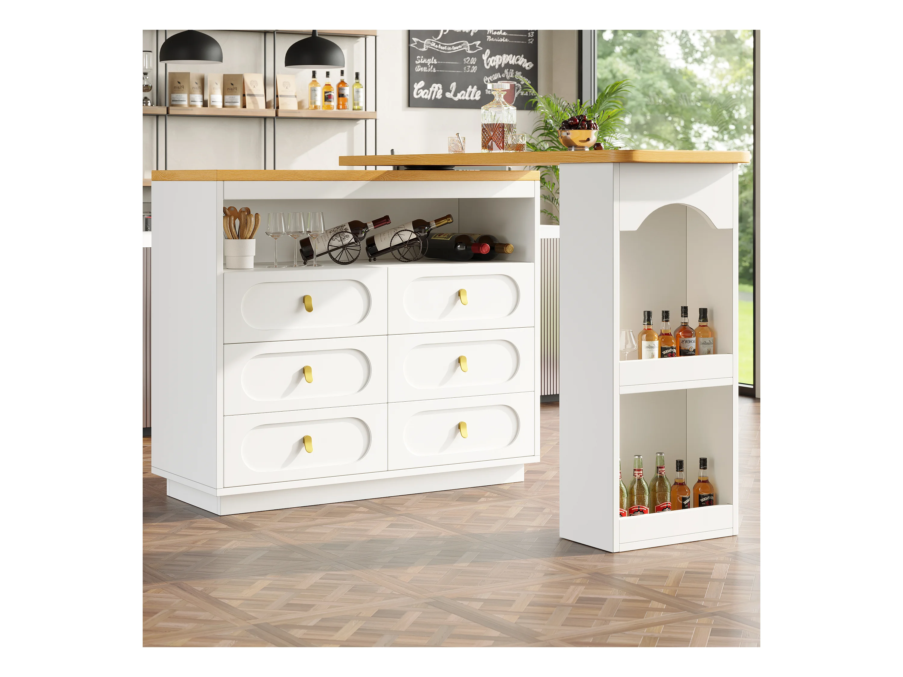 Meuble de bar extensible avec rotation à 360° - Longueur réglable - avec 6 tiroirs - MDF - blanc