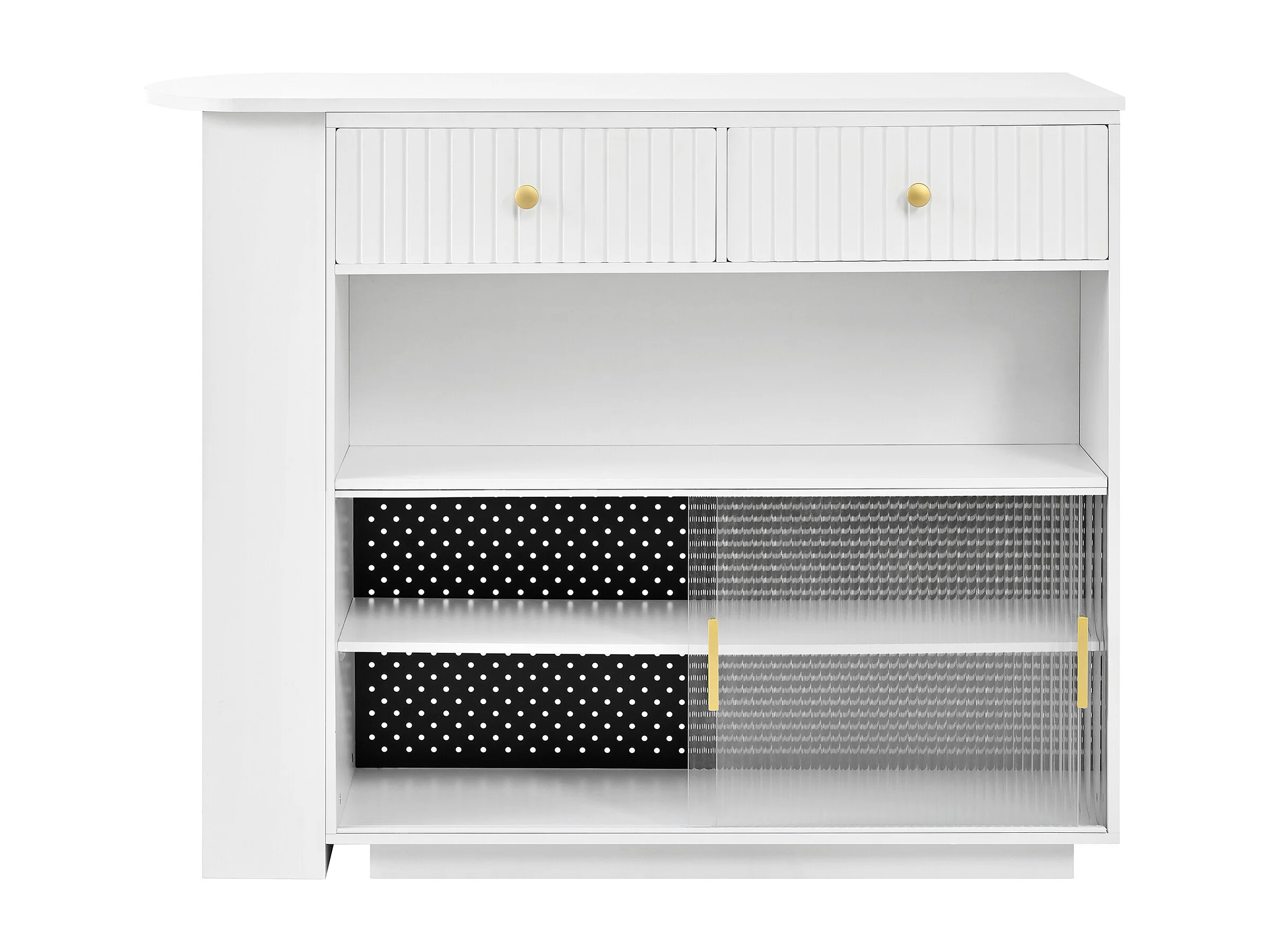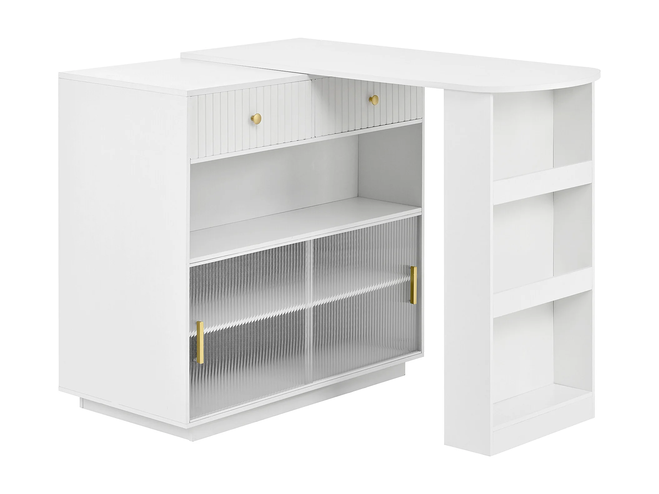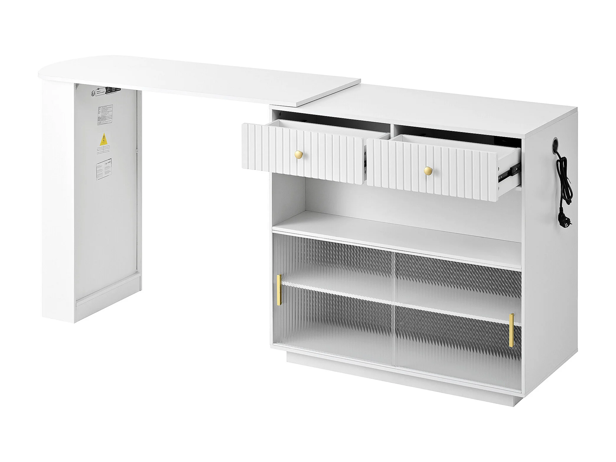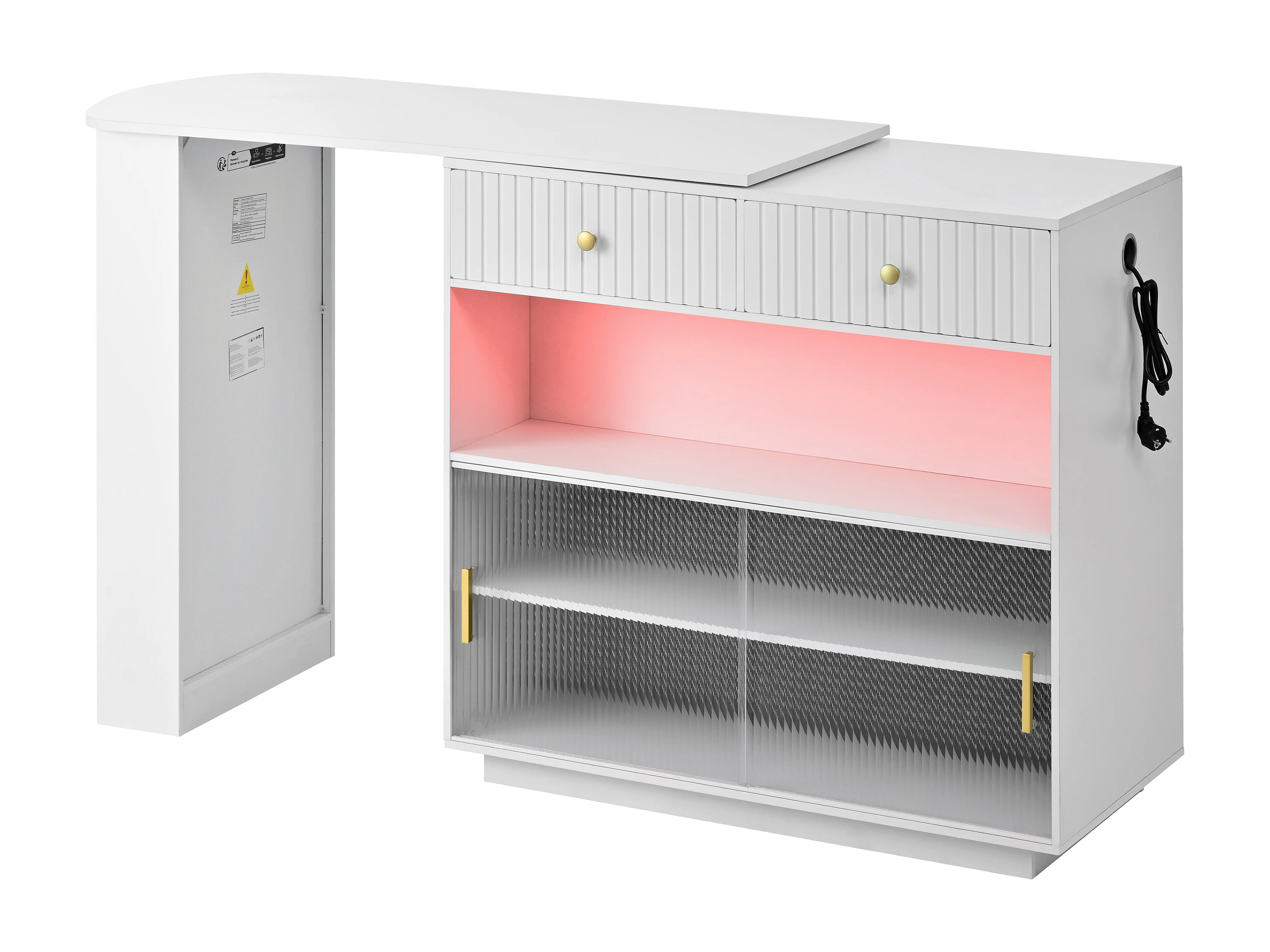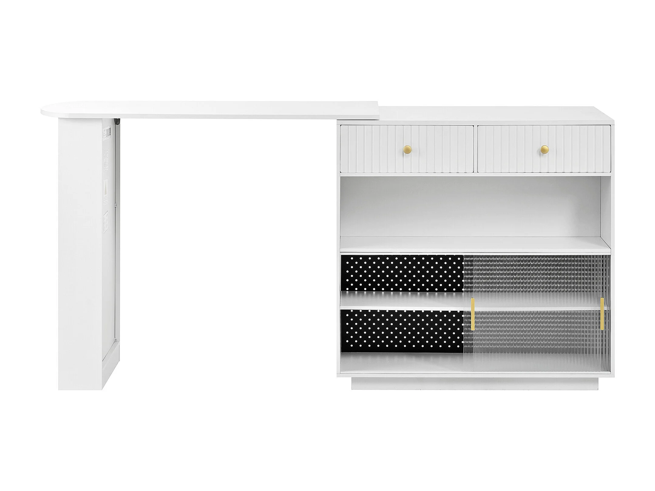 Meuble de bar pivotante avec prises, LED et panneau perforé - Blanc