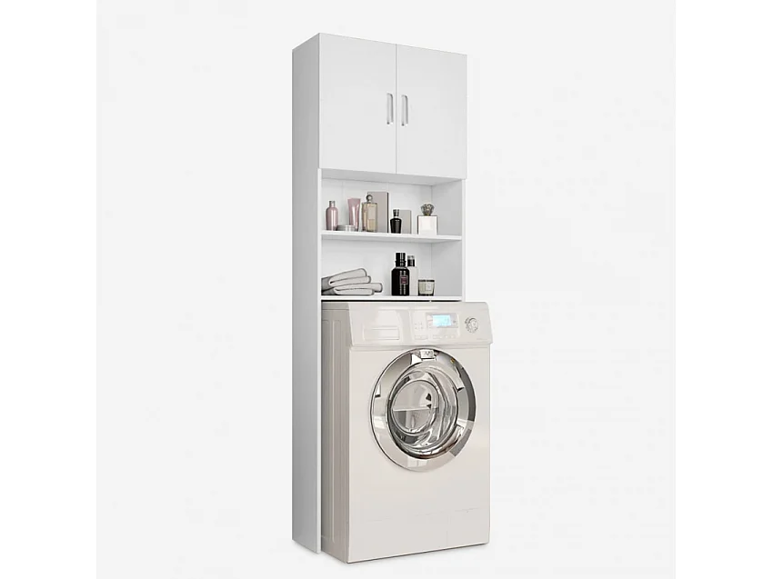 Meuble de buanderie peu encombrant 2 portes et 2 étagères Garda Ivory